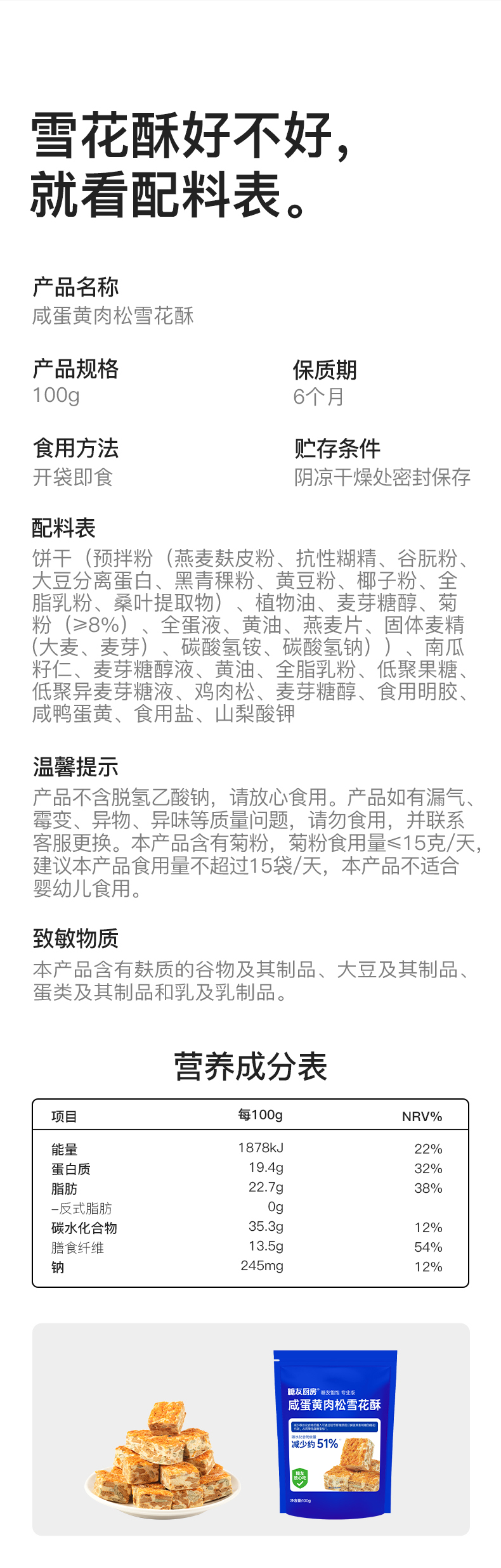 【9两健康】雪花酥/玫瑰味/咸蛋黄肉松味100g/袋