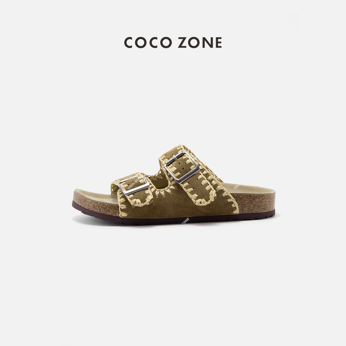 COCO ZONE"波士托”设计感双扣一字露趾百搭拖鞋休闲度假外穿女鞋CC2B0765