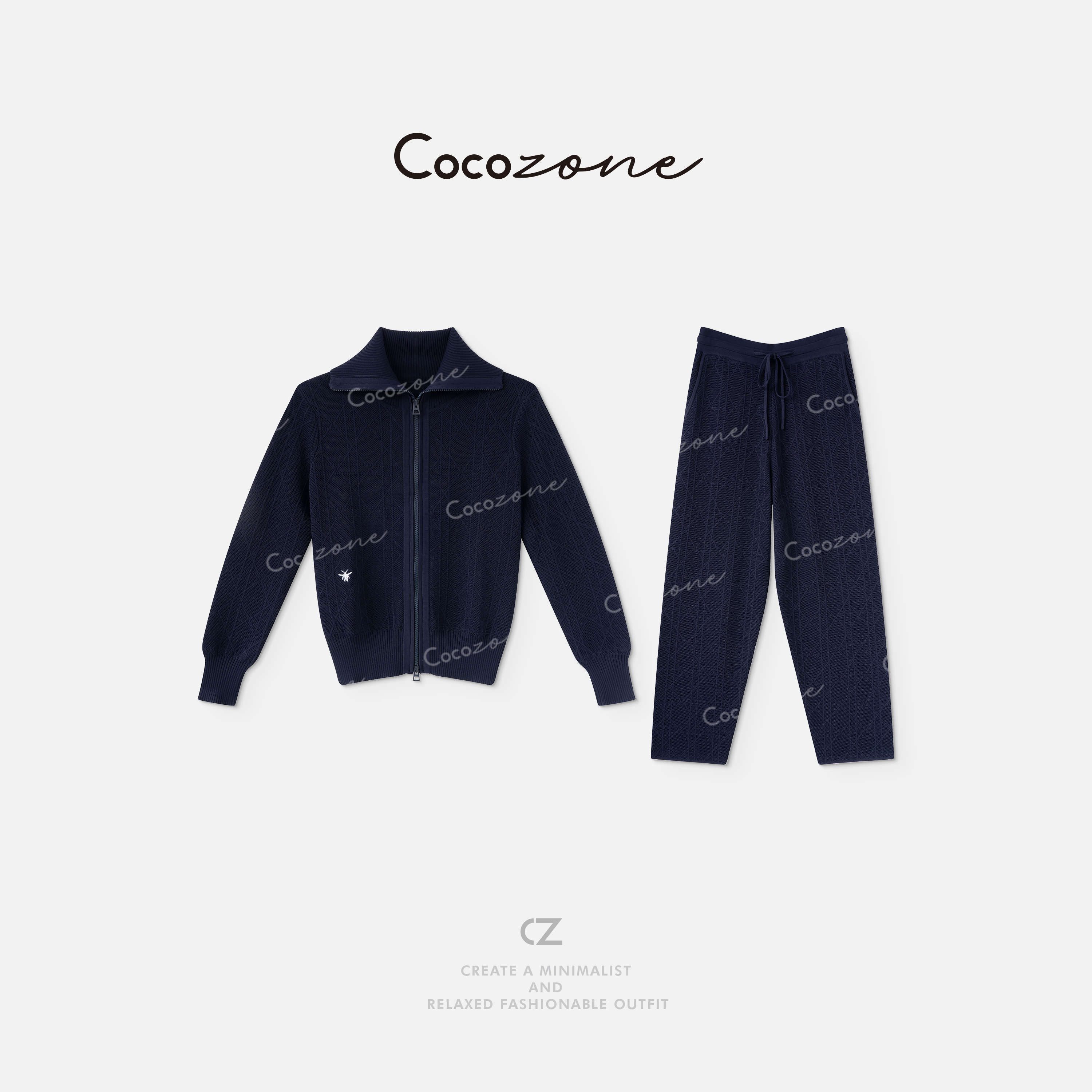 COCO ZONE 刘一一“D家套装”精致肌理立体菱形格纹套装 CD2A1584