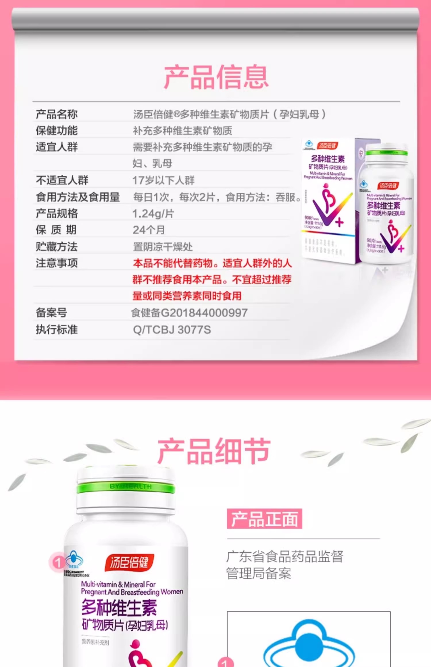 汤臣倍健®多种维生素矿物质片(孕妇乳母)111.6g(1.24g/片*90片)