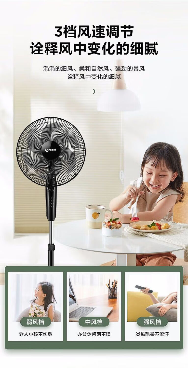 艾美特AIRMATE机械落地扇FS35-X26 黑色