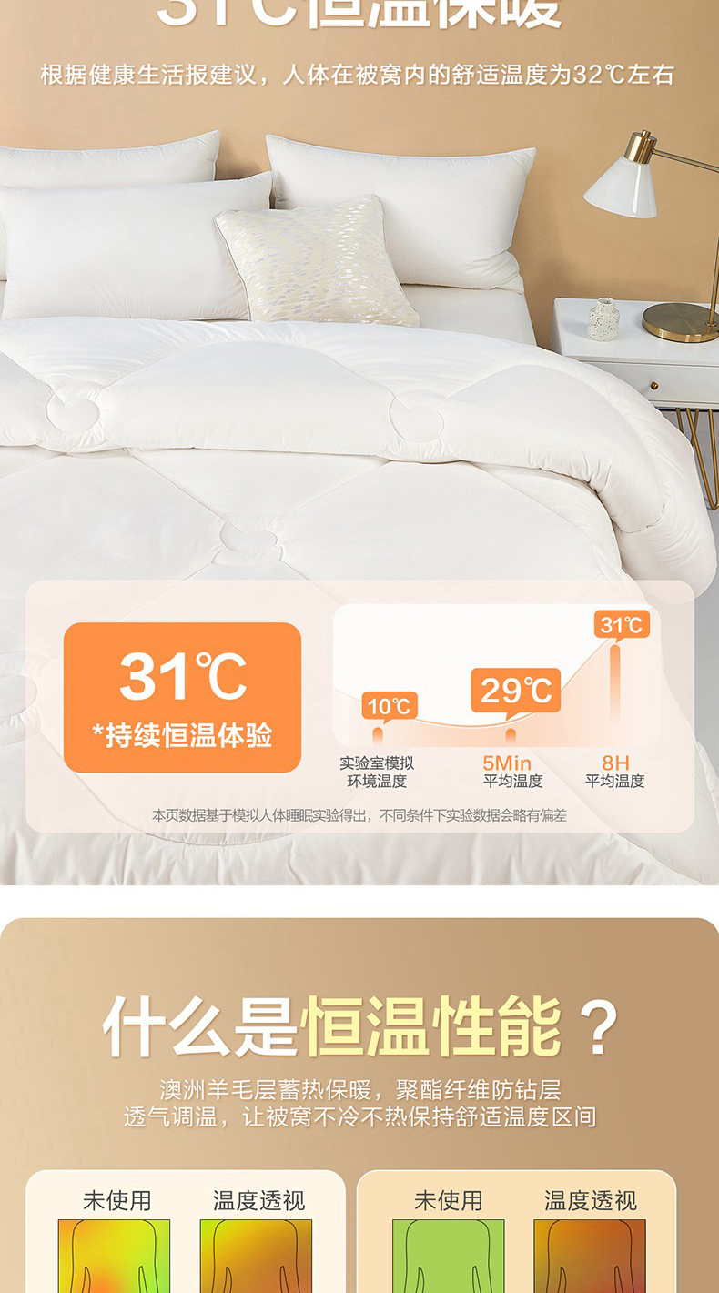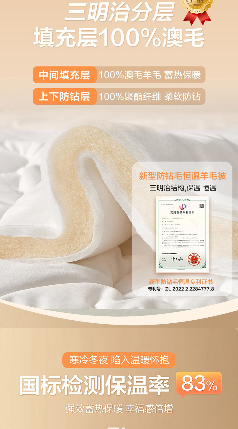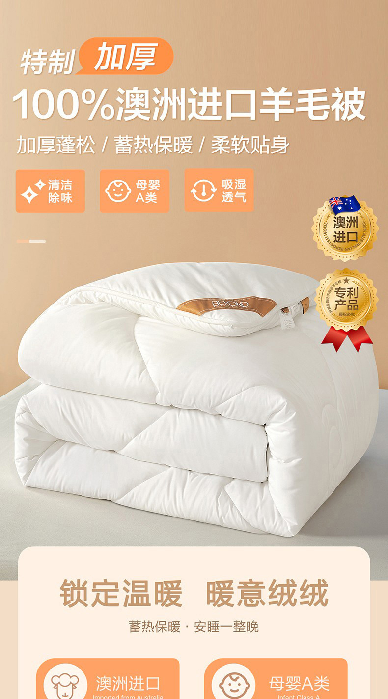 博洋家纺(BEYOND) 抑菌A类澳洲羊毛冬被(澳瑞白)200*230cm