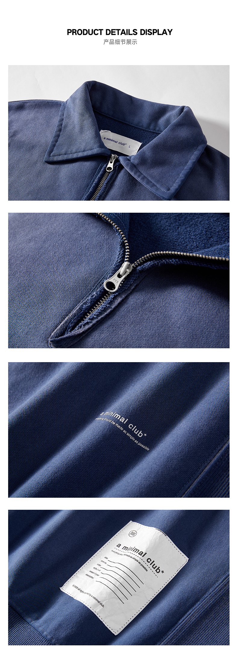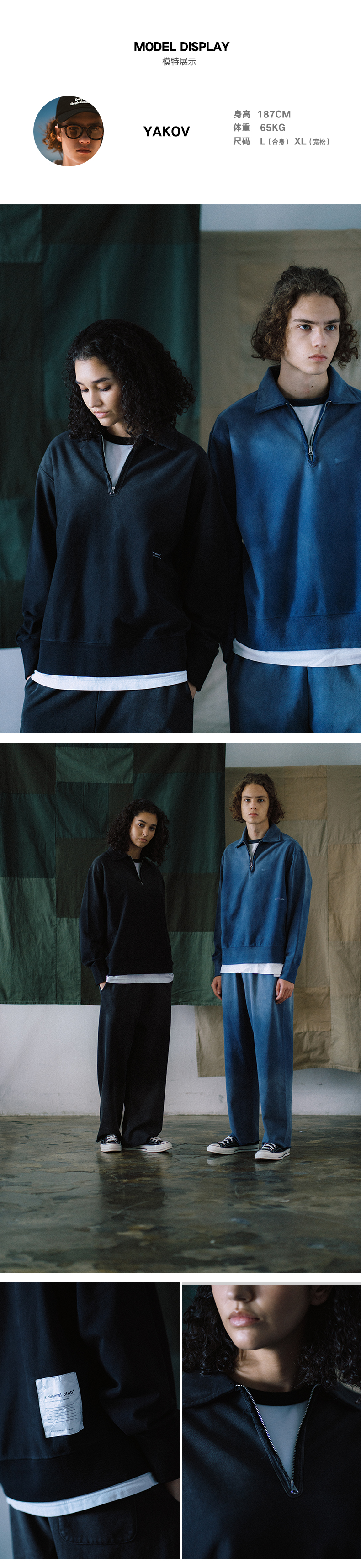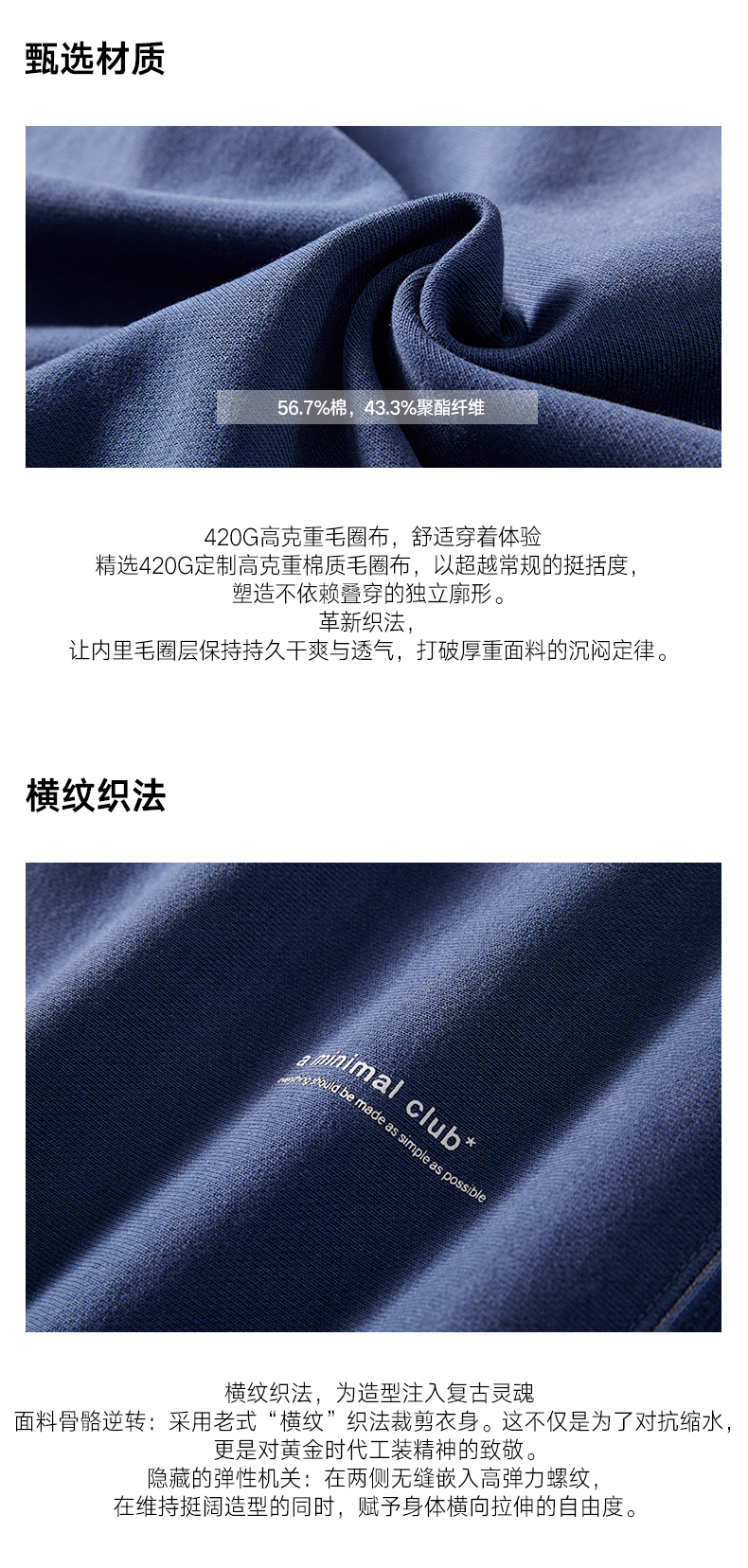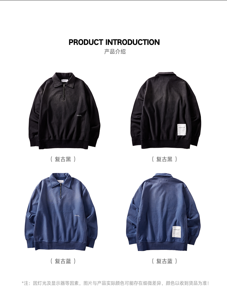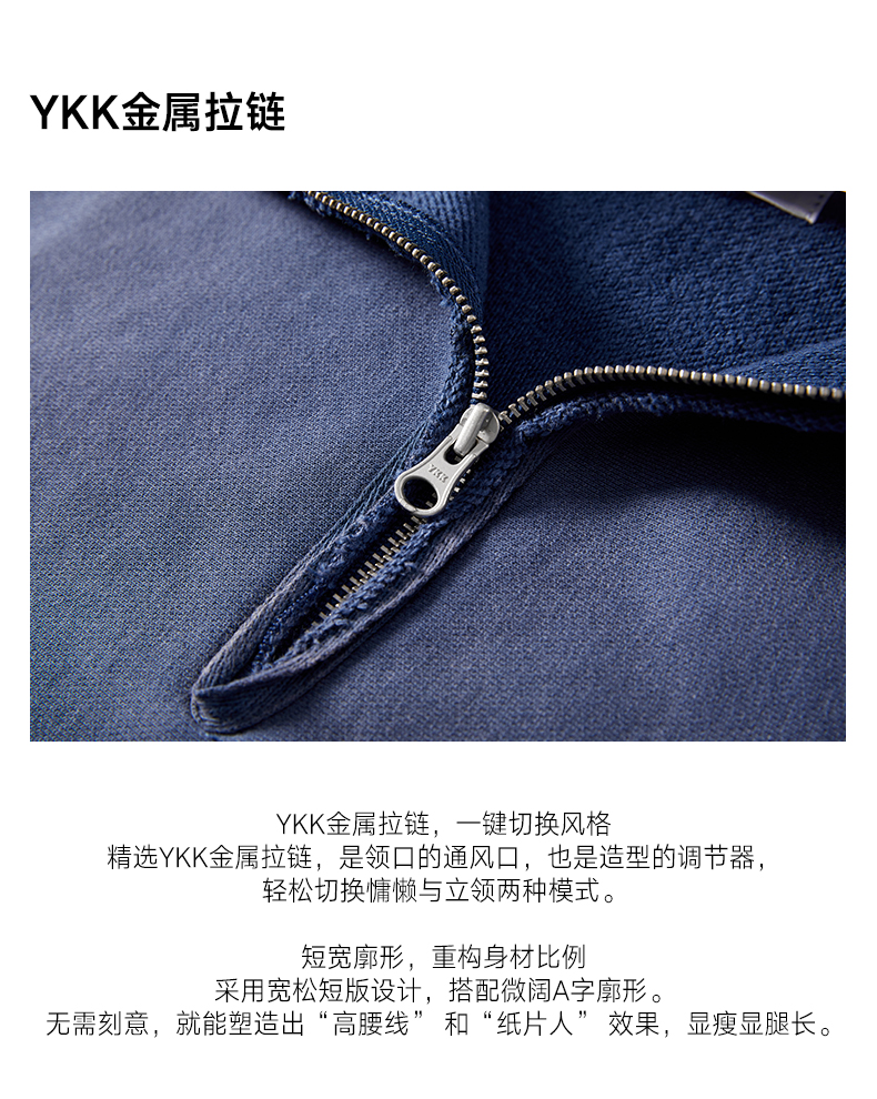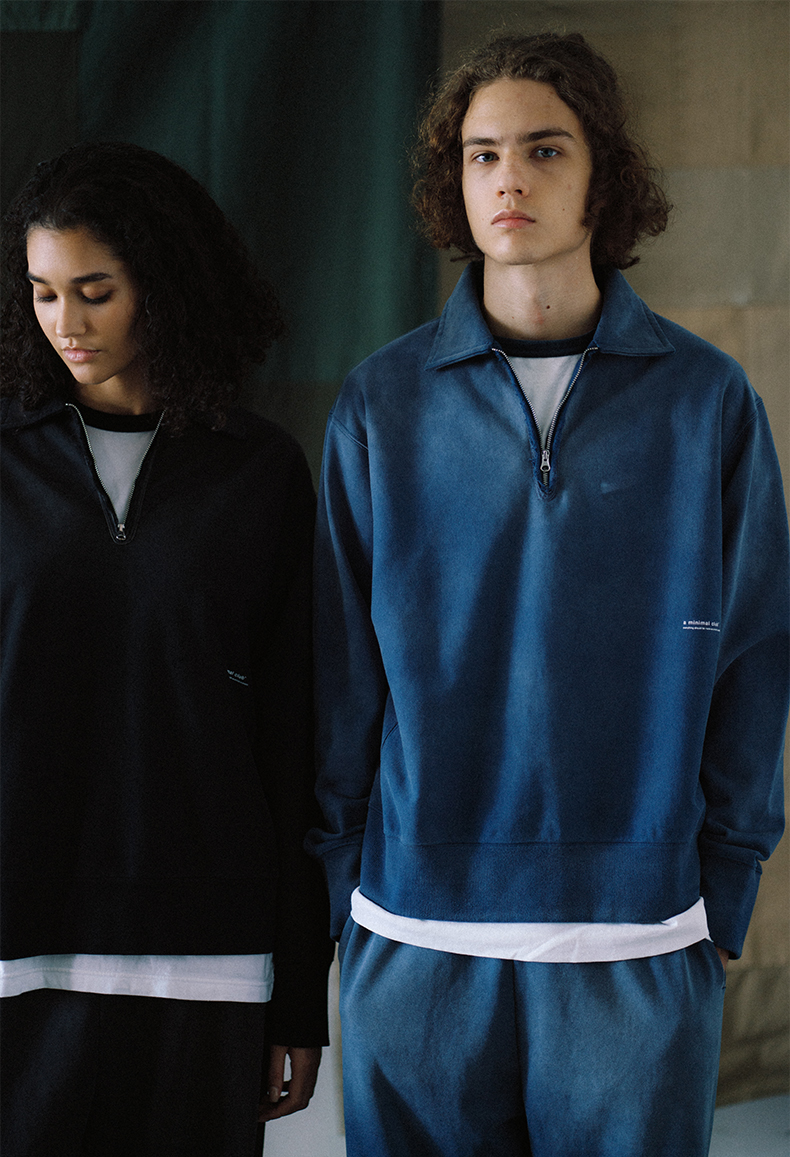 a minimal club重水洗420克毛圈卫衣半开襟廓形复古水洗AM59ST18
