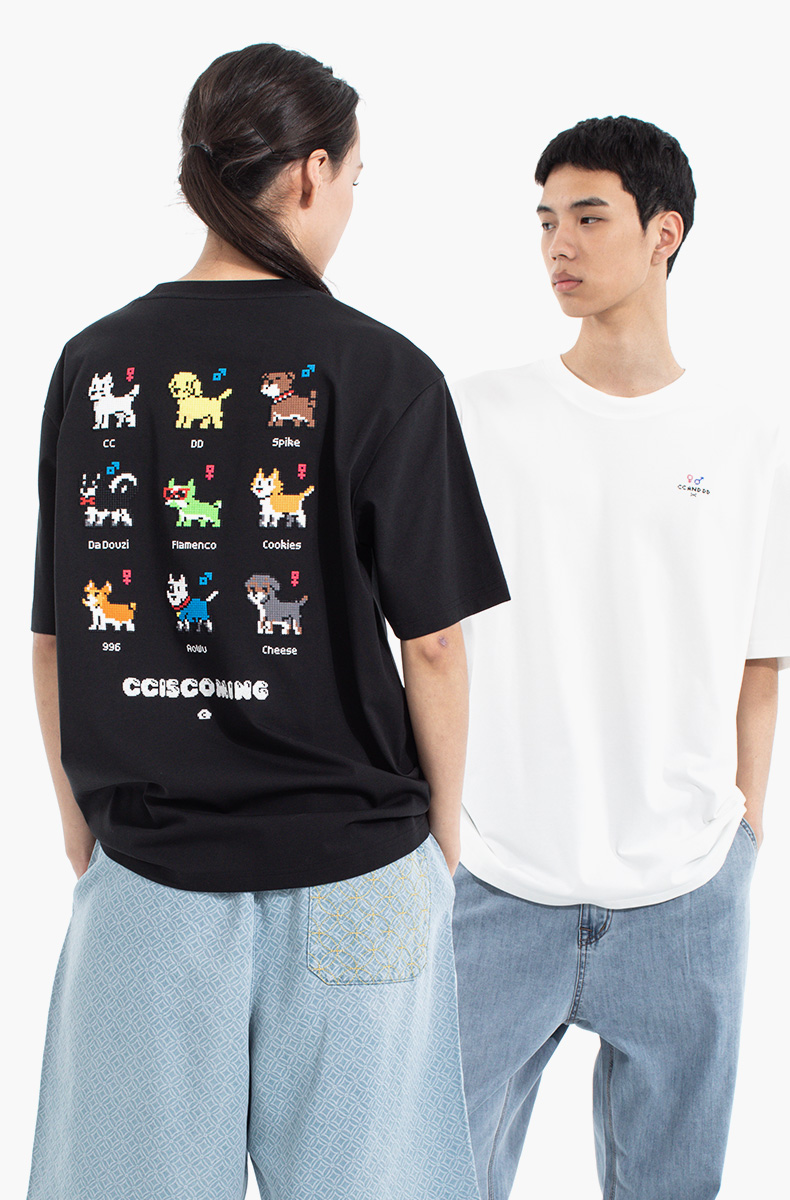 NPC潮牌CC系列背后立体【十字绣】九宫格短袖T恤男乐高风CC53TE09