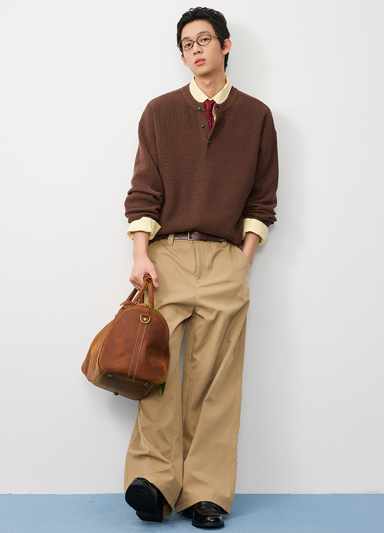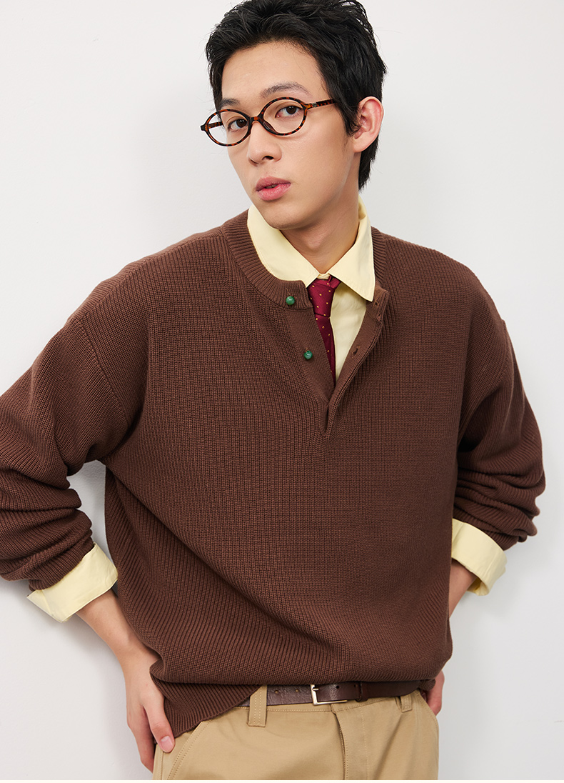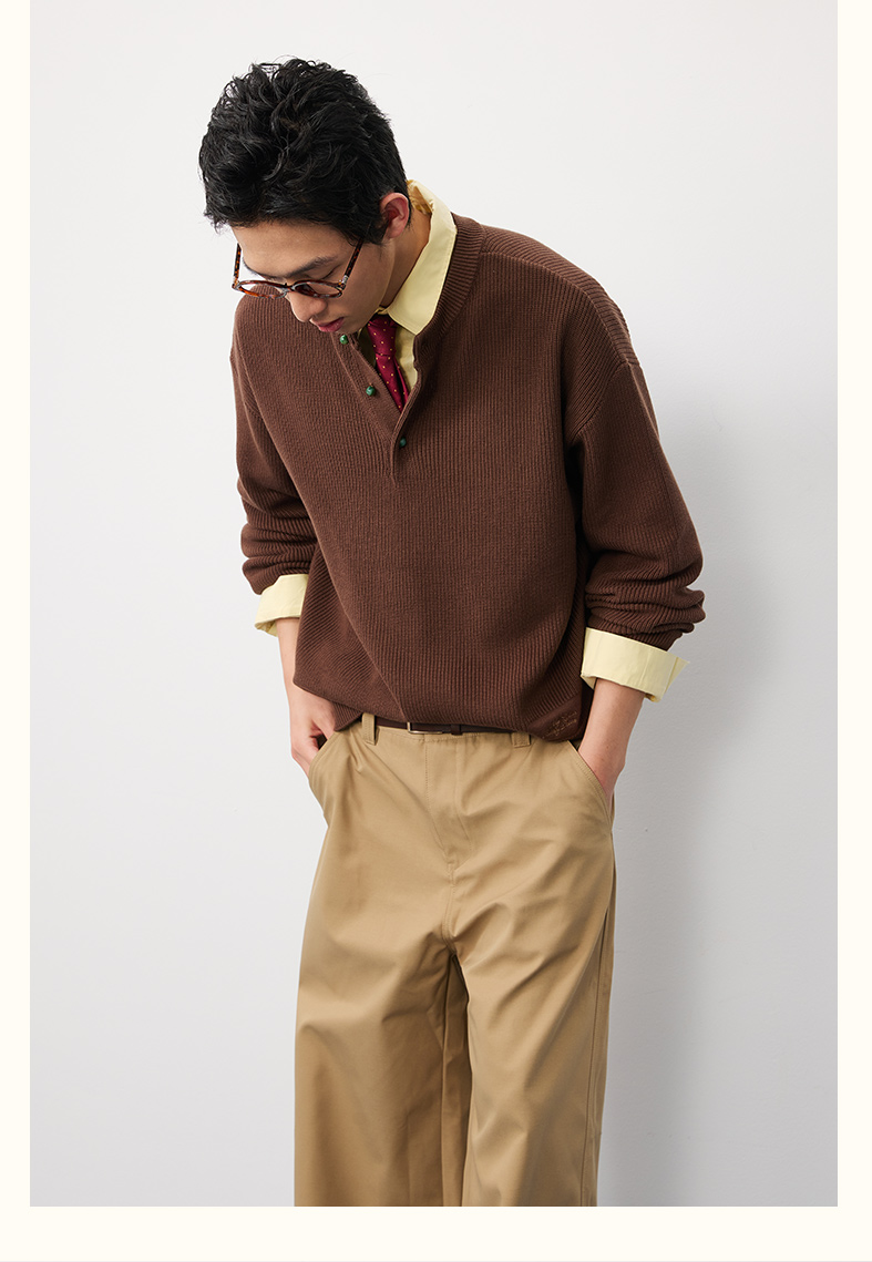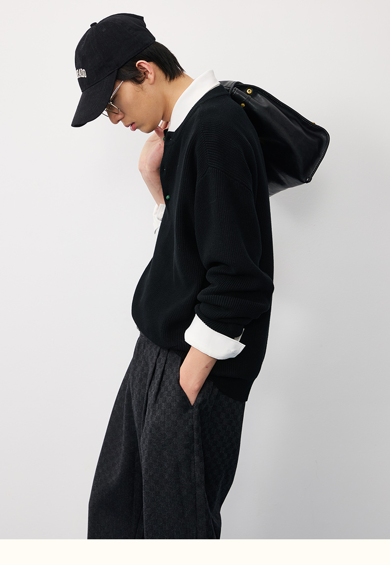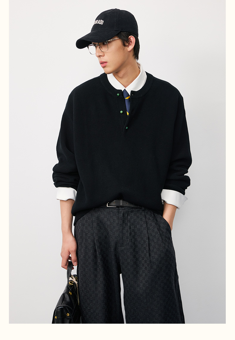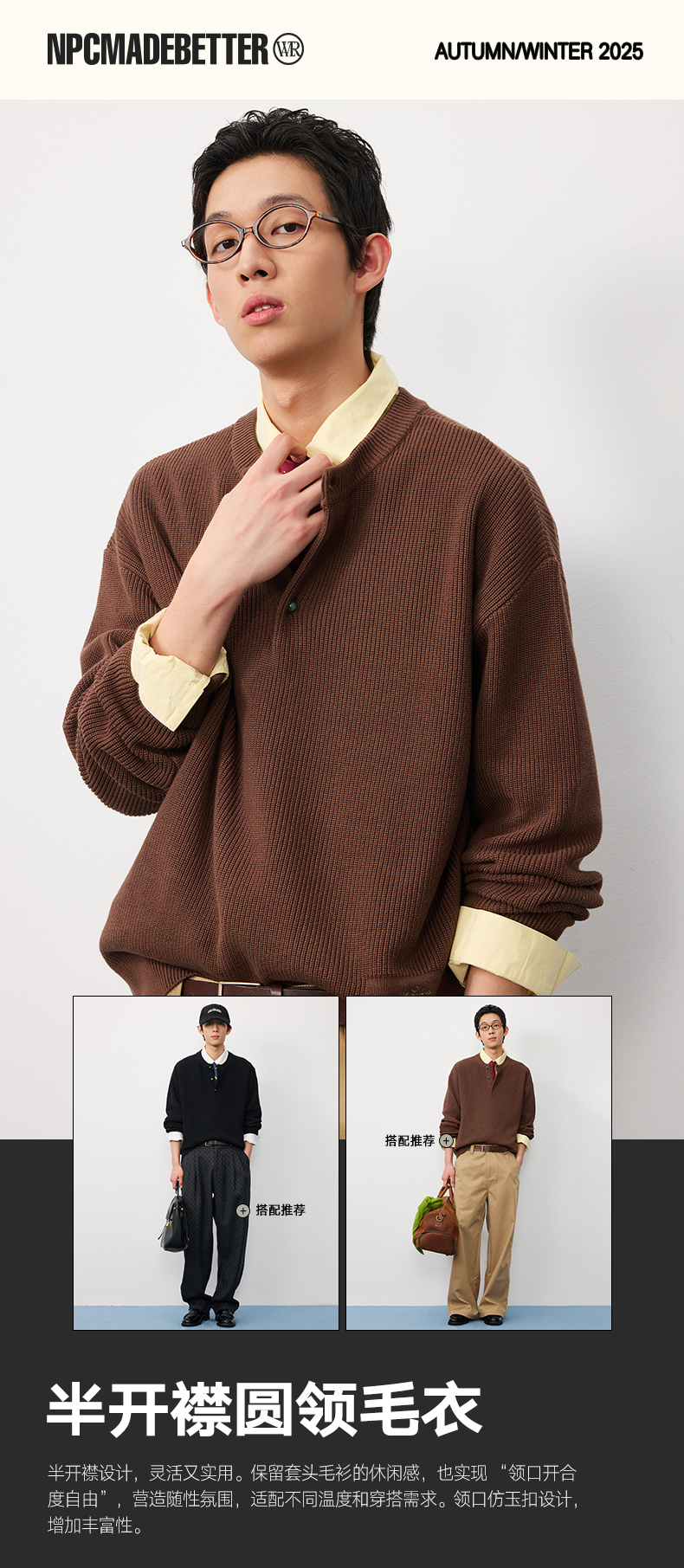 NPC潮牌流光风半开襟套头秋季针织衫毛衣复古百搭毛衣NP57SW57