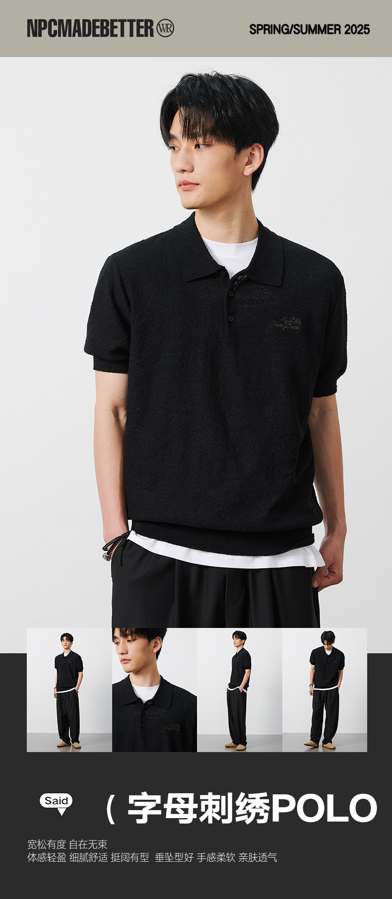 NPC潮牌字母刺绣logo针织翻领T恤男轻盈透气polo领亲肤NP54TS39