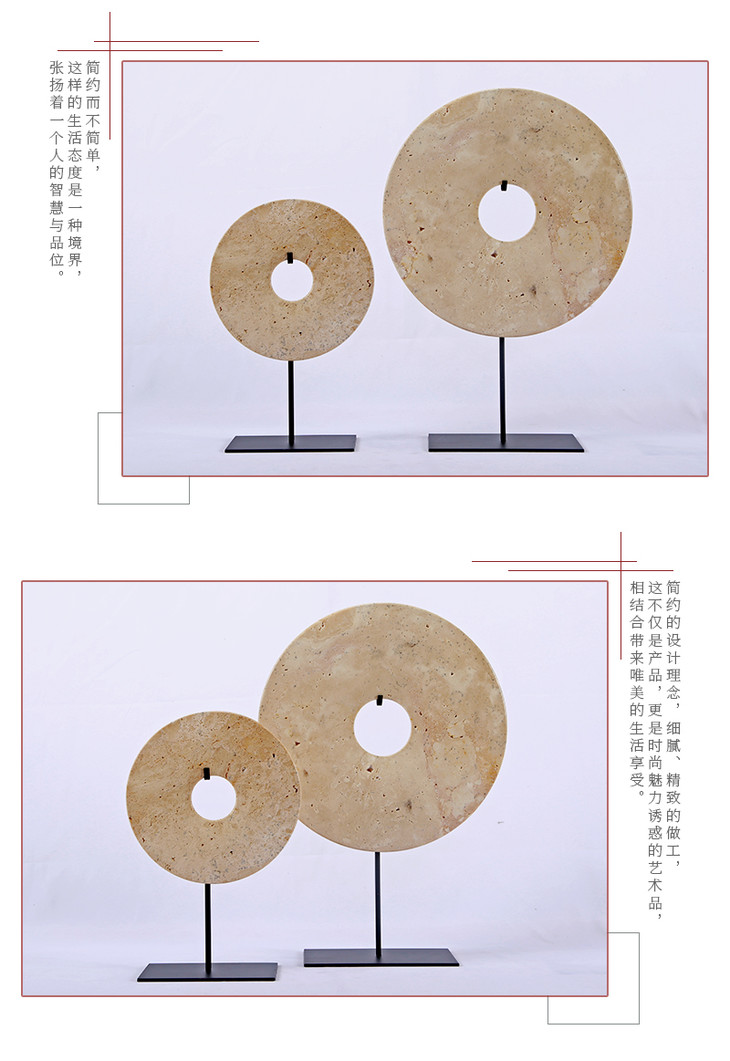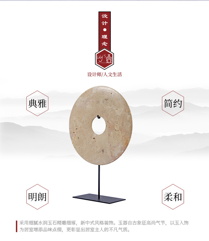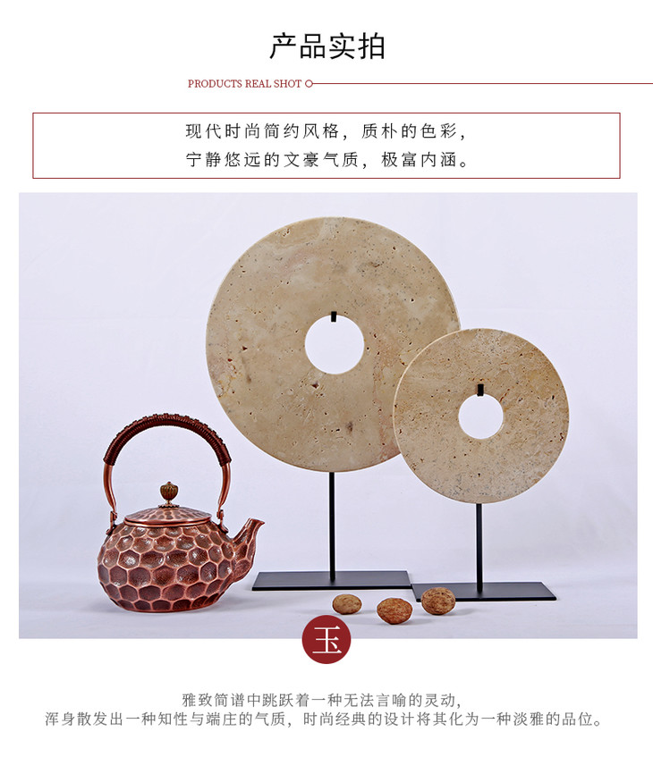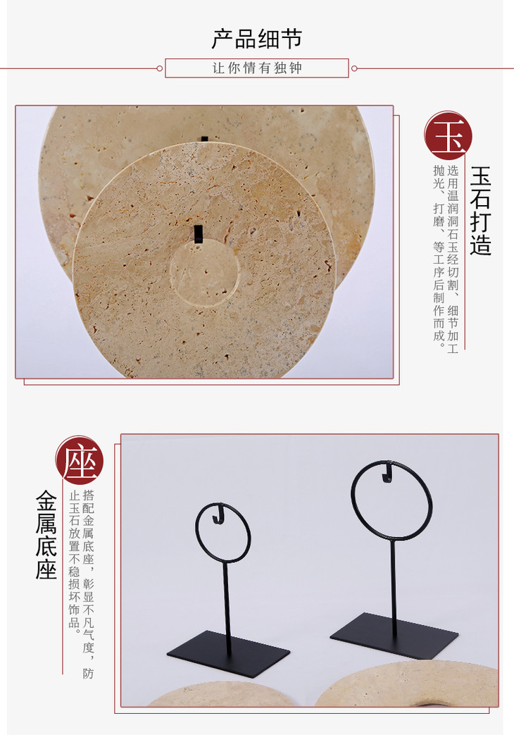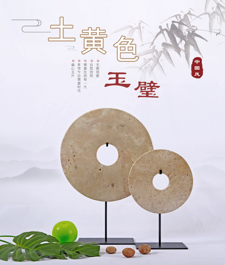 中式禅意黄色玉璧摆件工艺品Dish with stand