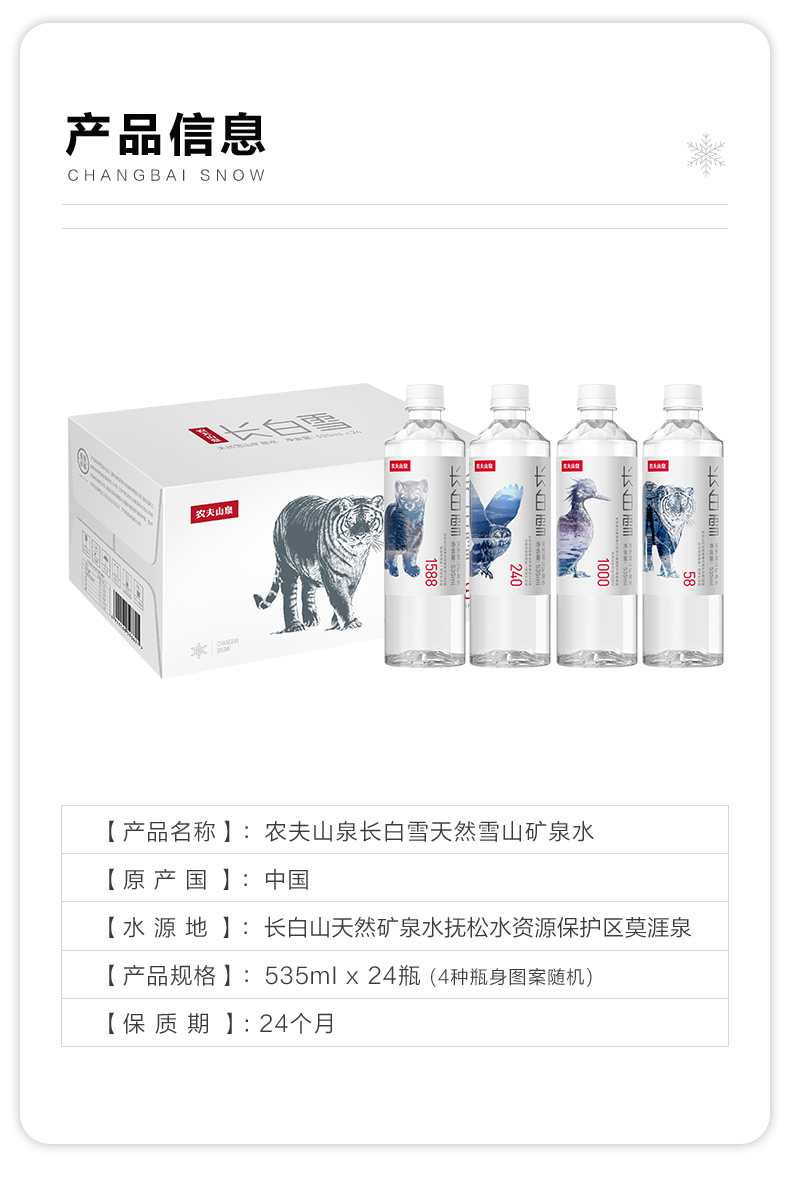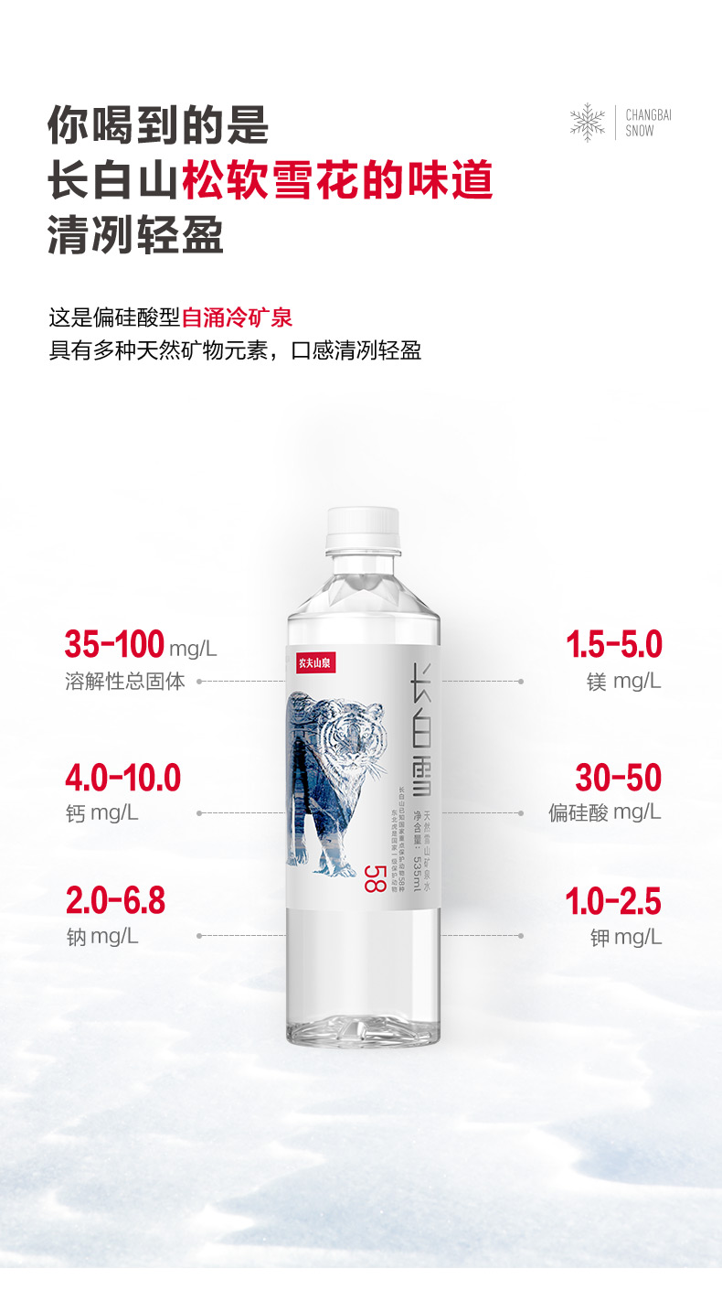农夫山泉长白雪天然雪山矿泉水天然水535ml/瓶