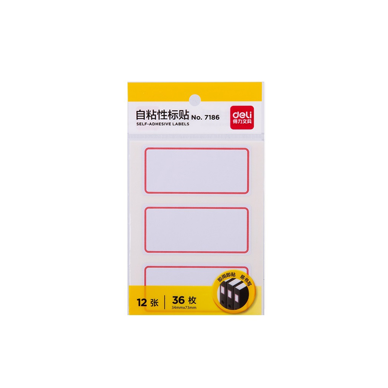 得力标签贴 36枚12张/袋 自粘性标贴签名贴7186便利标34*73mm