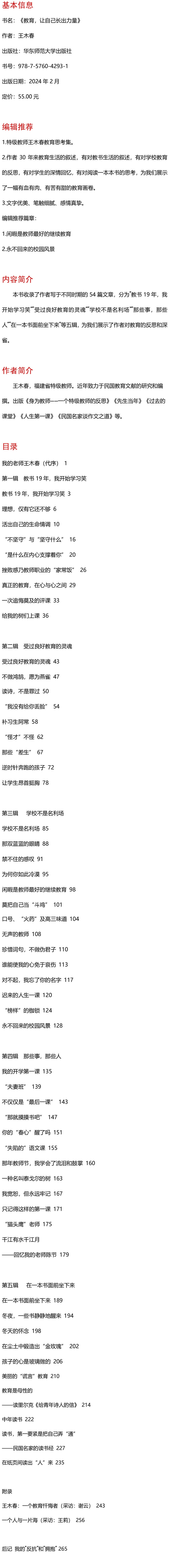 教育 让自己长出力量 大夏书系 特级教师王木春 教育新思考