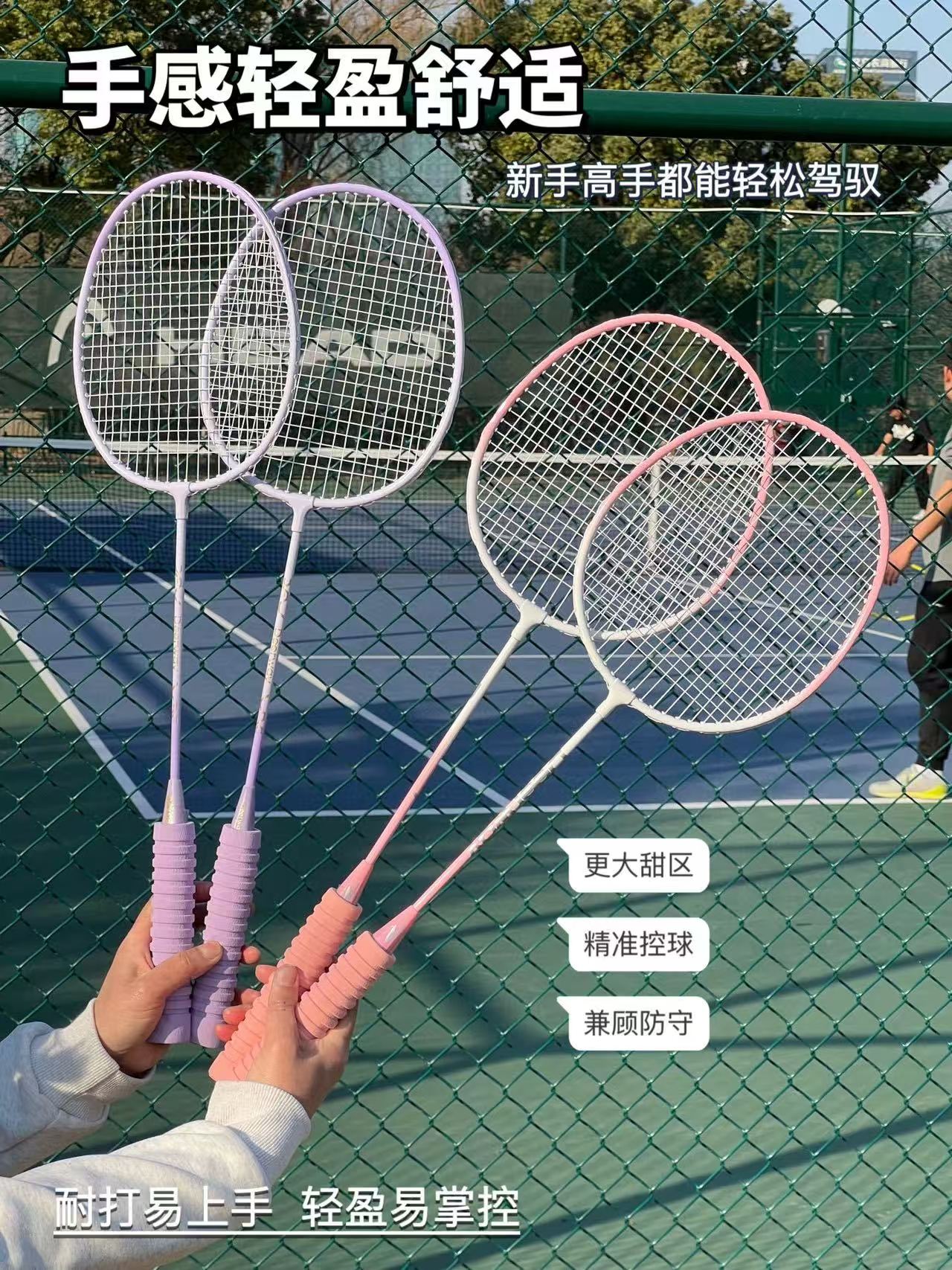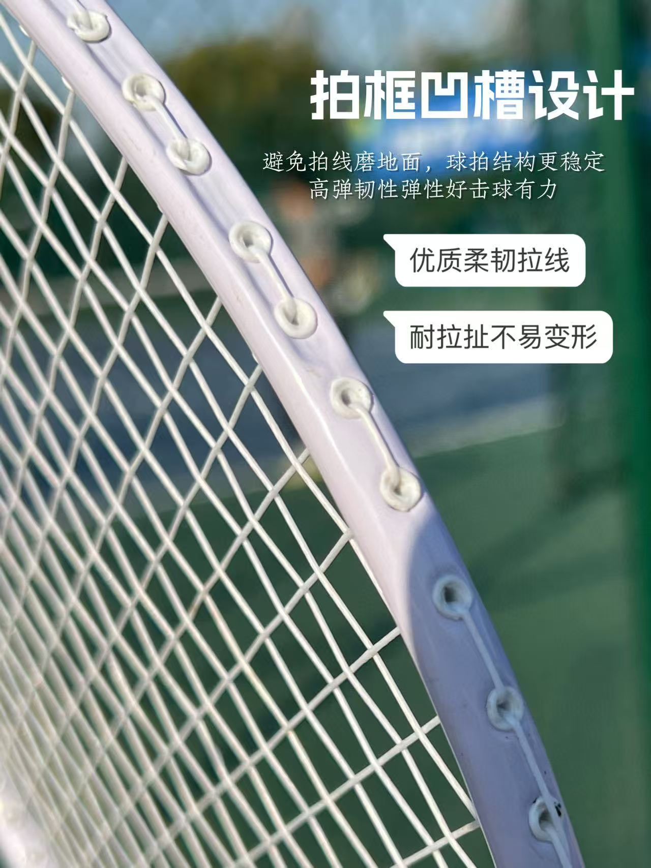 网面添加线床,扩大球拍击球的区域,不易断拍,不易变形;