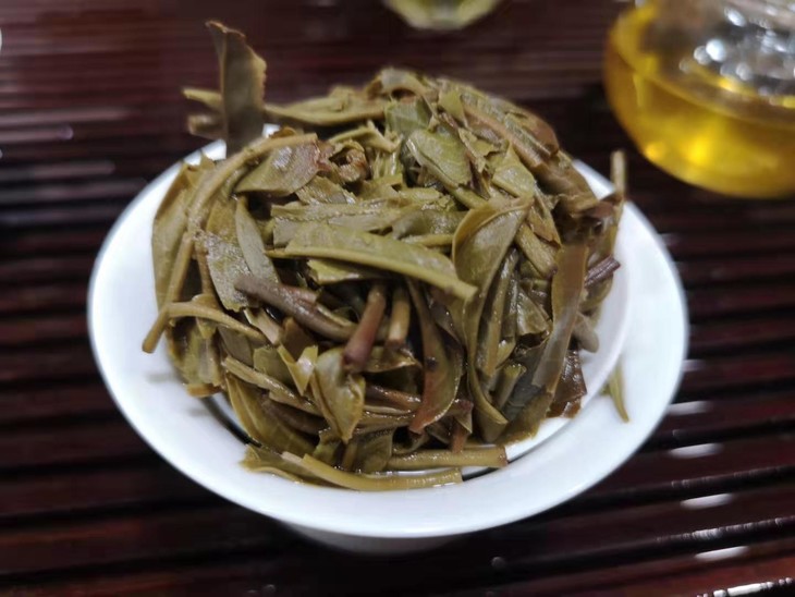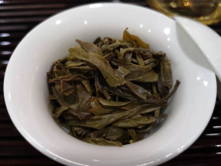 翻扣过来~叶底色泽一致性高,叶面的韧性看起来极佳,炒制工艺方面没有任何问题。