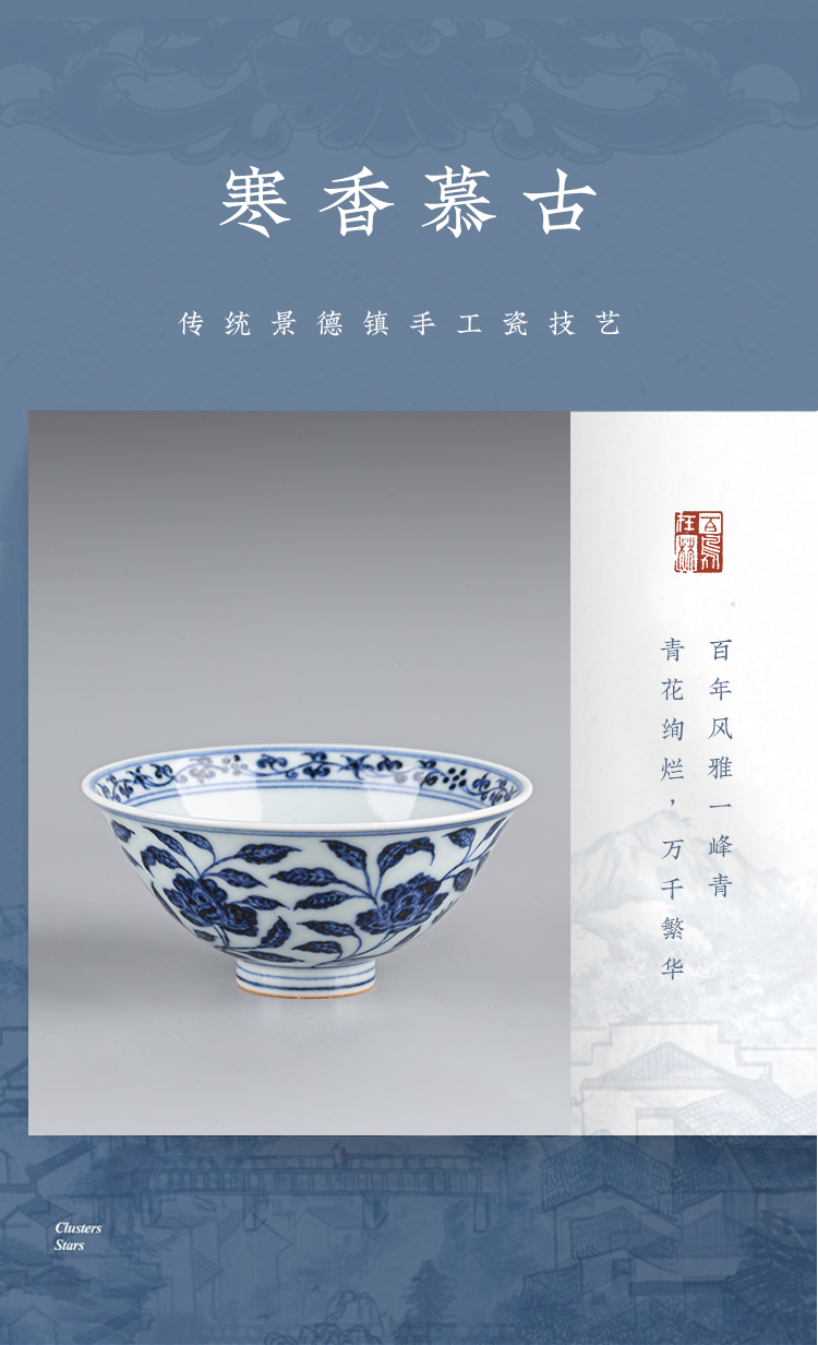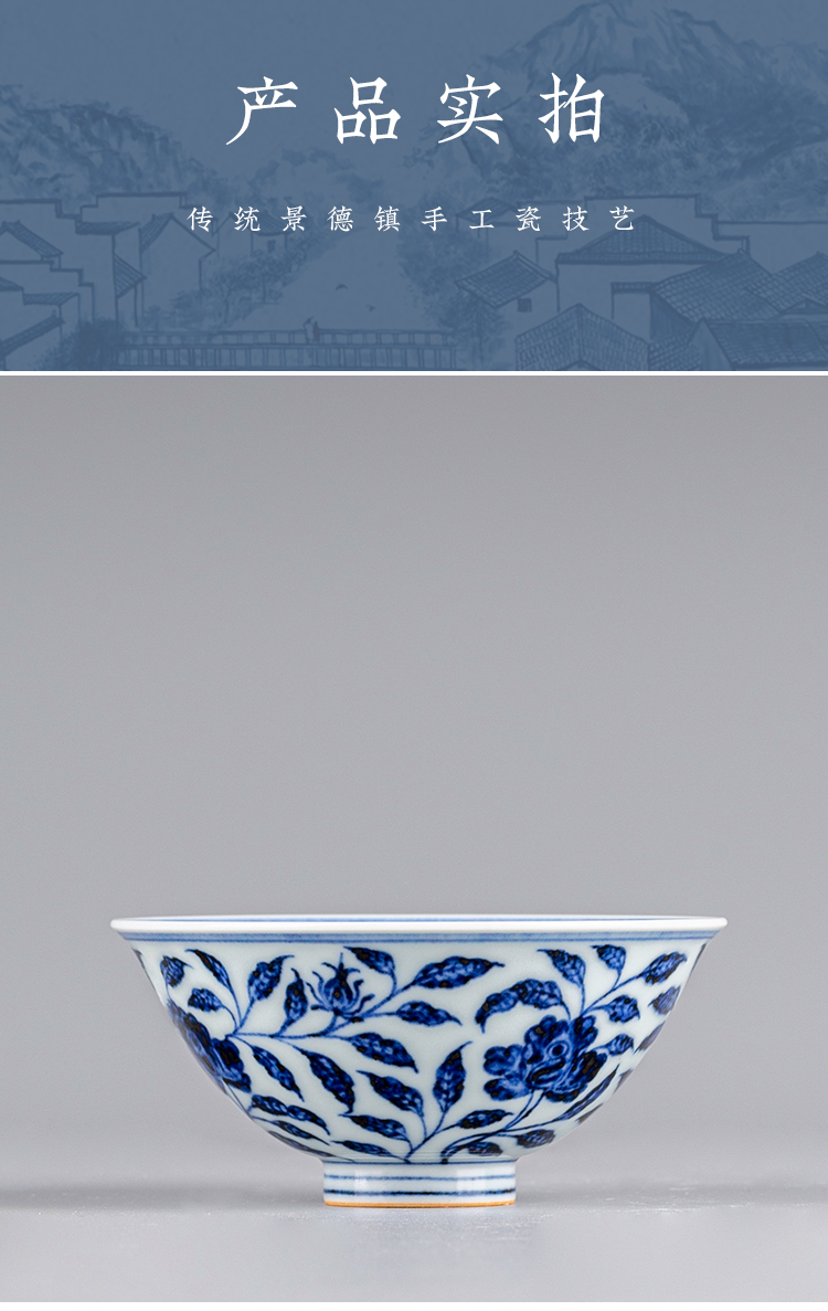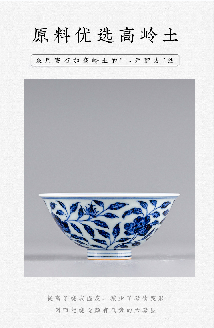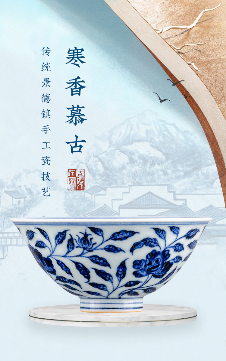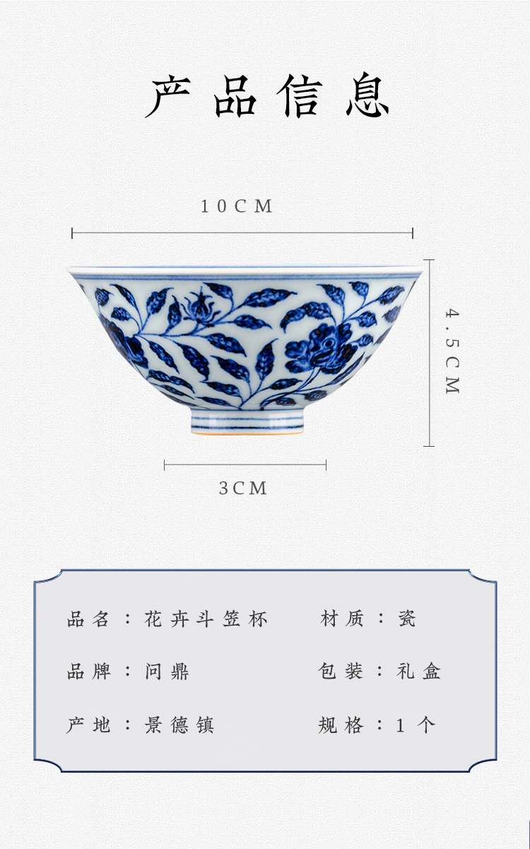 寒香慕古元青花花卉斗笠杯