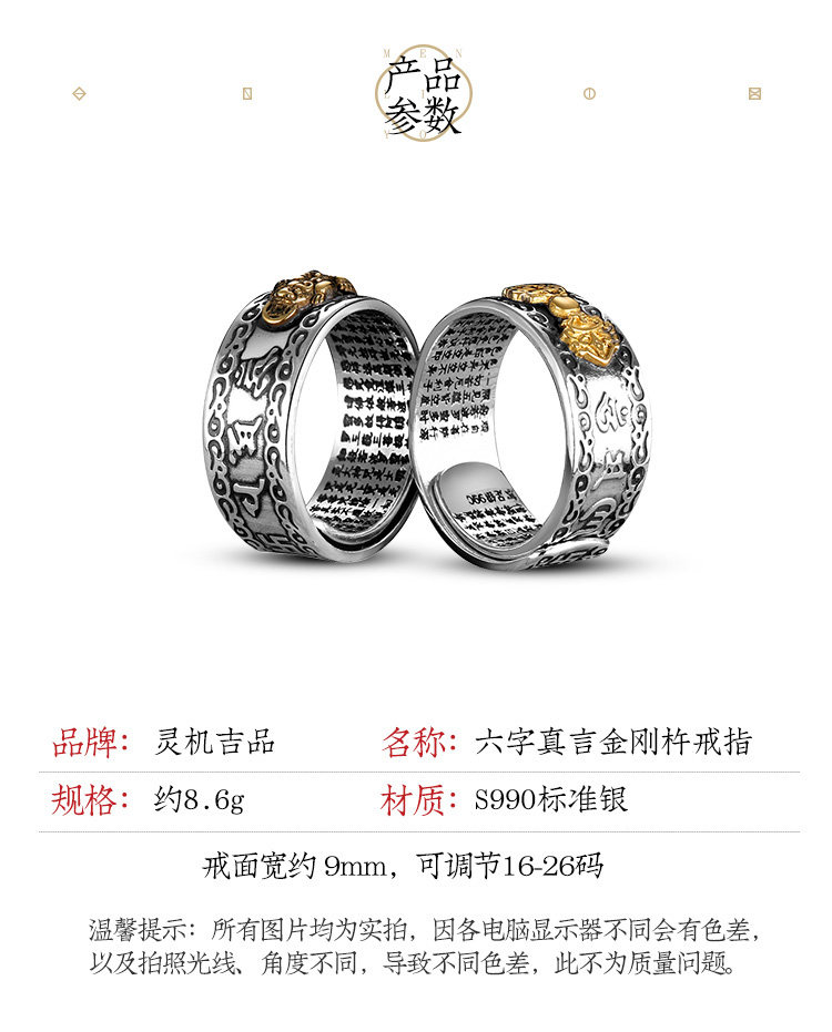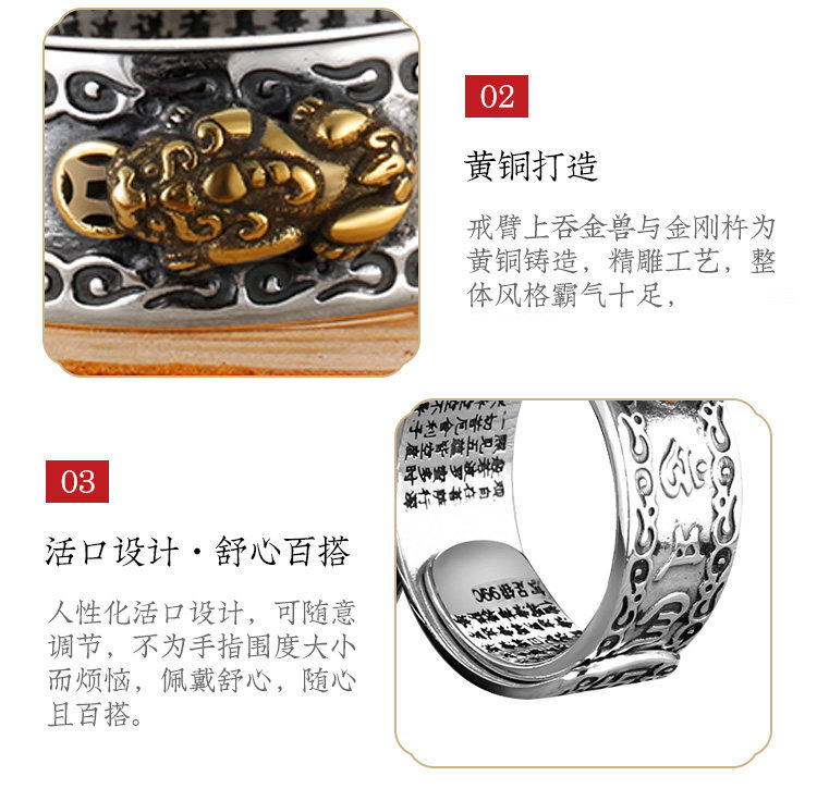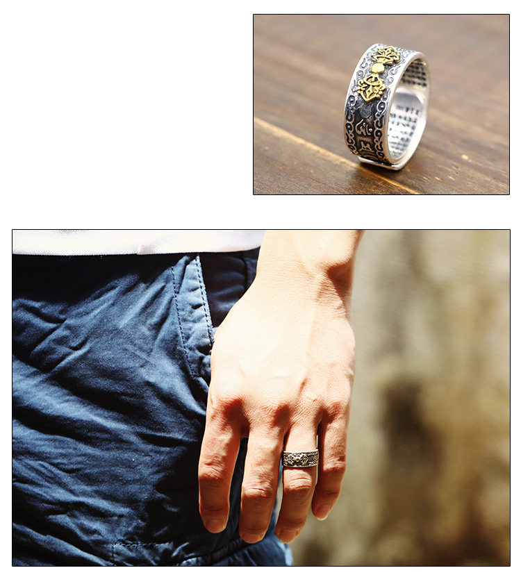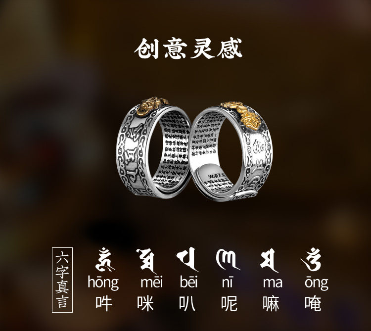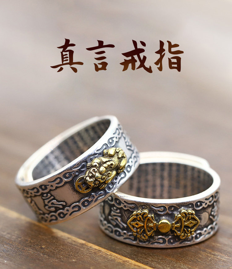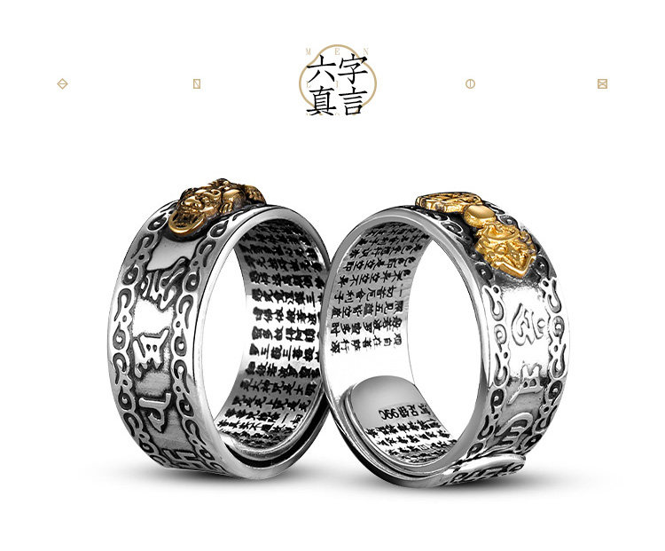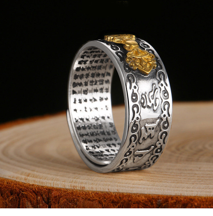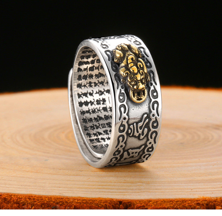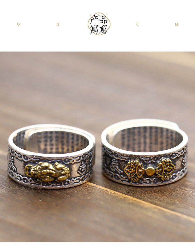 【祈愿吉品】貔貅戒指男六字真言银饰心经冷淡风开口可调节