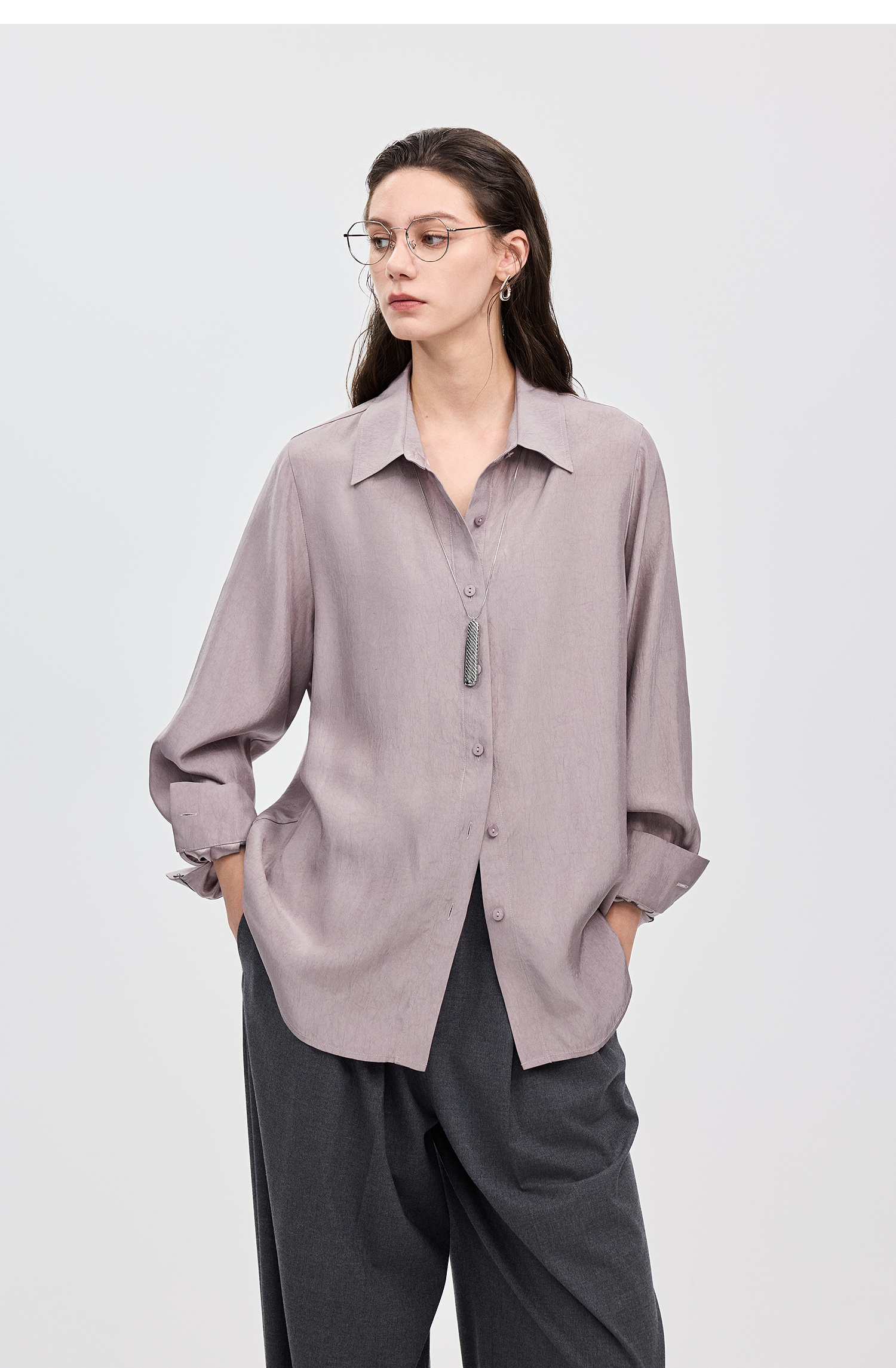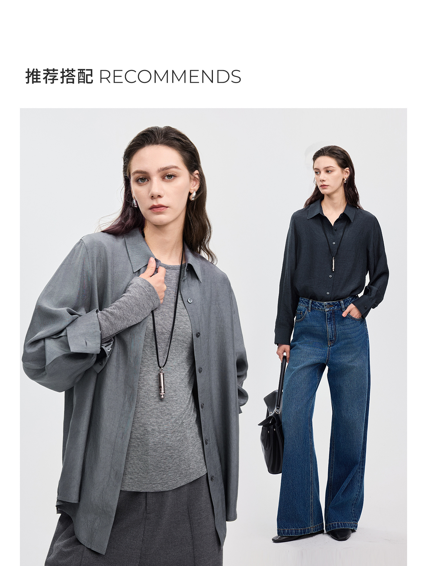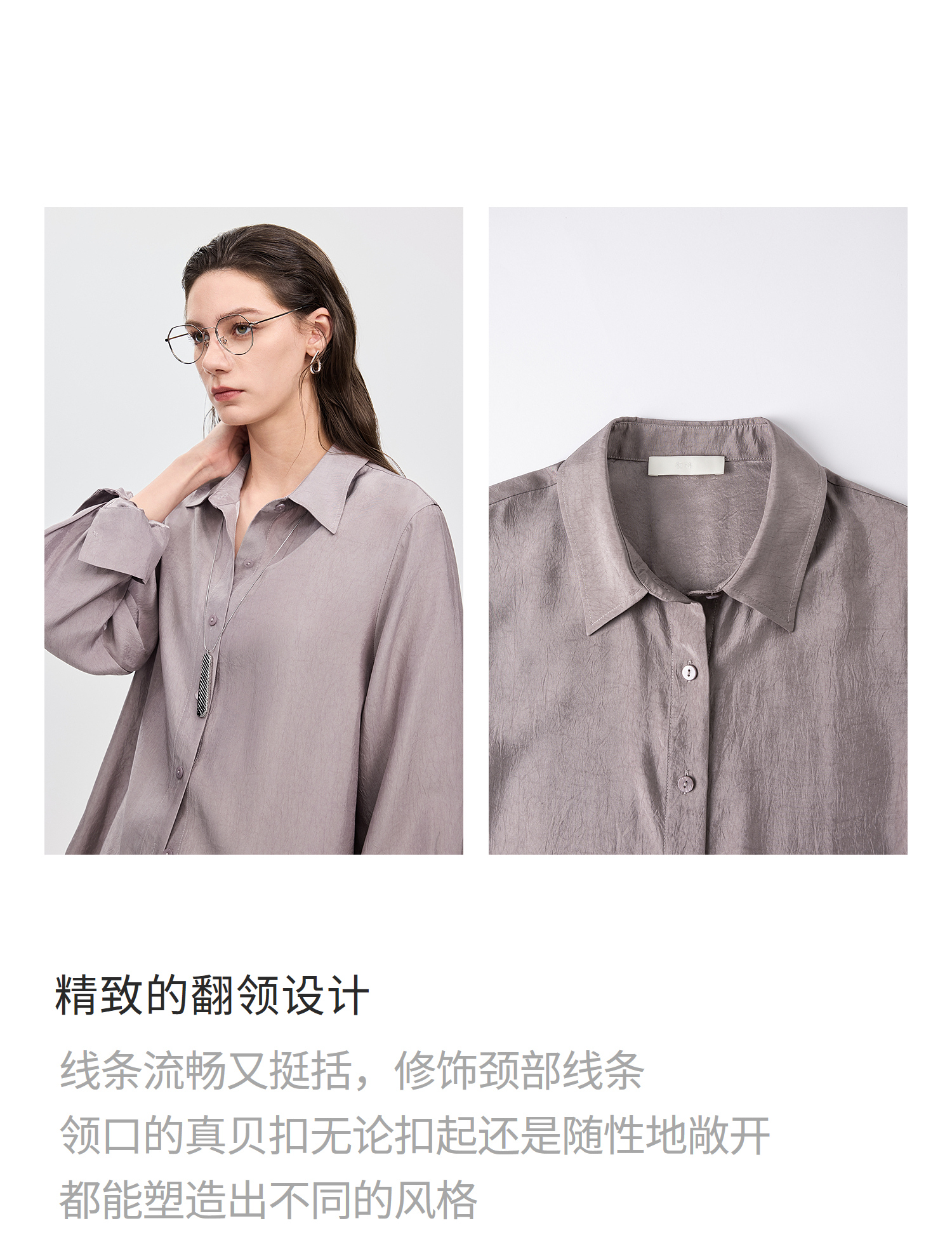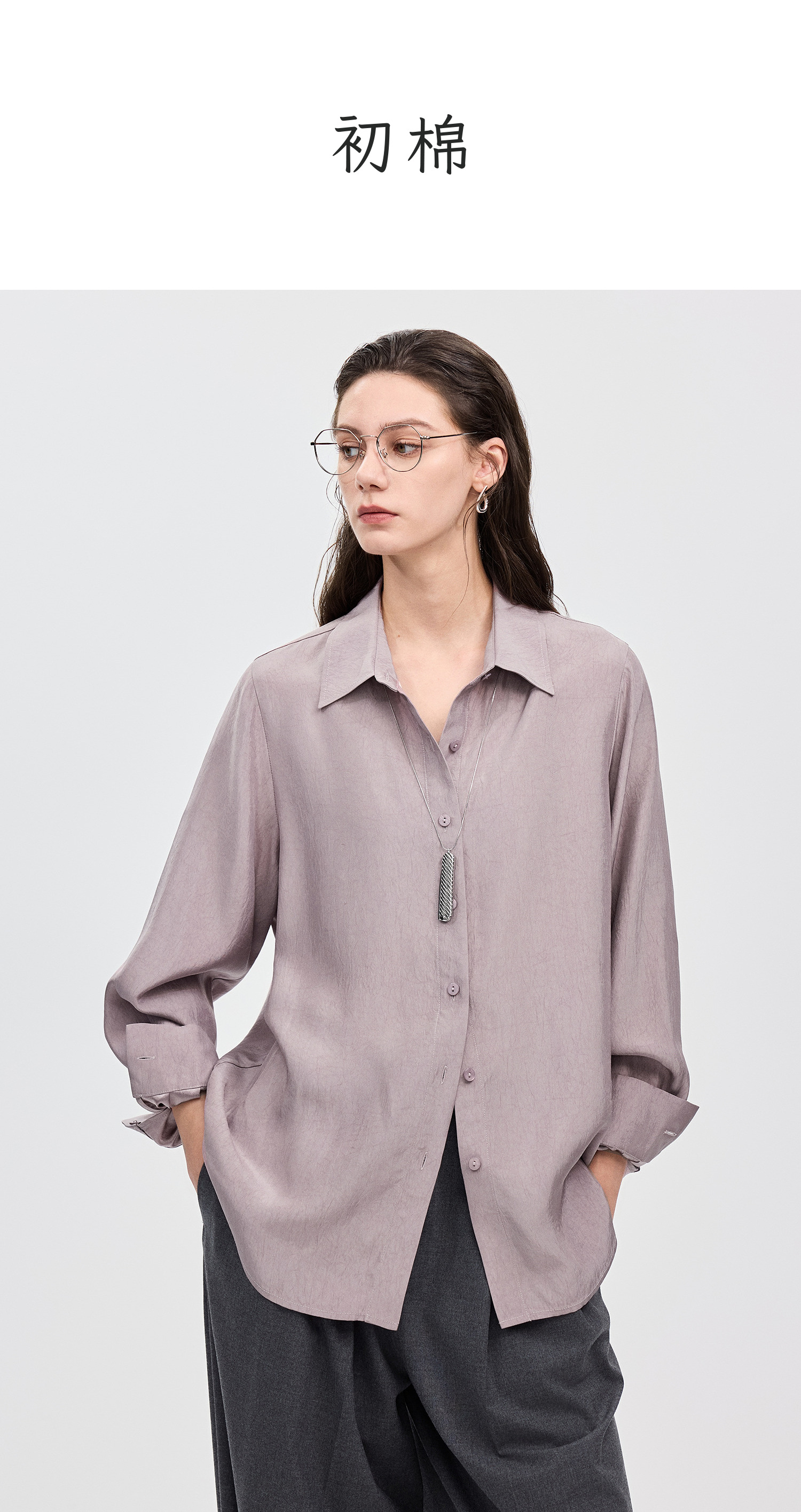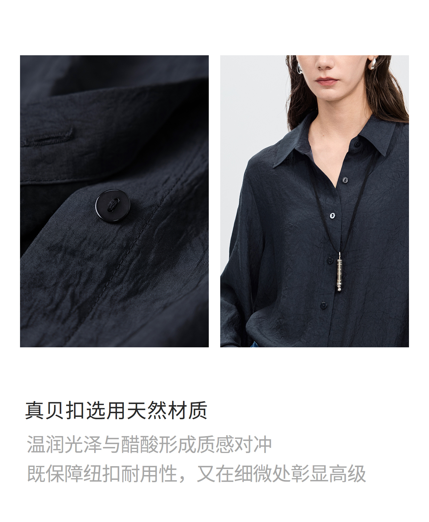 棉仓366604017-100%伊斯曼醋酸长袖衬衫女25秋新品垂坠感宽松显瘦衬衣