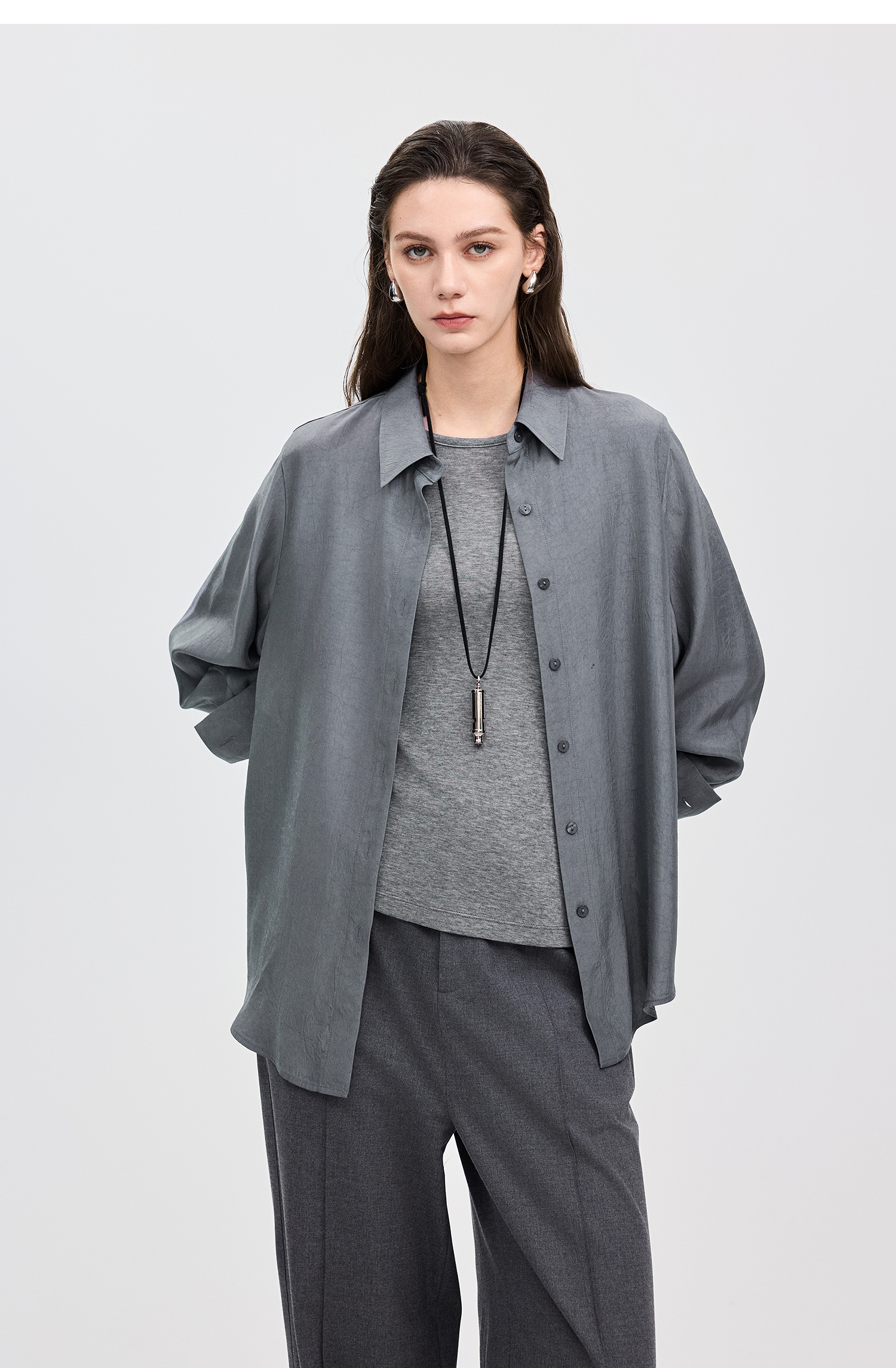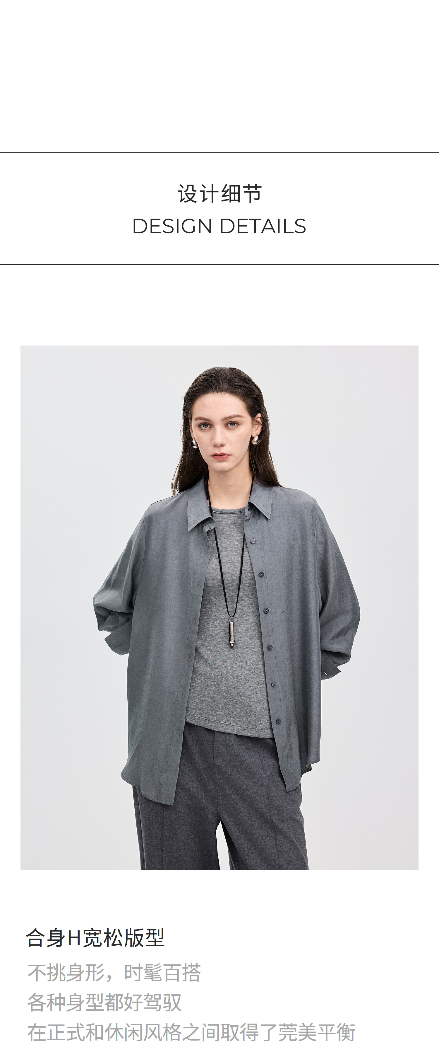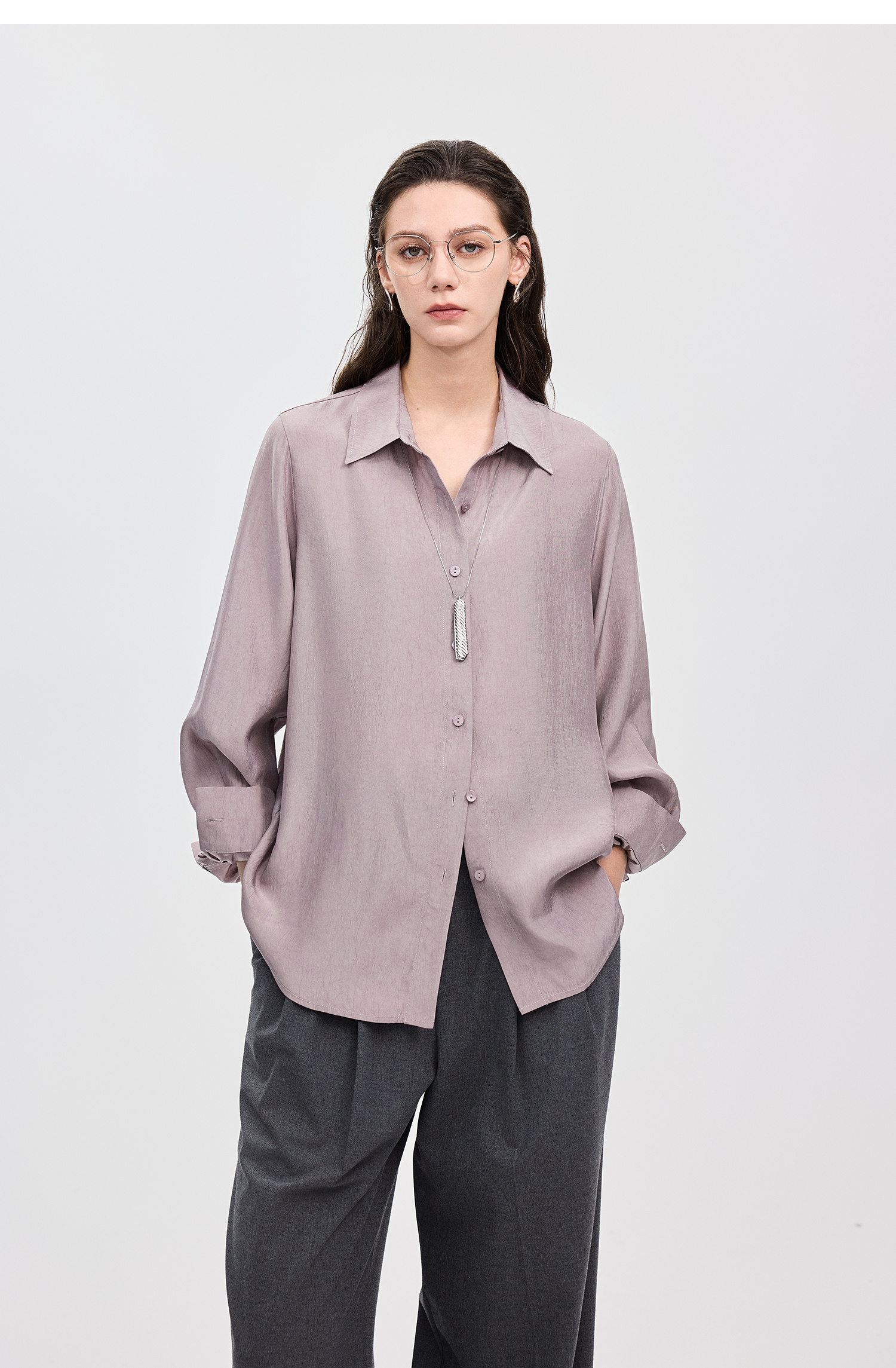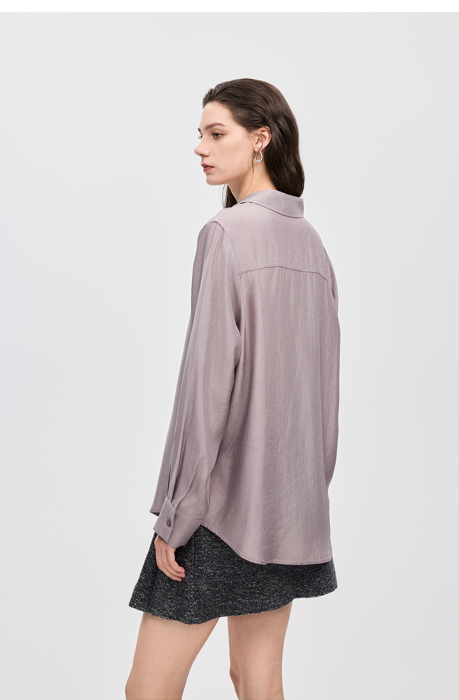 棉仓366604017-100%伊斯曼醋酸长袖衬衫女25秋新品垂坠感宽松显瘦衬衣