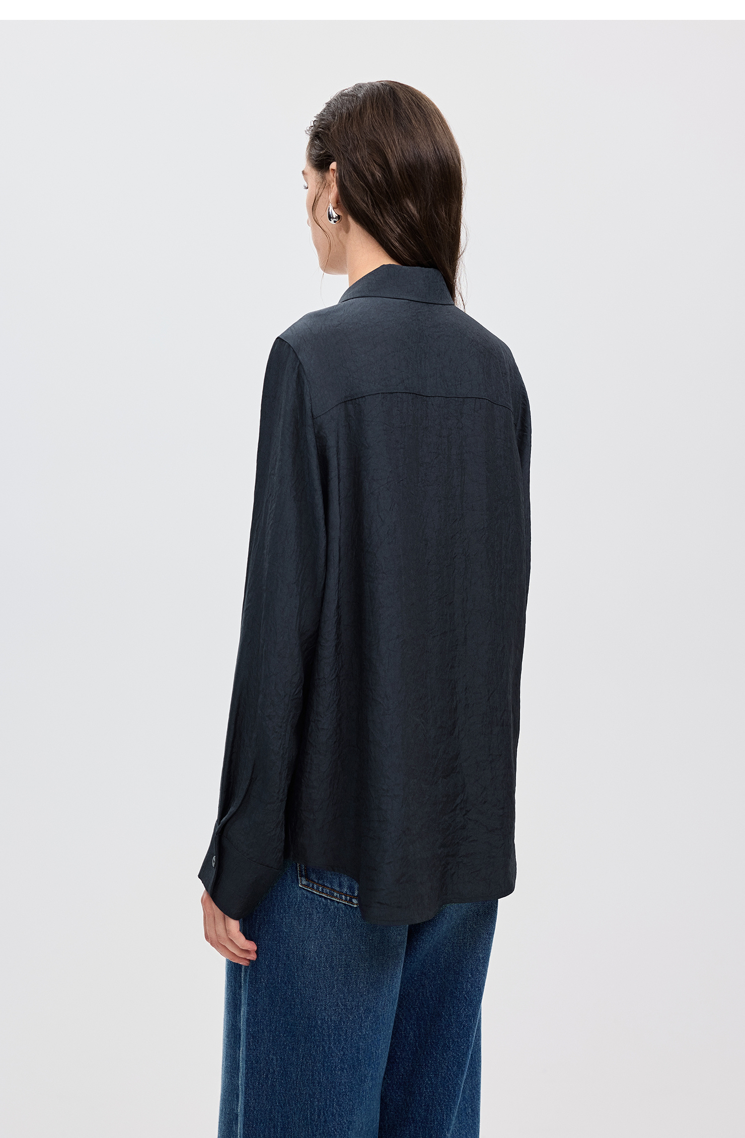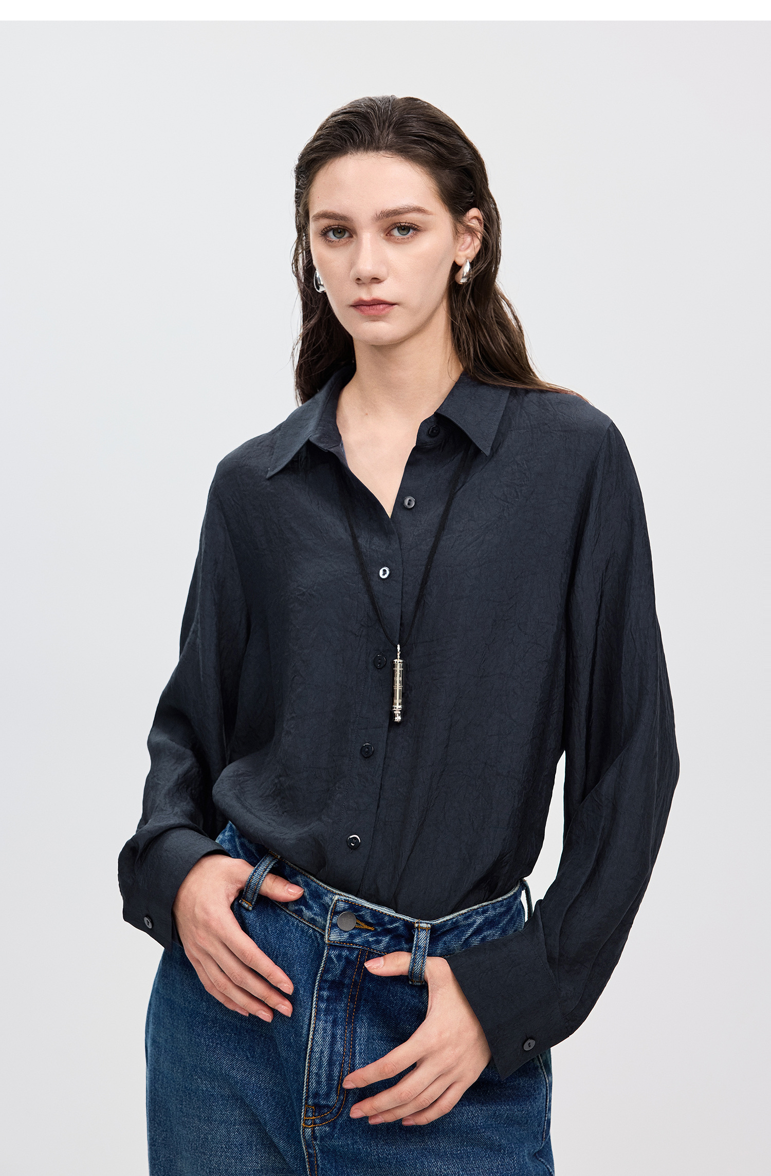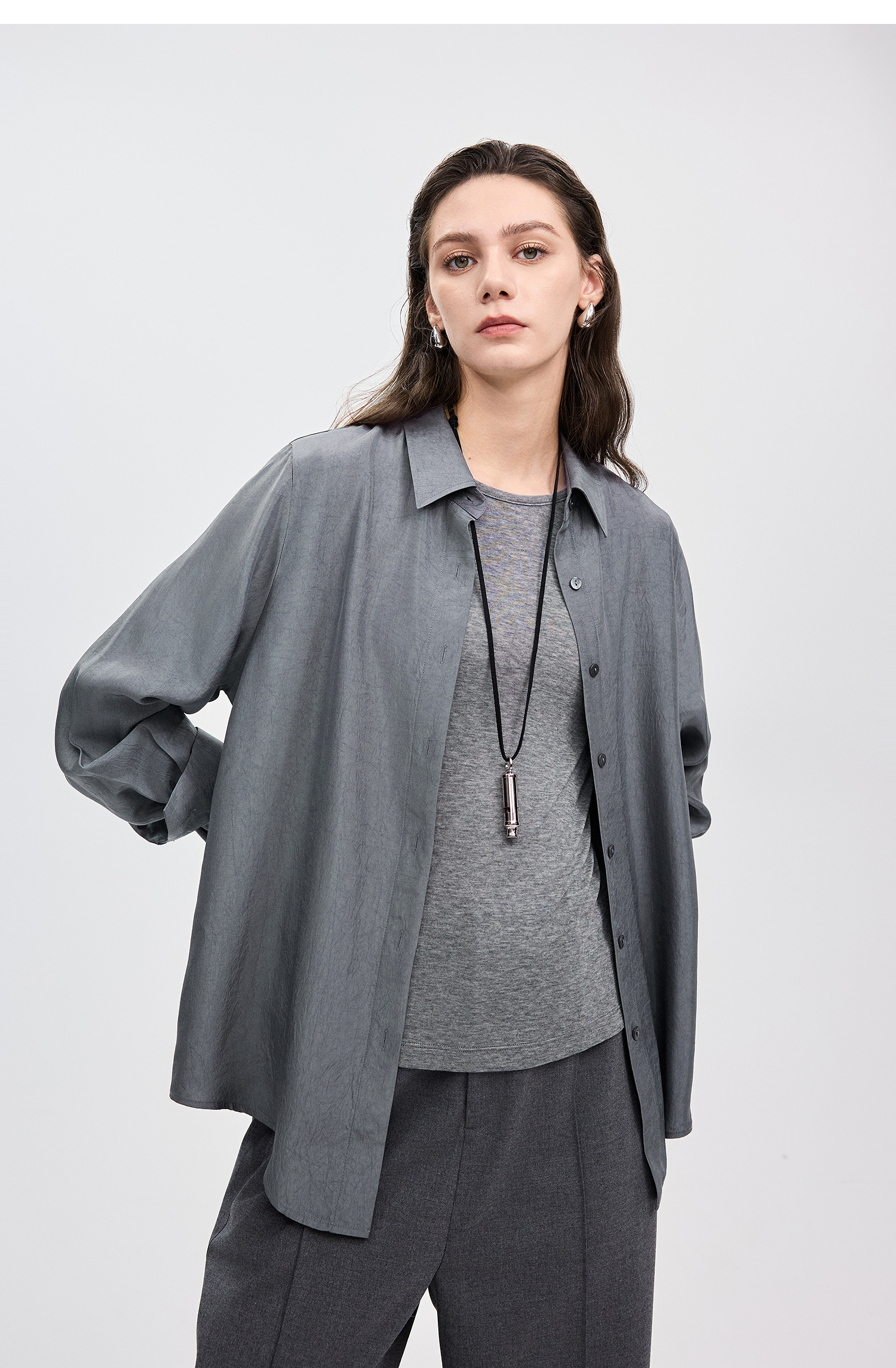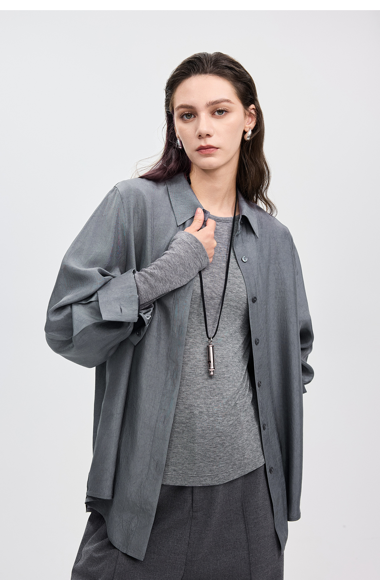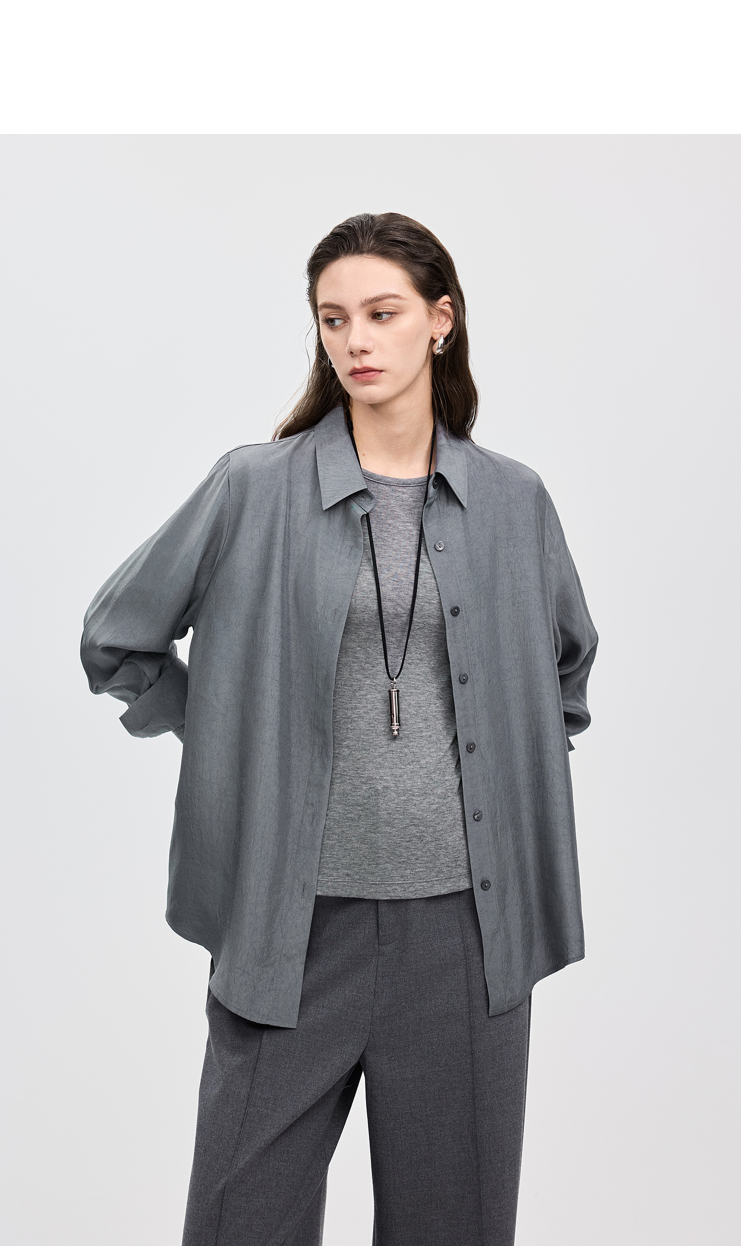 棉仓366604017-100%伊斯曼醋酸长袖衬衫女25秋新品垂坠感宽松显瘦衬衣