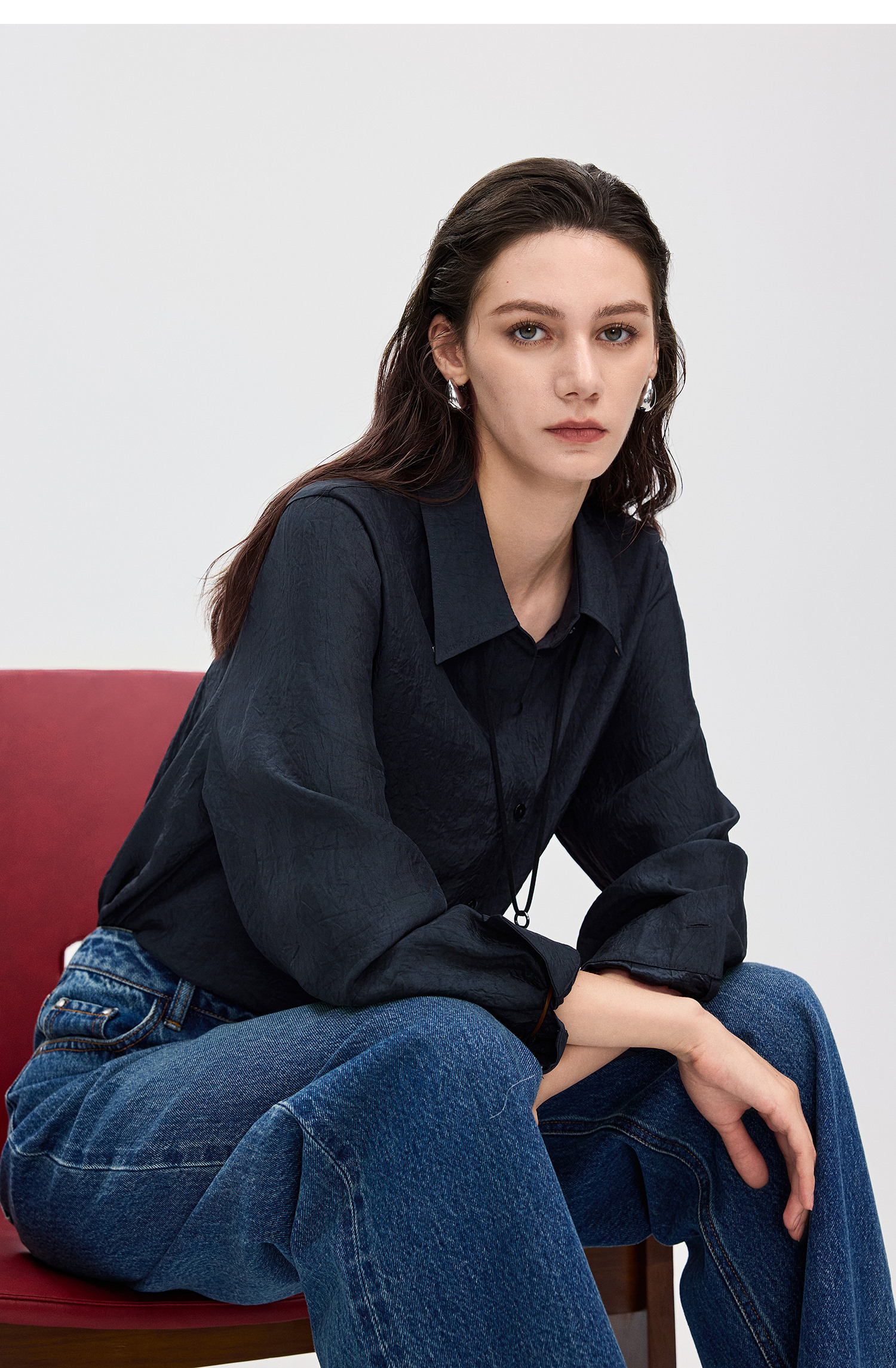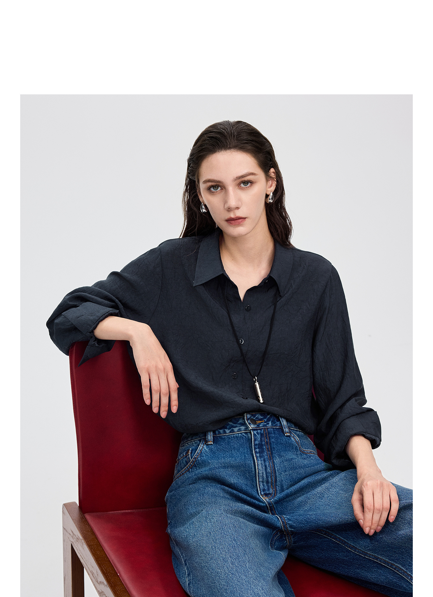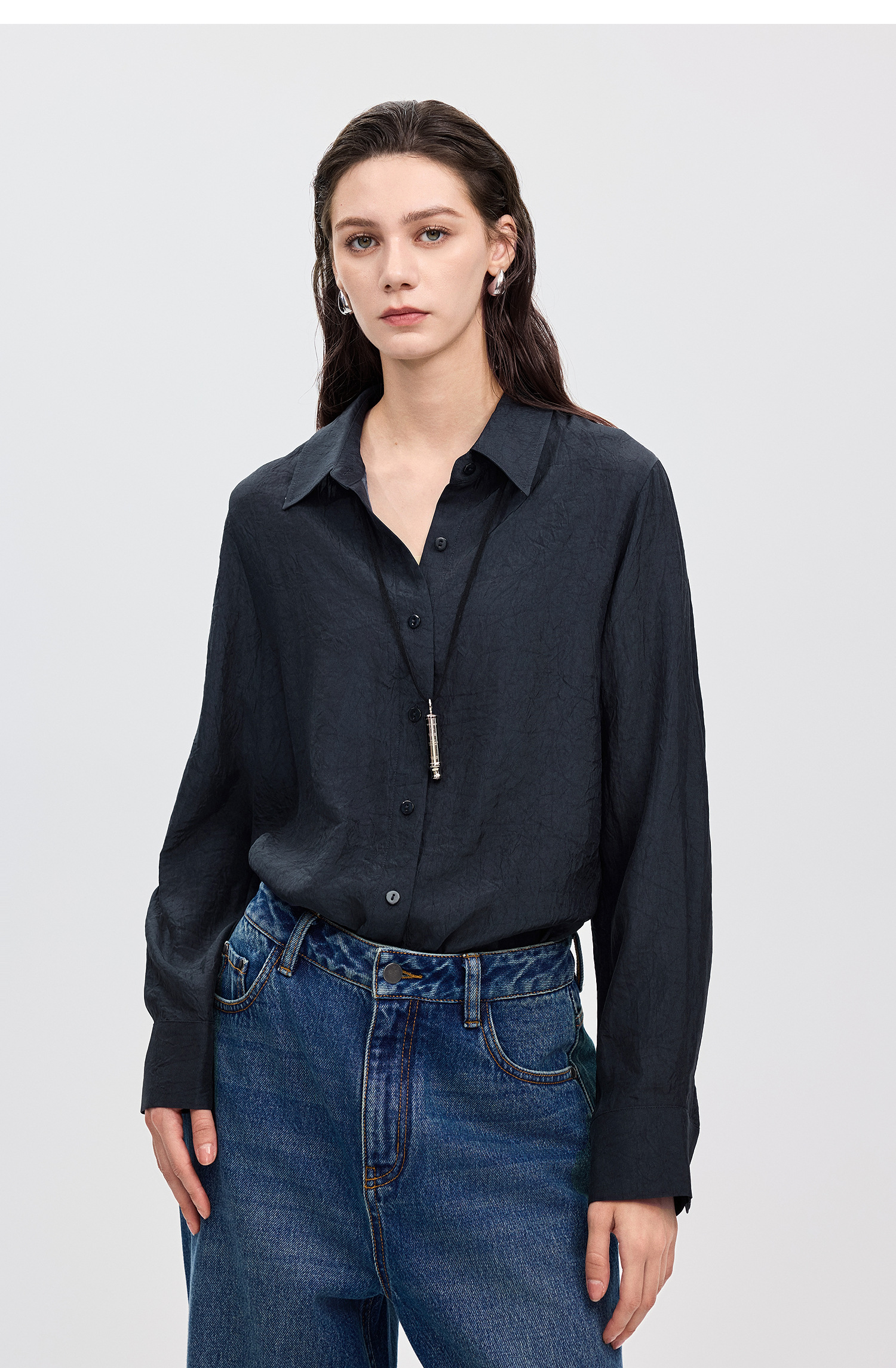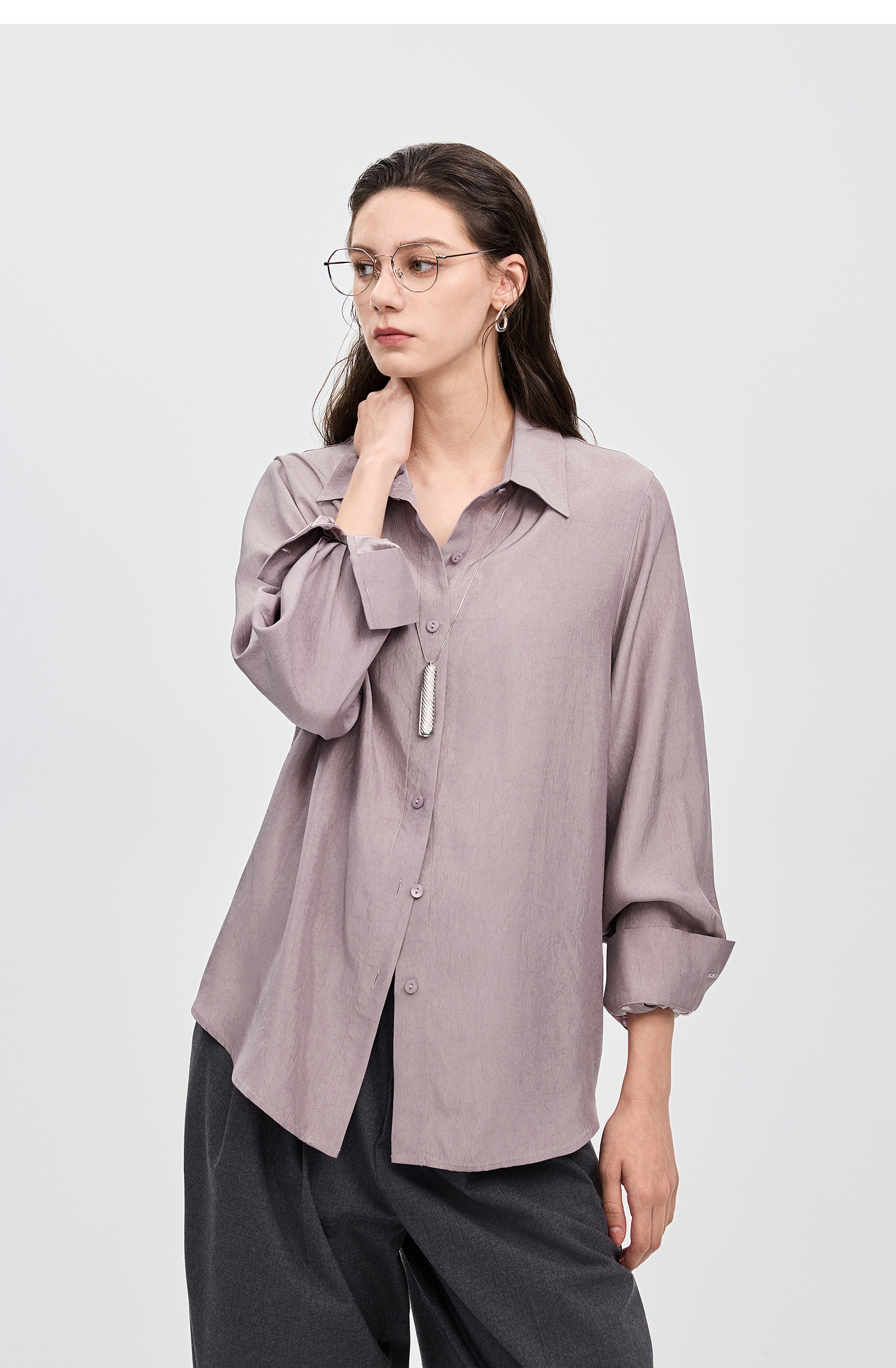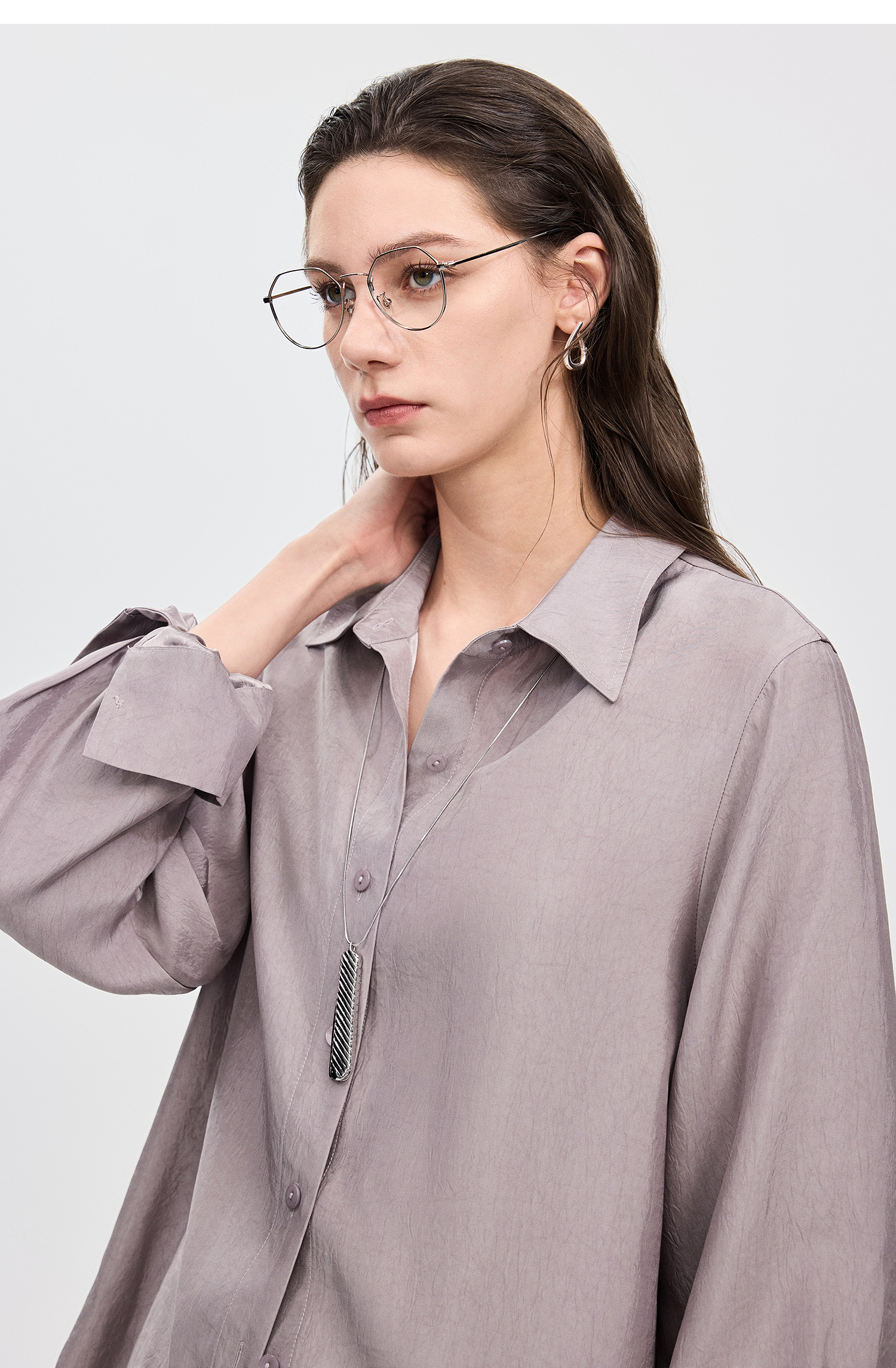 棉仓366604017-100%伊斯曼醋酸长袖衬衫女25秋新品垂坠感宽松显瘦衬衣