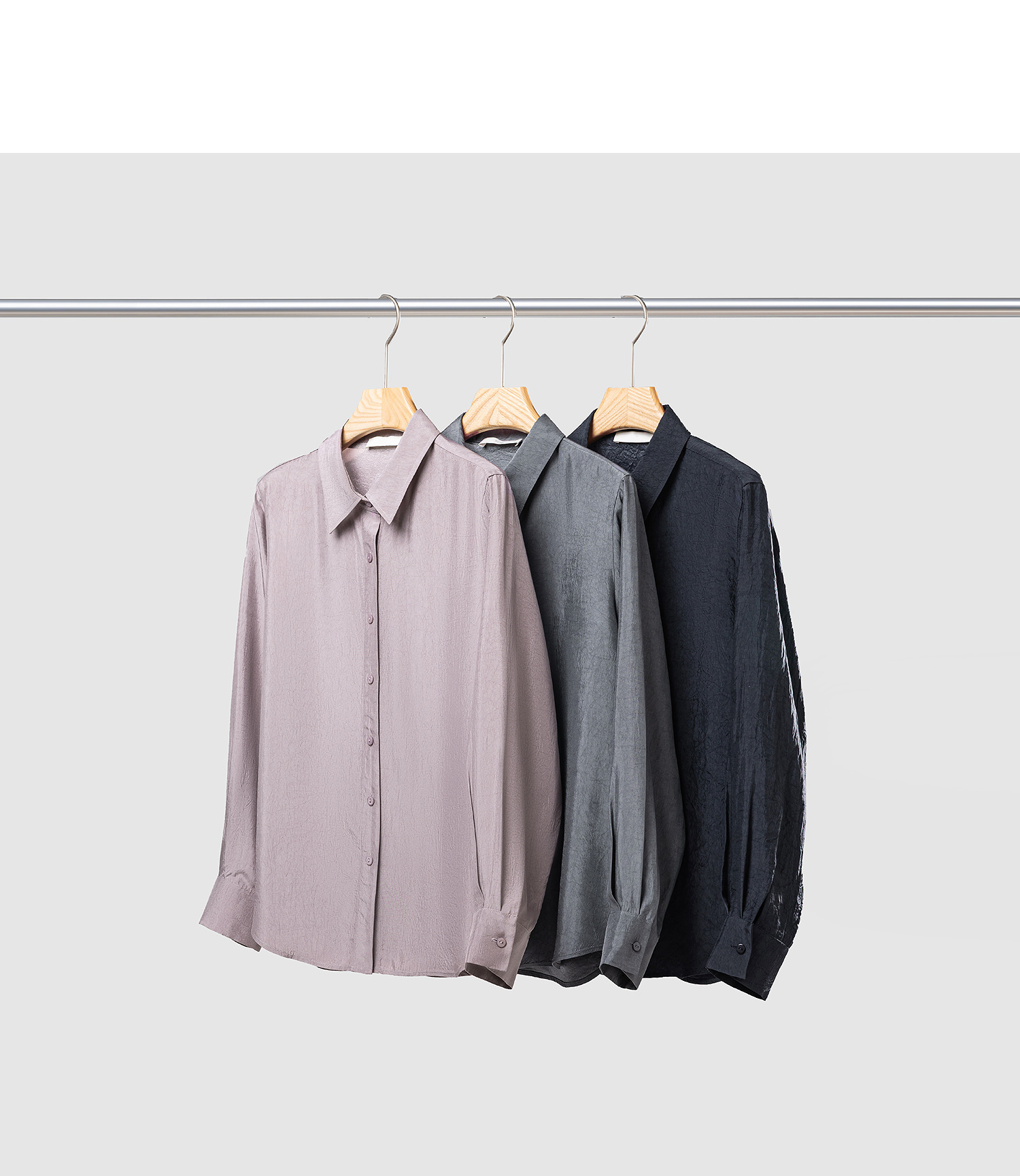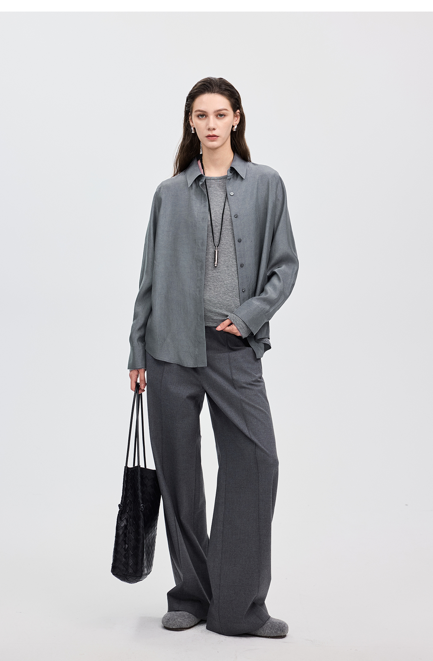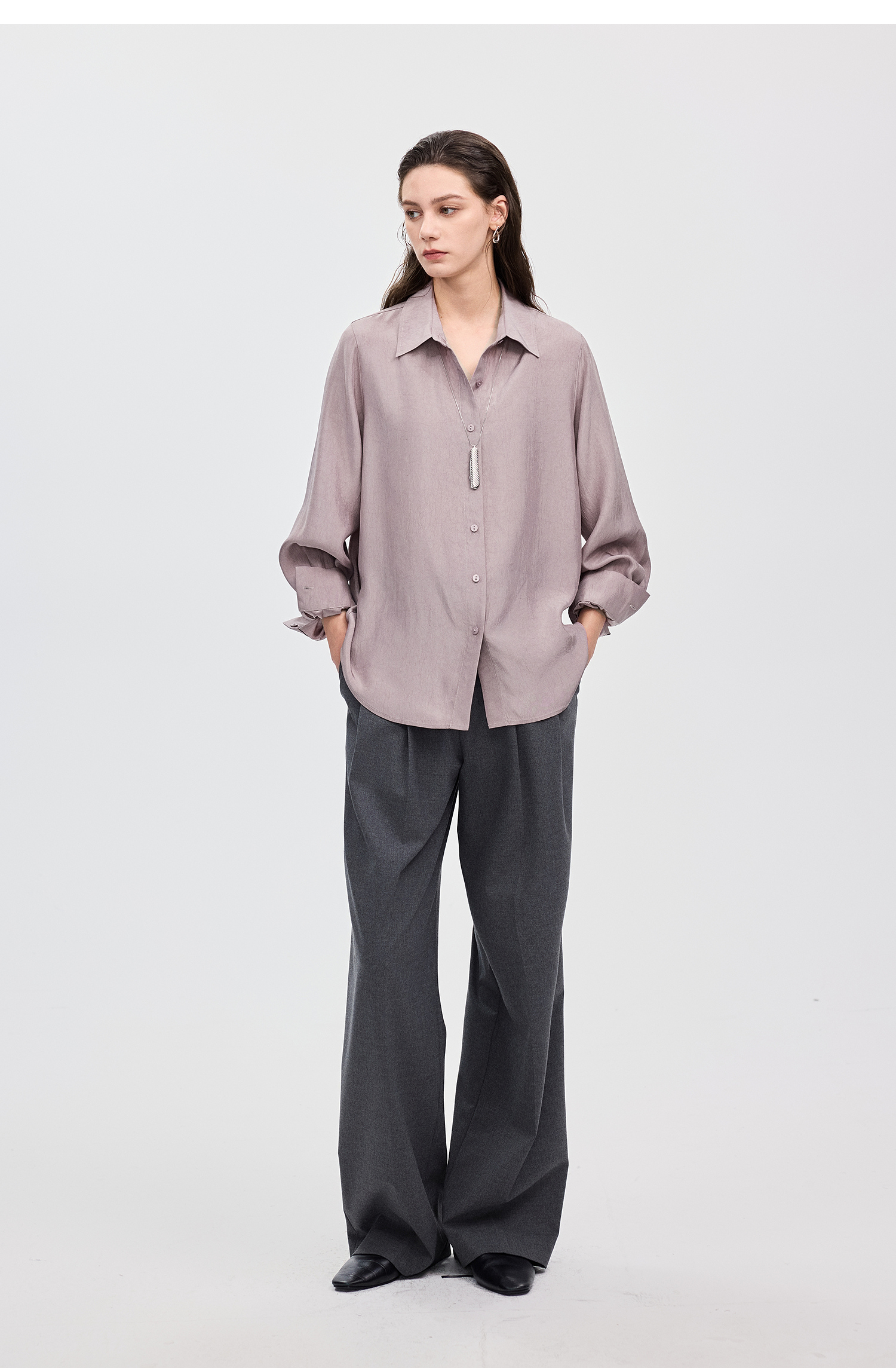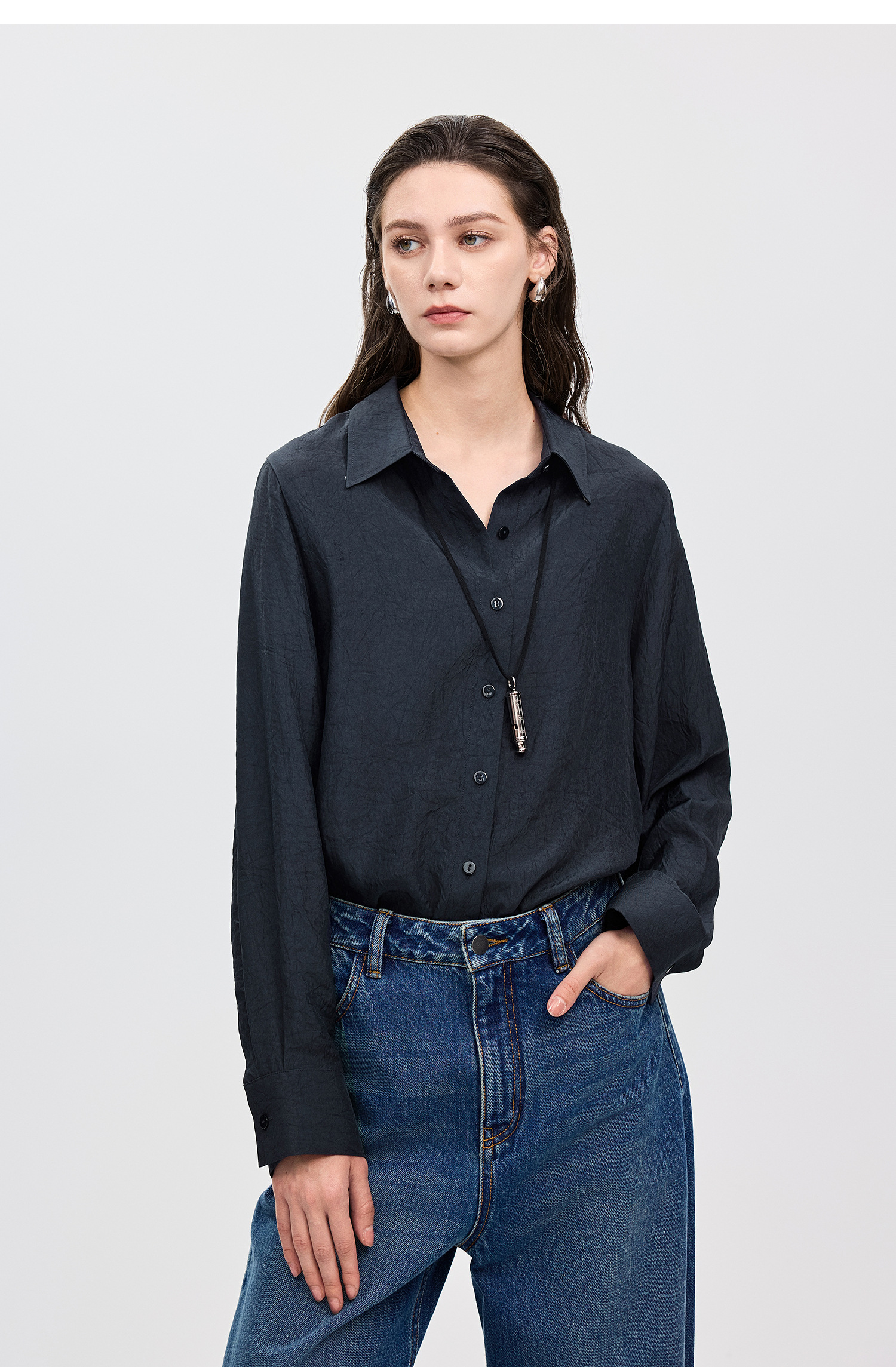 棉仓366604017-100%伊斯曼醋酸长袖衬衫女25秋新品垂坠感宽松显瘦衬衣