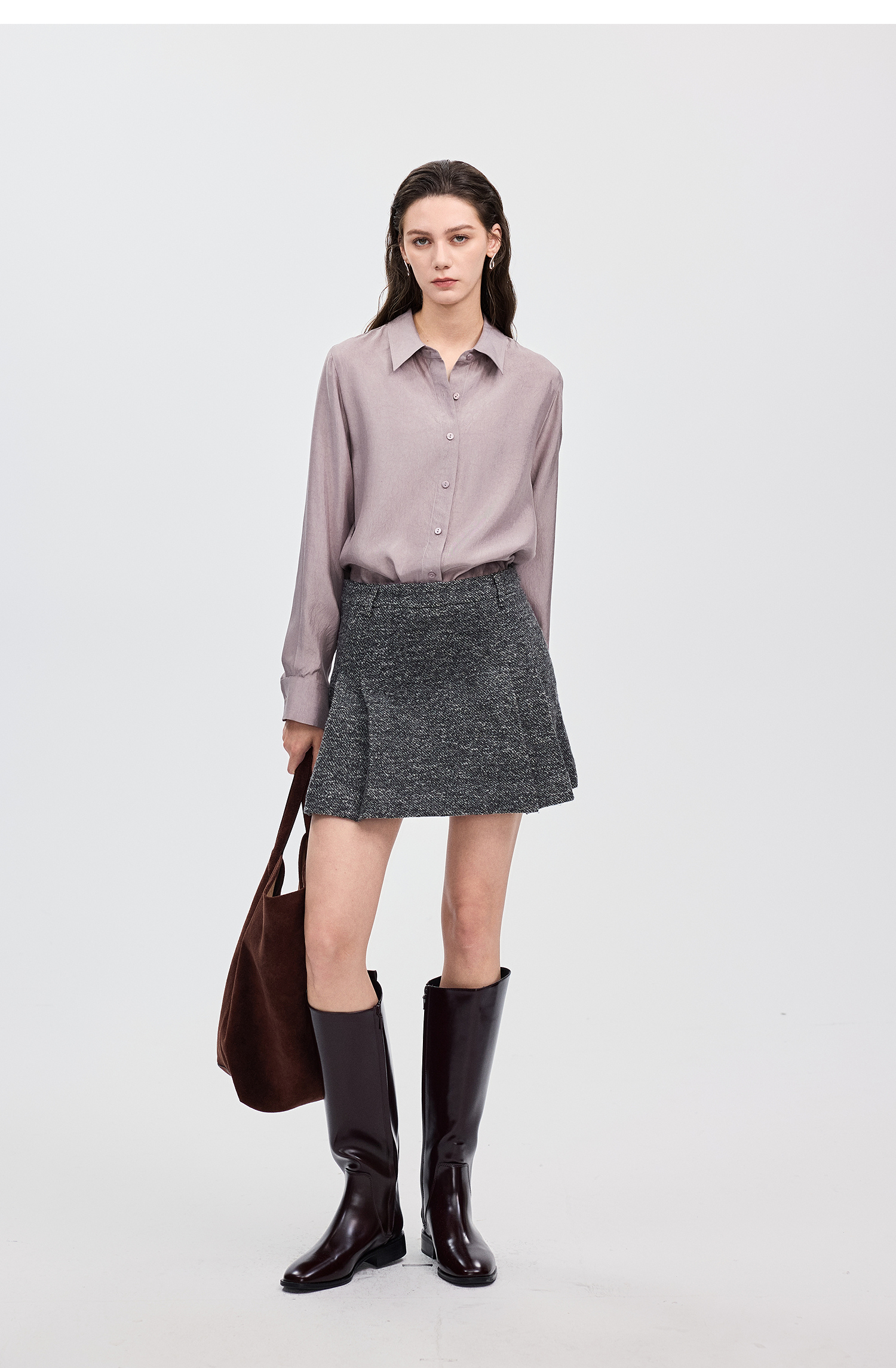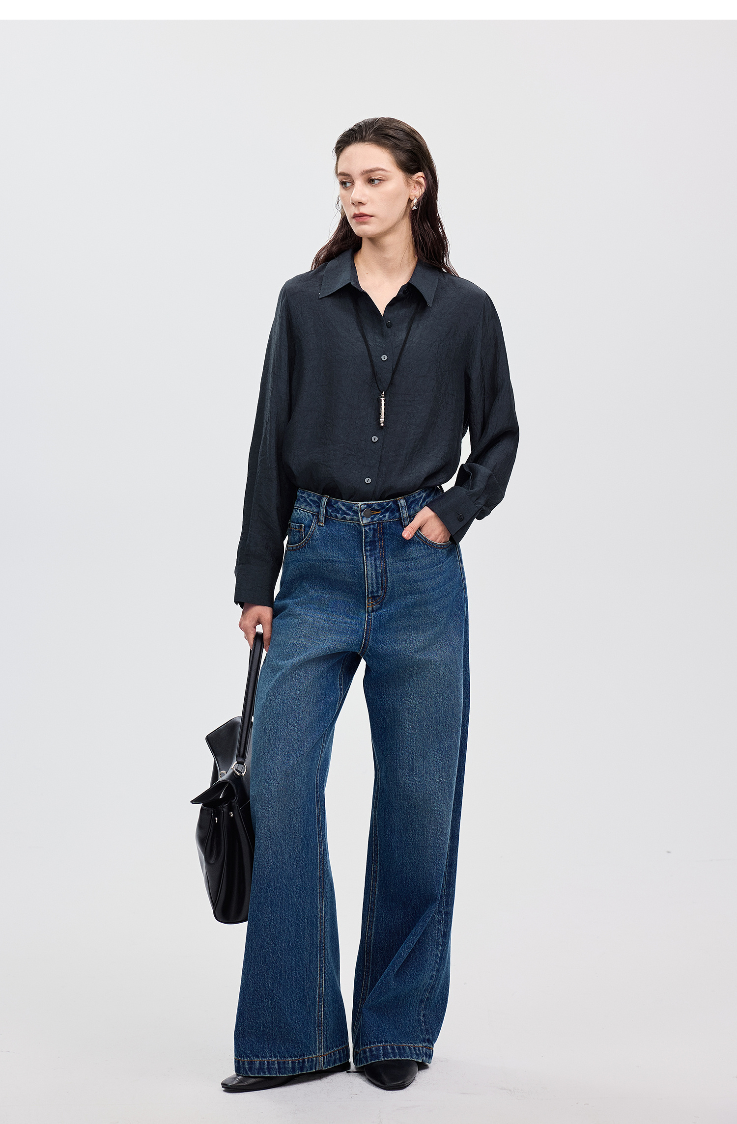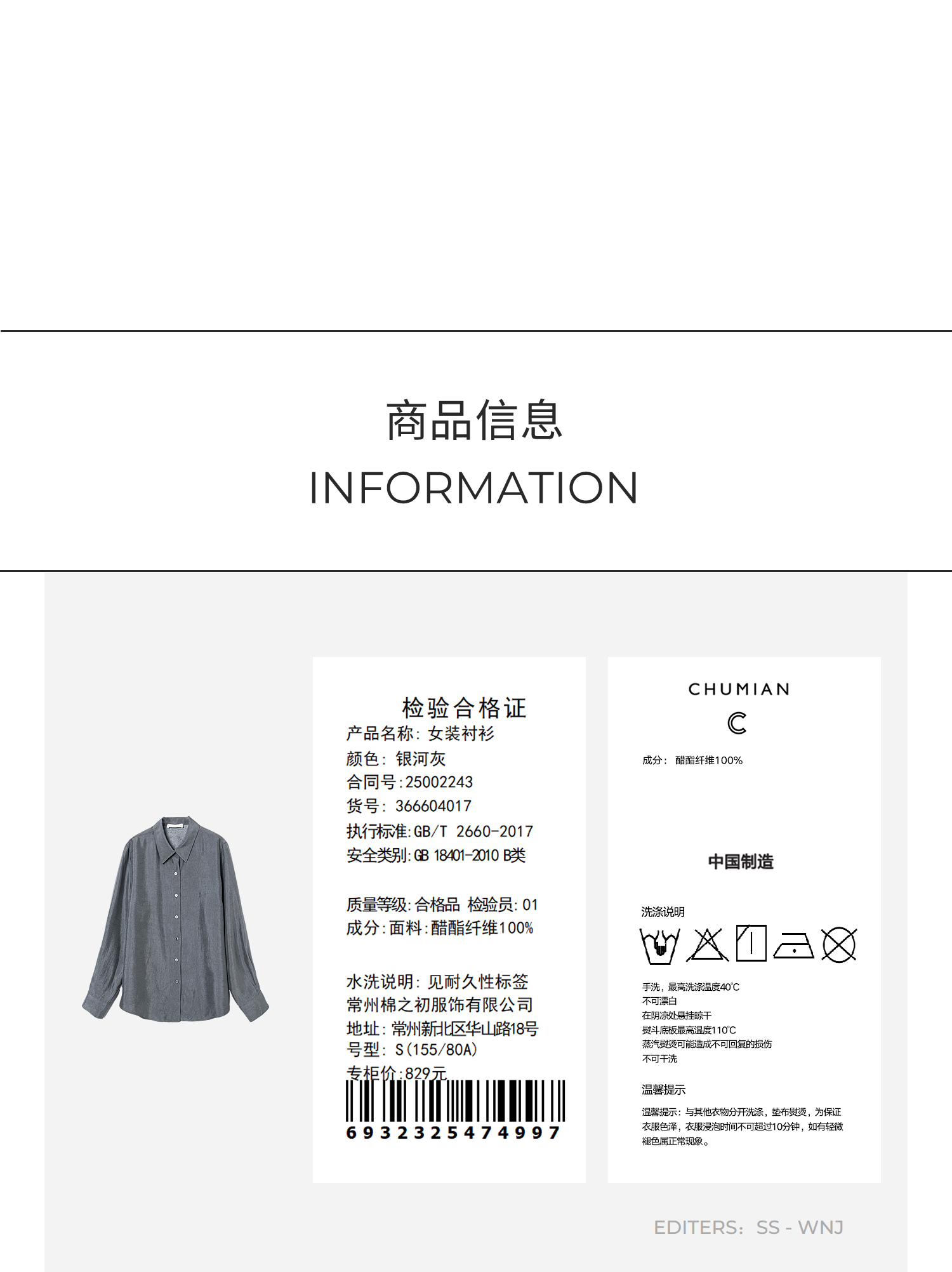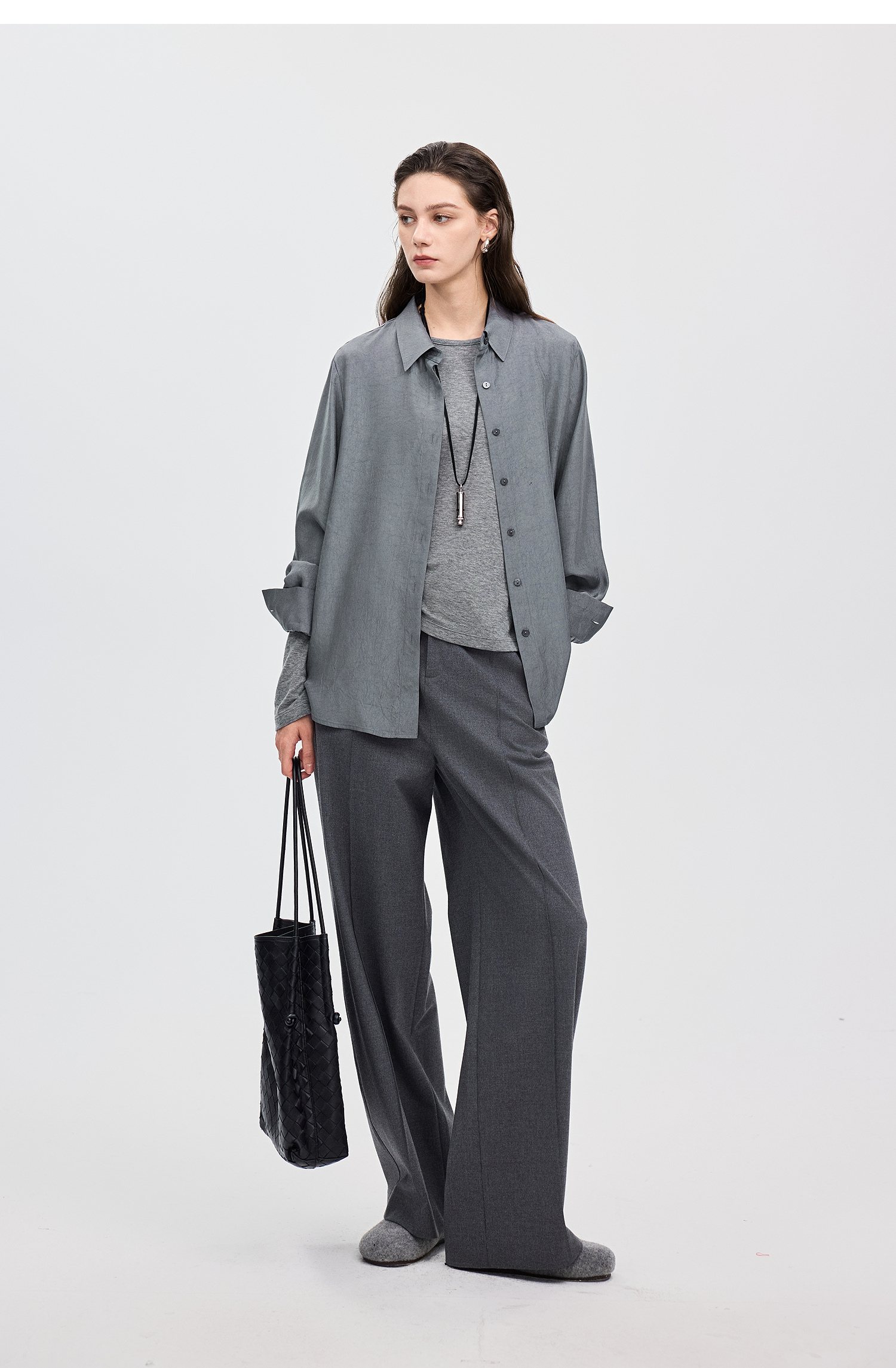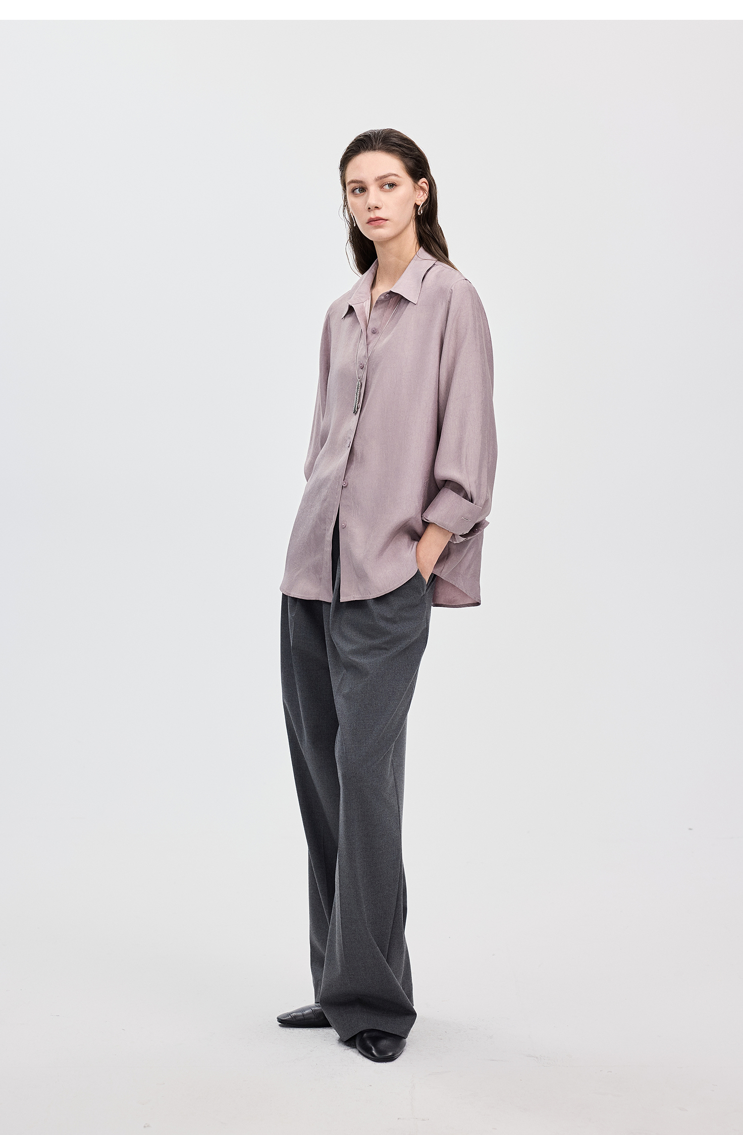 棉仓366604017-100%伊斯曼醋酸长袖衬衫女25秋新品垂坠感宽松显瘦衬衣
