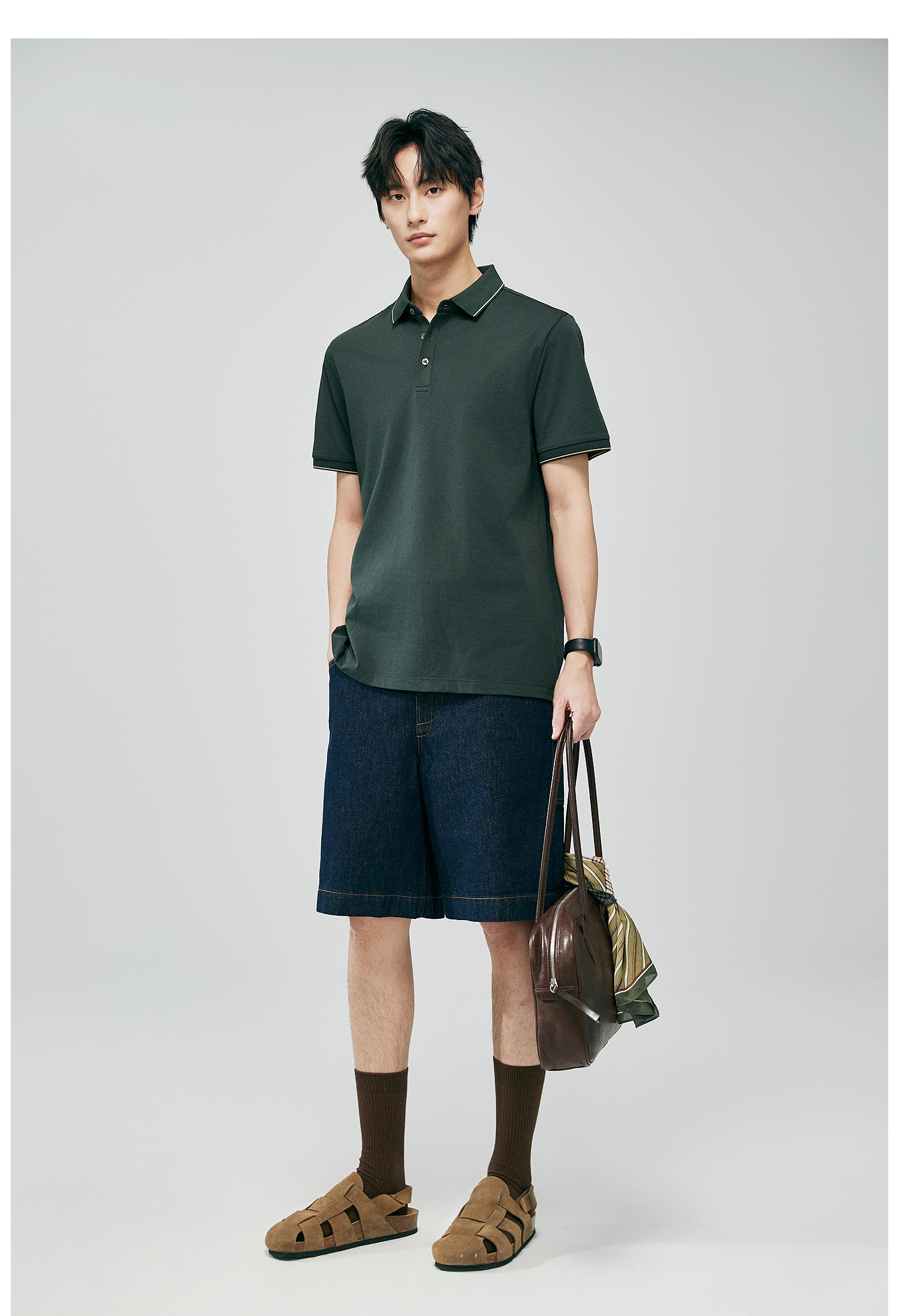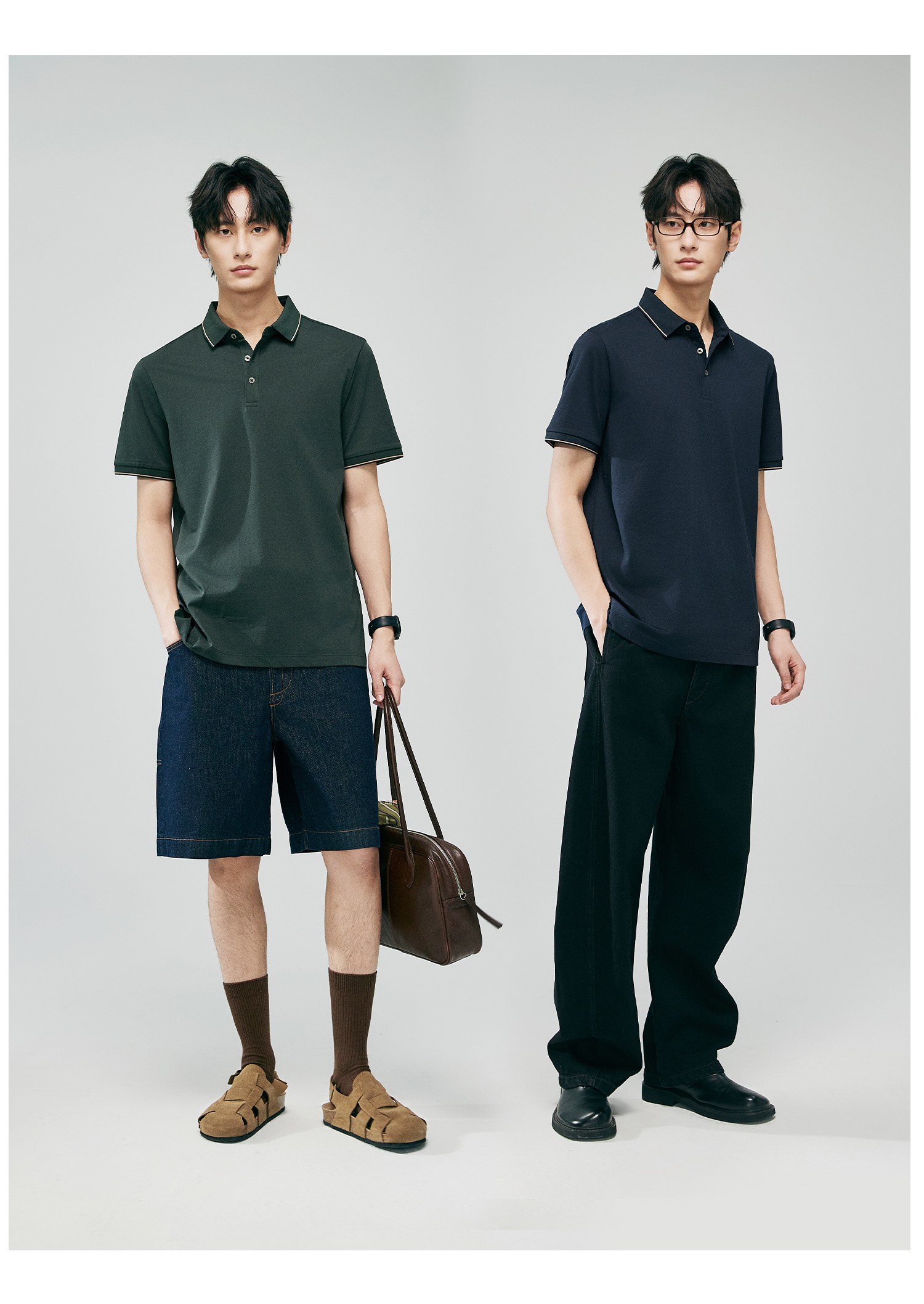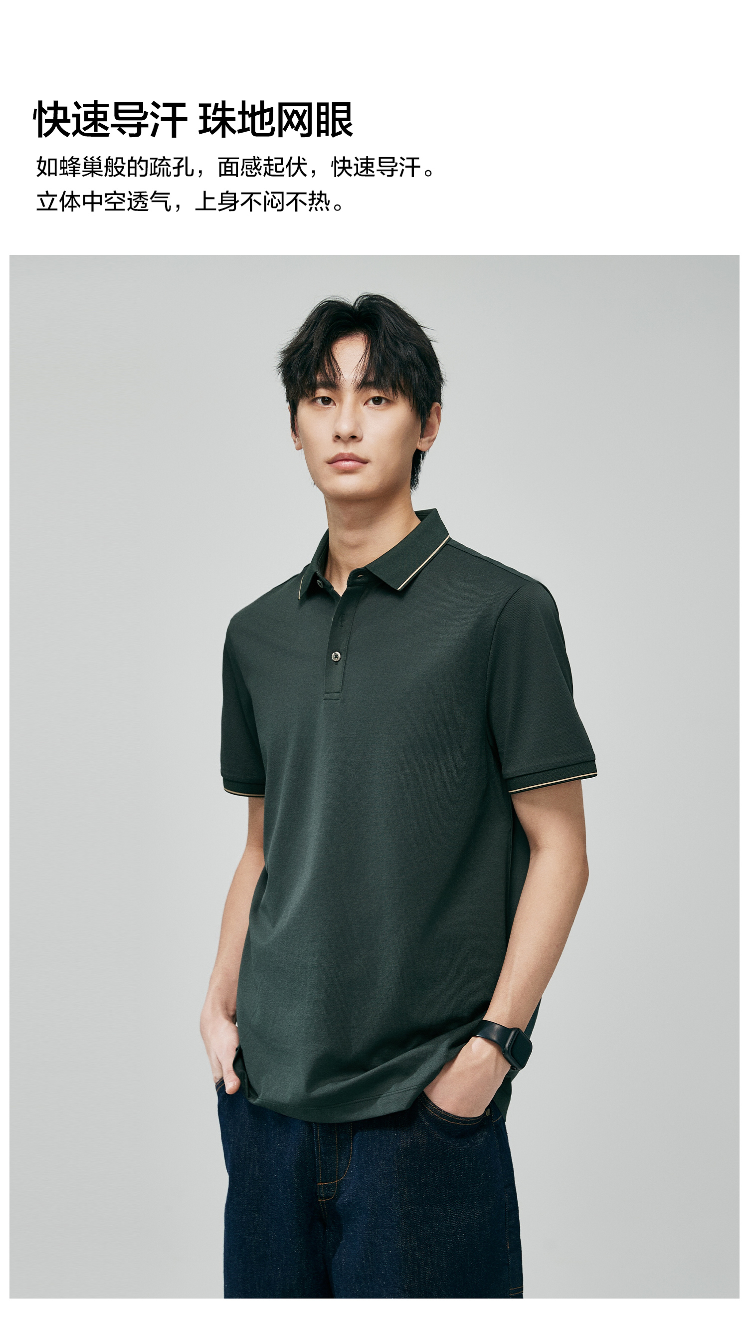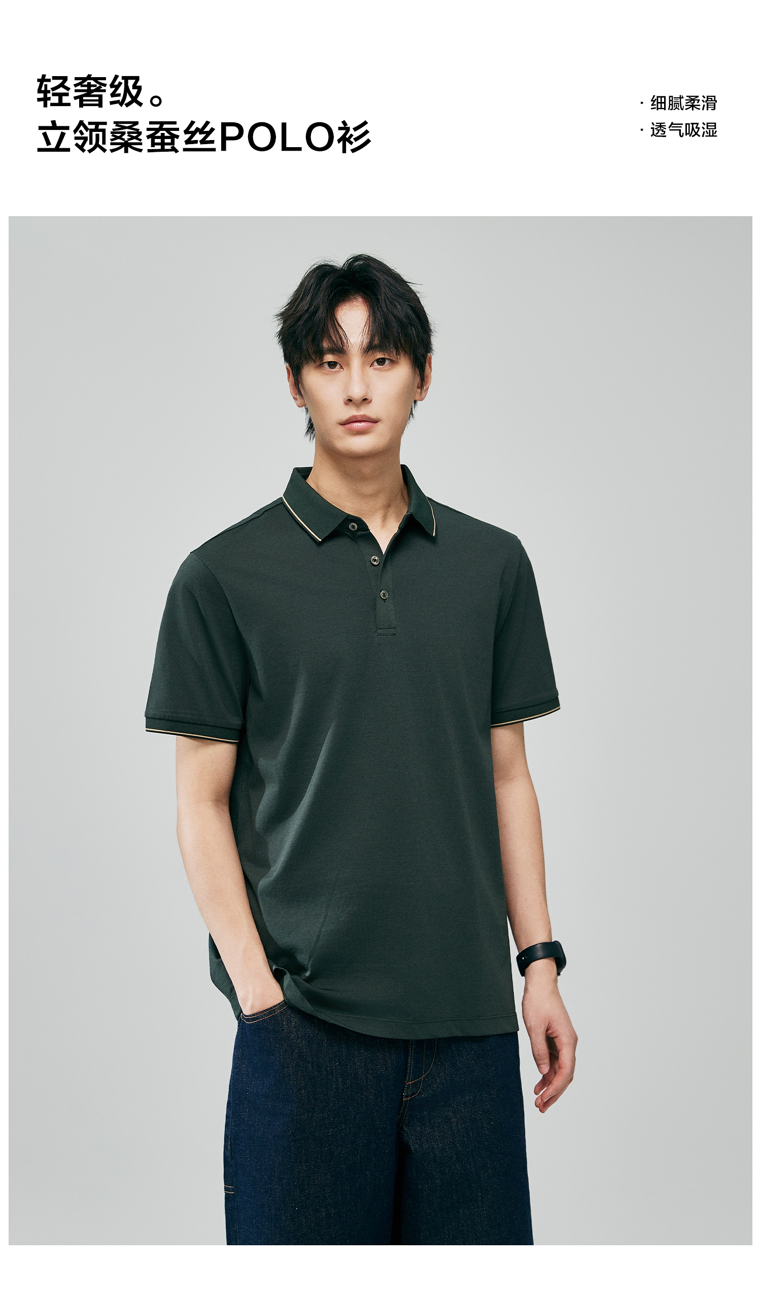 棉仓363802022-3A抗菌桑蚕丝撞色边POLO