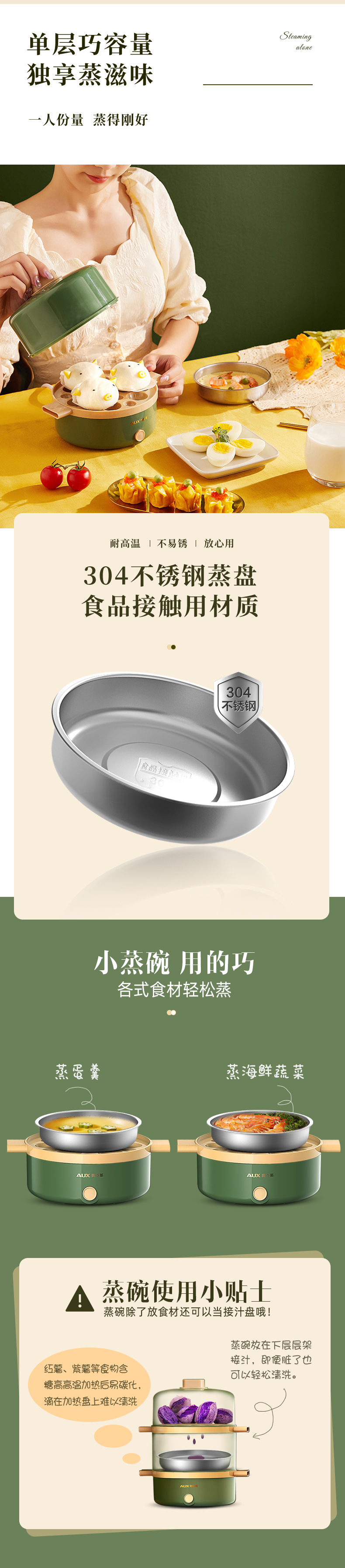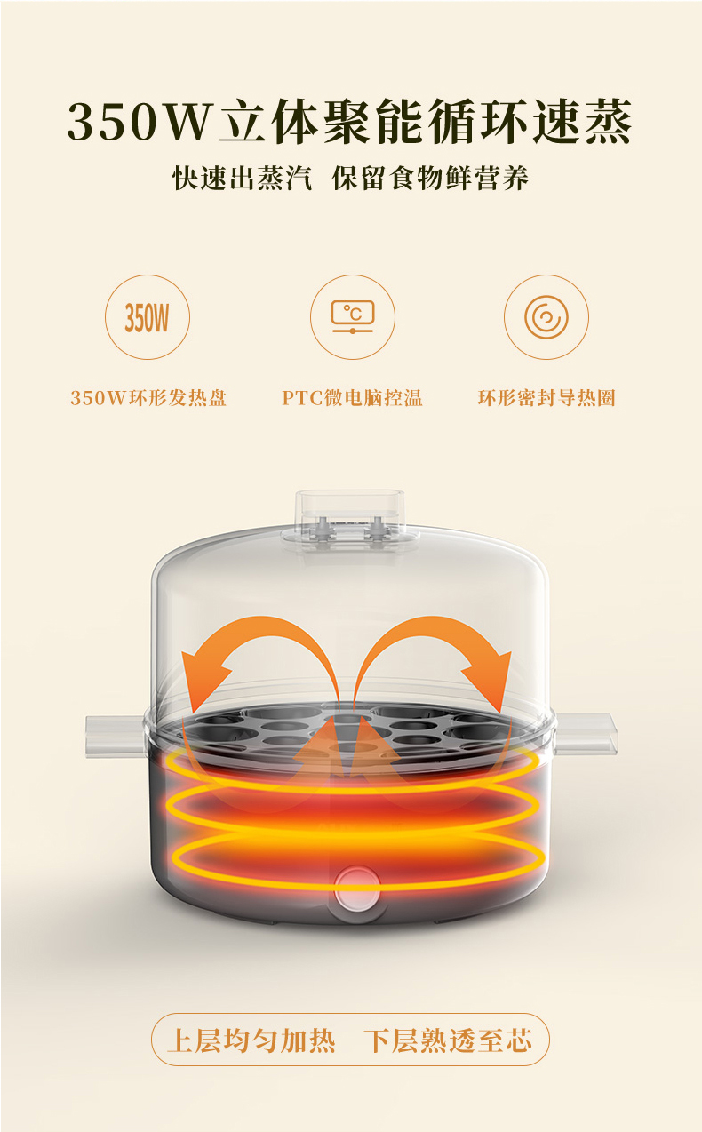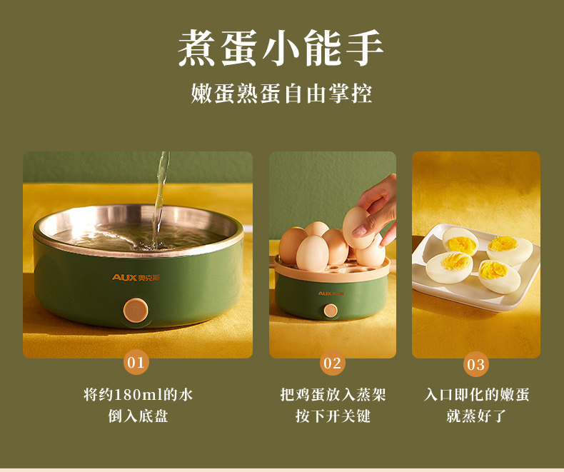 【山谷厨房】蒸蛋器 单层无蒸碗 自动断电 家用多功能小型 1人蒸鸡蛋羹机早餐神器