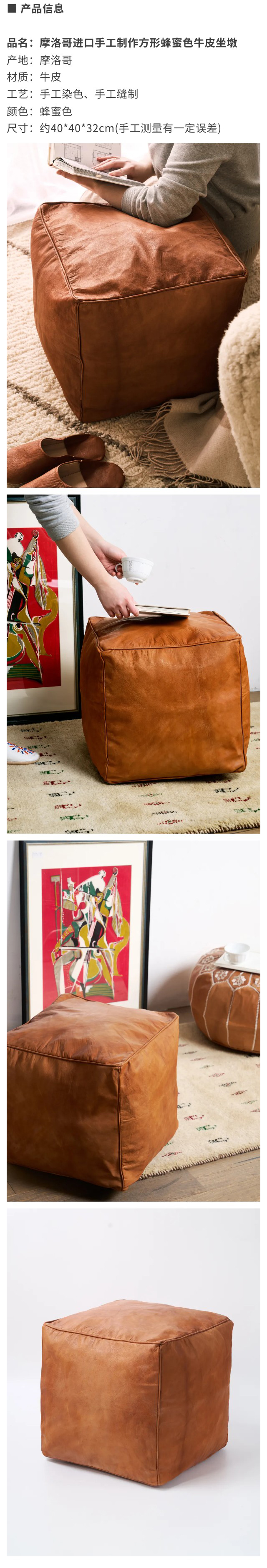 伽罗 JALO 摩洛哥进口手工制作方形蜂蜜色羊皮坐墩