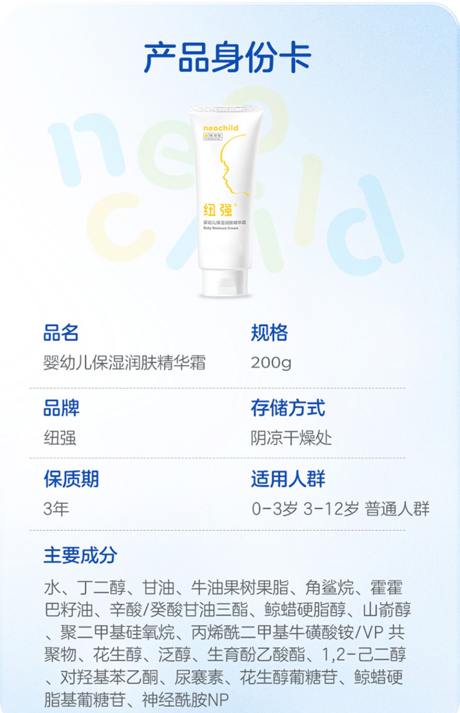 【春上新】9楼母婴生活馆 纽强婴儿润肤霜儿童面霜宝宝保湿滋润润肤乳液擦脸身体面部护肤200g 活动价:258元