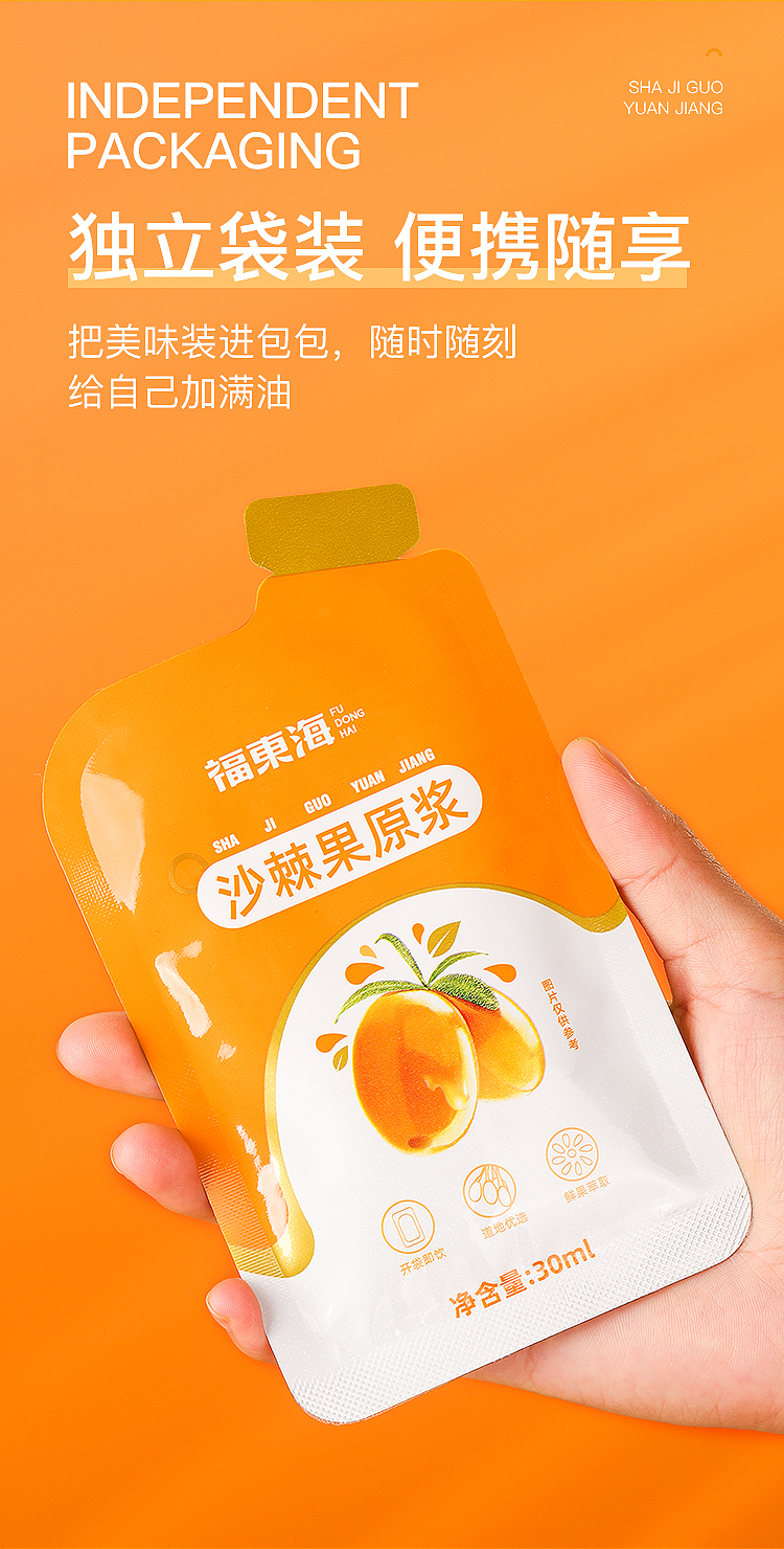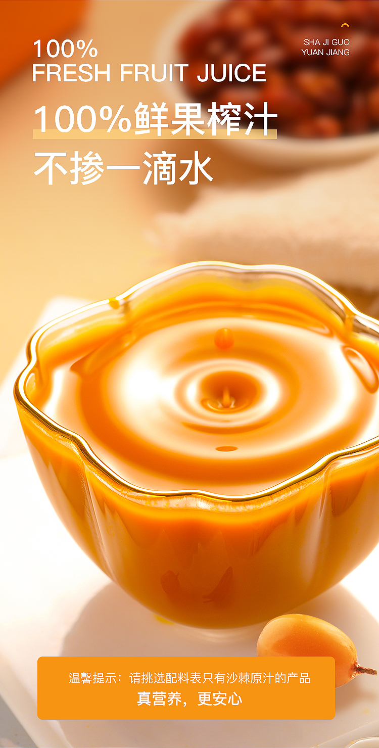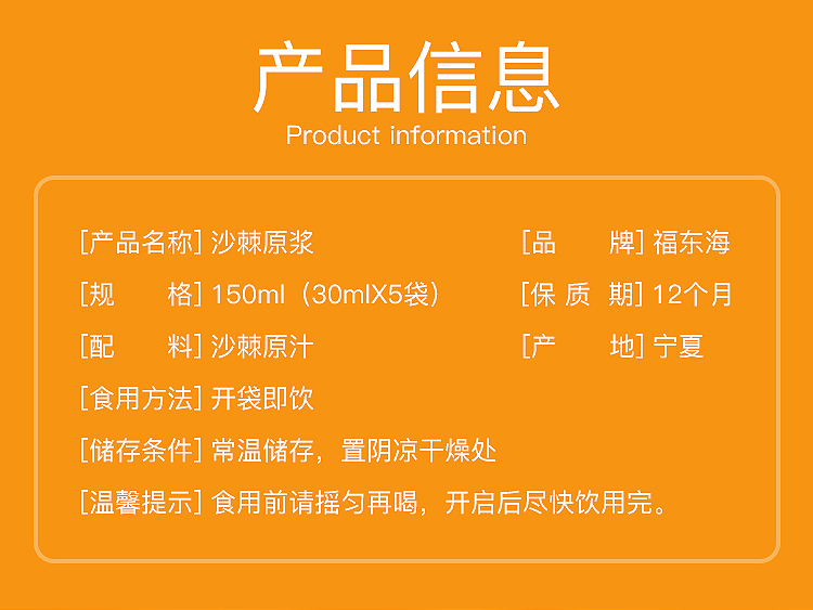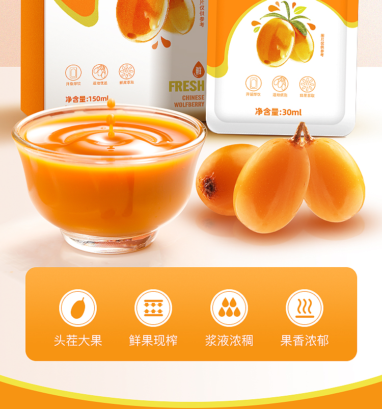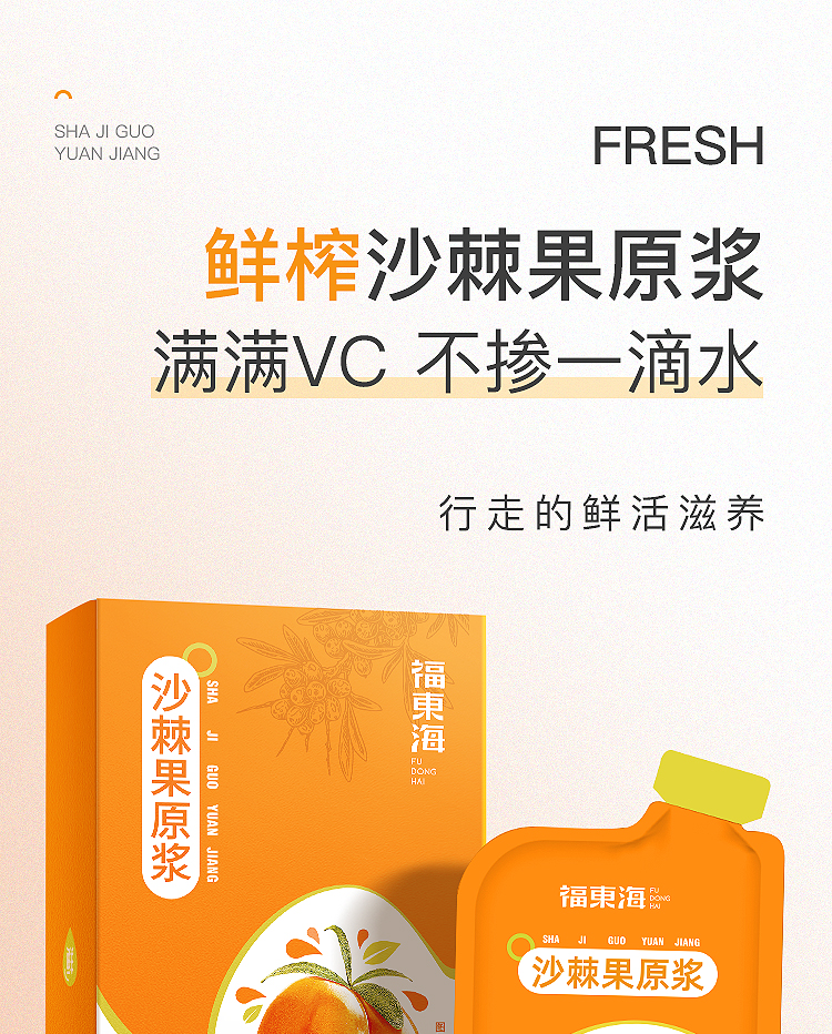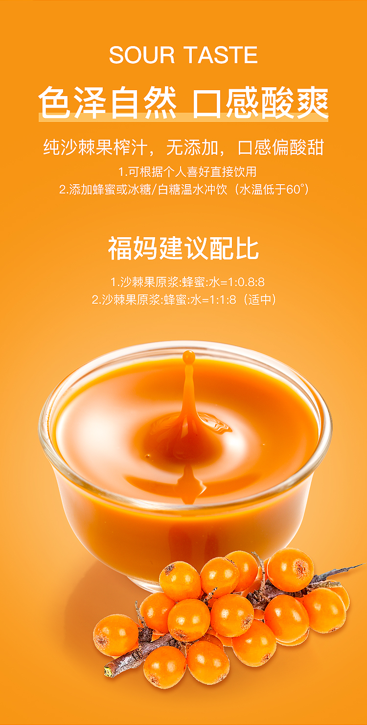 福东海 沙棘原浆150ml 鲜榨沙棘汁原浆含VC沙棘油 鲜榨纯沙棘果汁(临期至2022/09/08)