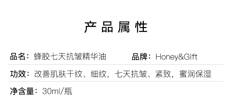 就是它,Honey&Gift 蜂胶七天抗皱精华油,厉害到直接把“七天抗皱”当品名。