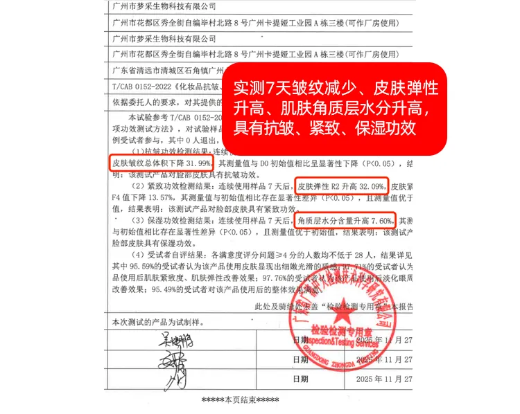 关键它不是瞎吹,是真做过实验,7天就能达到显著的淡纹抗皱的效果!
