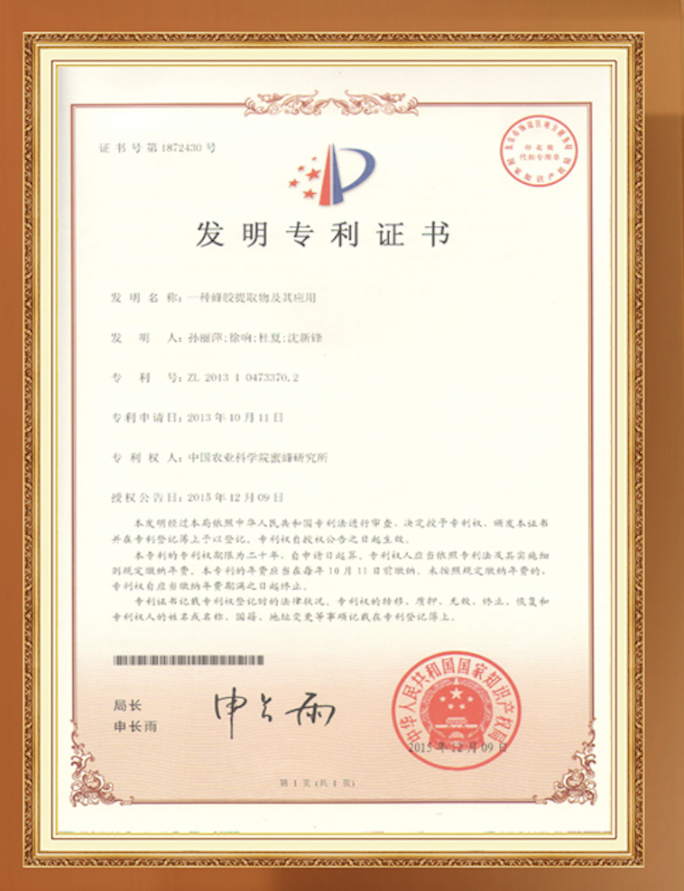 直接应用了中国农科院蜜蜂研究所(蜂产品国家队)专利技术:ZL201310473370.2,是中国蜂产品国家队的科研成果转化产品。