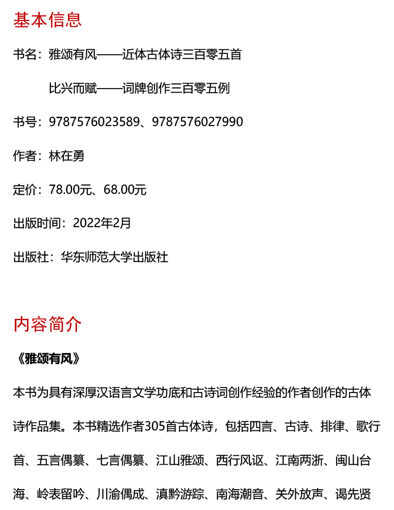 林在勇古体诗作品集3册 比兴而赋+雅颂有风+韵成入乐
