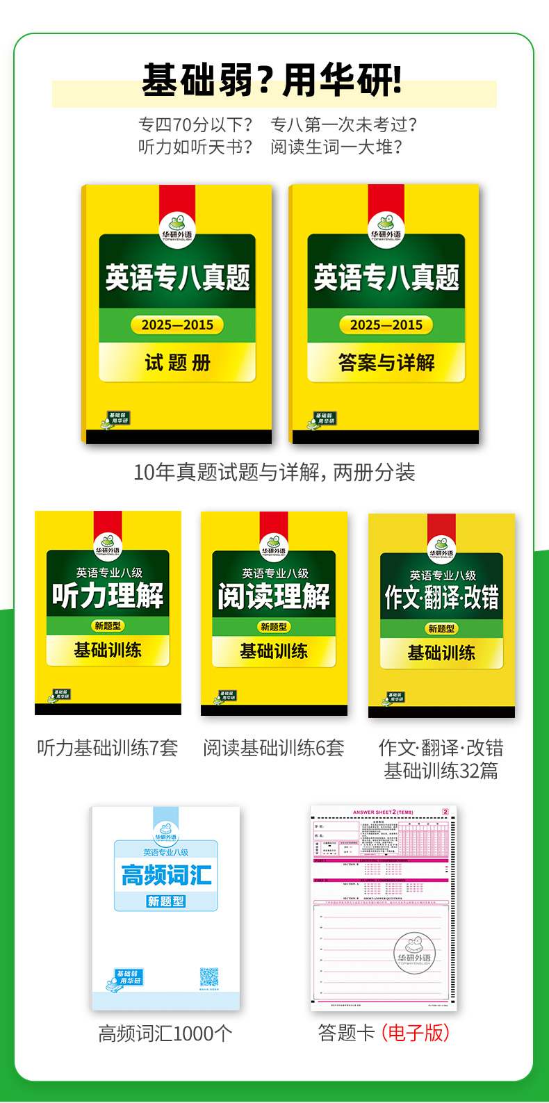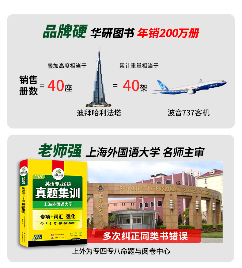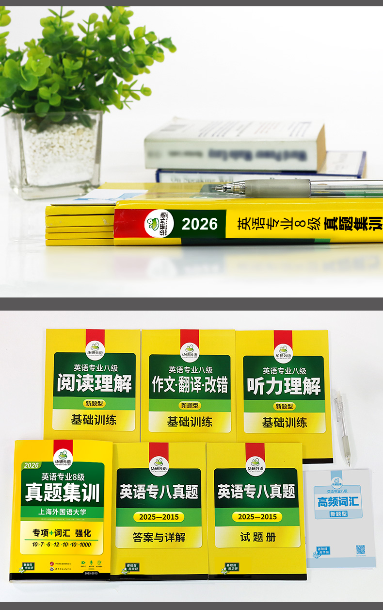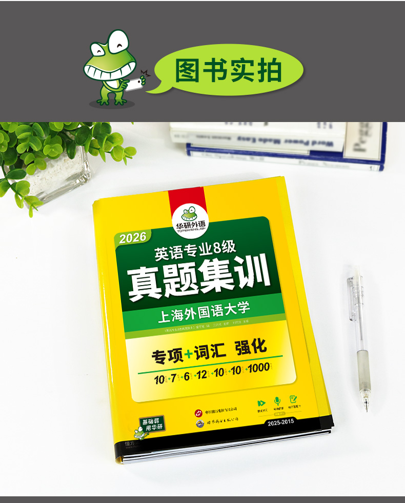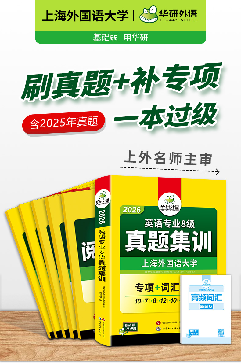 华研外语 备考2026 专八真题集训 英语专业八级历年真题试卷词汇单词阅读理解听力改错翻译写作文模拟题专项训练书全套tem8预测语法