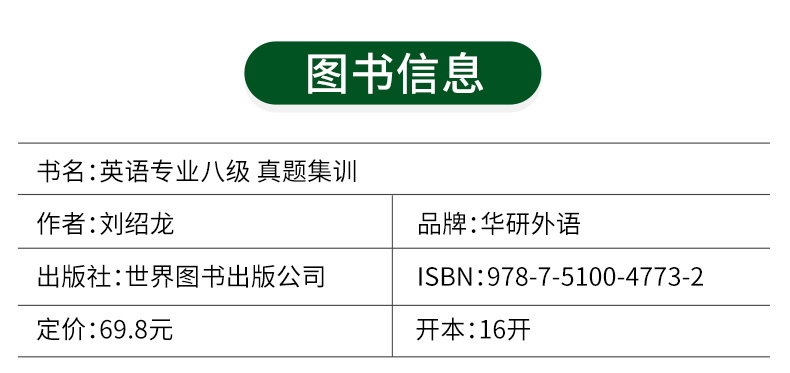 需要专八真题自测的考生;基础一般,需要强化听力、阅读、翻译、改错、作文或词汇的考生;专八培训班师生。