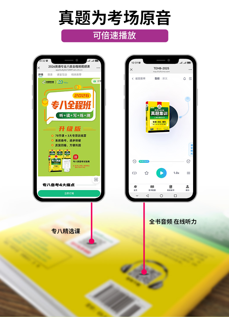 6. 真题音频均为考场原音,扫码获取,可在线听,可下载,可倍速,练习更方便;