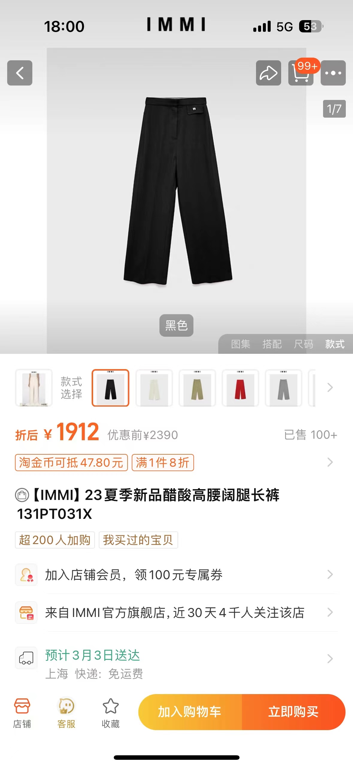 春天最离不开的就是醋酸西裤,immi设计师品牌,纯原。