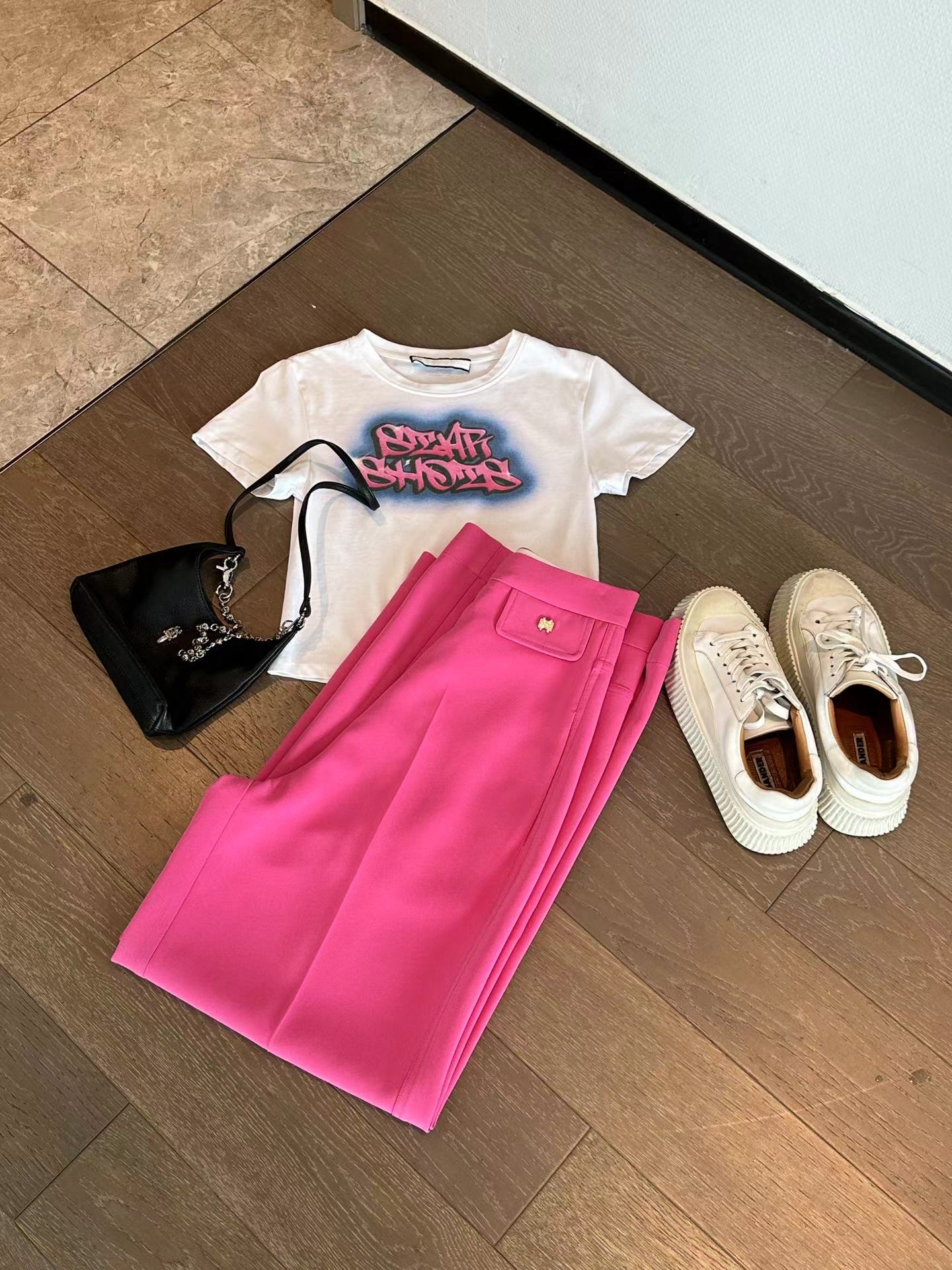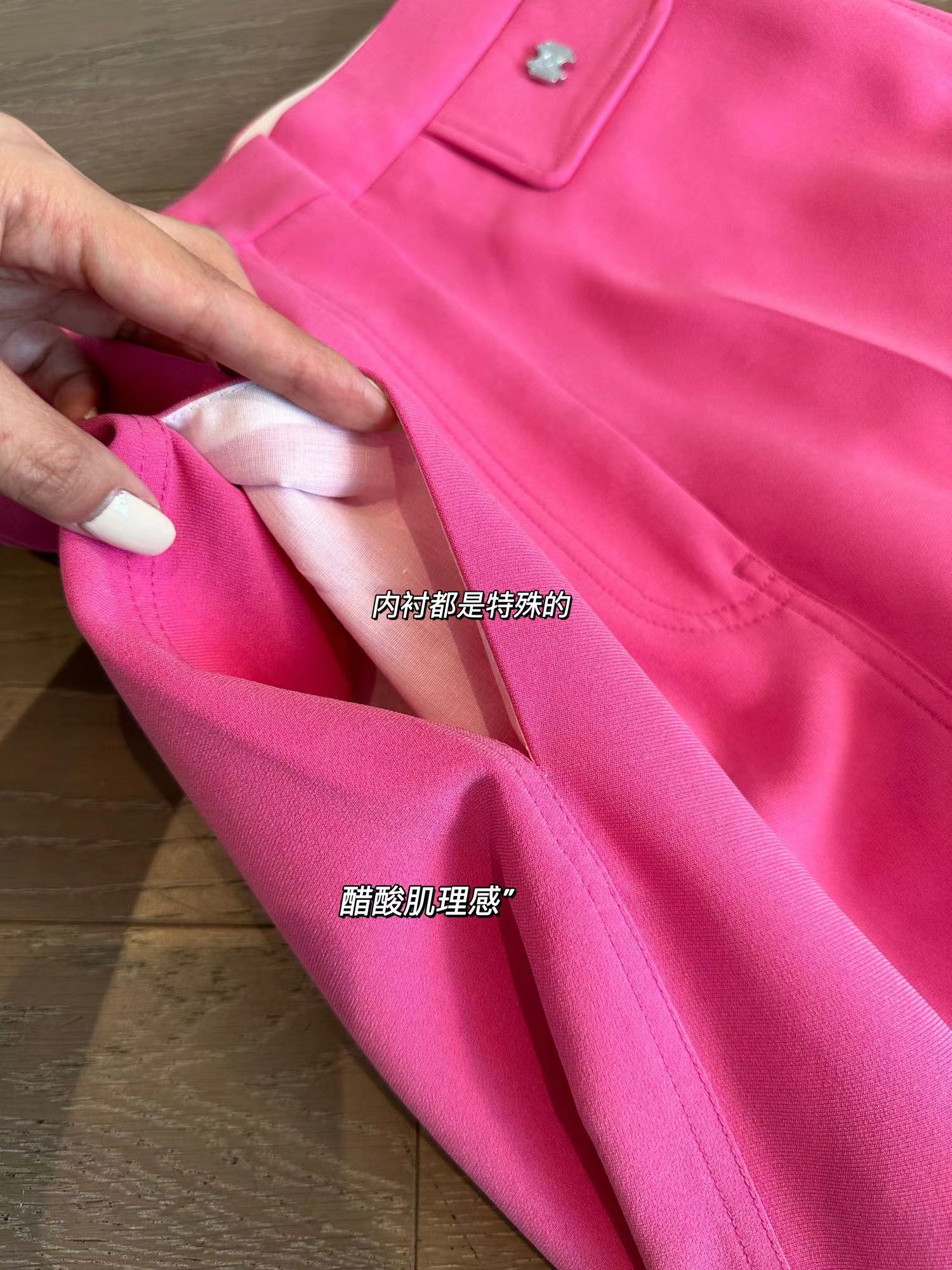 玫红色是厂里极力推荐的,说品牌返单除了黑色玫红色返单超级多,上身确实亮眼,而且很出片,出门旅游拍照逛街必备的一条。