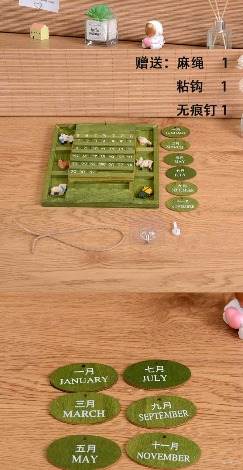 2022年日历摆件桌面台历墙上挂历地中海木质万年历创意生日礼物