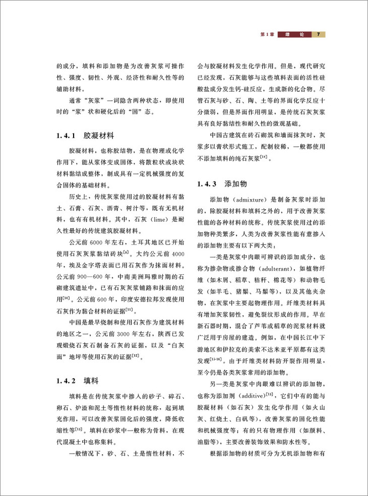 这些经历了千百年时间考验的古代灰浆, 不仅是建筑材料史的宝贵证物, 而且由于它们优良的耐久性和与古建筑本体的相容性, 当今又成为文物保护领域优先考虑使用的修复保护材料, 并启迪着新一代“绿色低碳” 建筑材料的诞生。