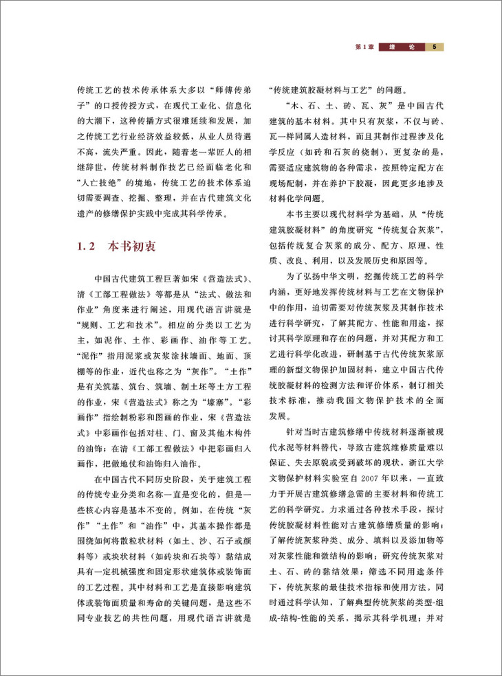 本书是浙江大学文物保护材料实验室10多年研究成果的总结。在国家科技支撑计划课题等的资助下, 经过数届硕士生、博士生、博士后及老师的持续研究, 已在认知和利用等方面取得了许多重要进展。本书包括以下内容:为挖掘古代传统灰浆工艺,收集了包括春秋、汉代、唐代、宋代等古文献中涉及“石灰”和“复合灰浆”的记载, 共65篇, 分类进行了整理和解读。组织调查组,寻找仍在生产的小石灰窑和石灰膏作坊, 实地调查传统石灰的烧制、消化和陈化过程,寻访老泥工,记录快要消失的传统工艺。联合相关文博单位对全国各地重要古建筑遗址进行考察和取样,共收集了159处古建遗址的378个古代灰浆样本,其地域涵盖我国22个省(区)市。为解决灰浆样本数量少、年代久、杂质多的检测难题,建立了多套简便、快速和准确的分析检测方法,包括化学法、免疫法和综合仪器法等, 制定了4项检测技术规范。通过大量研究,首次从微观上揭示了糯米灰浆、桐油灰浆、血料灰浆等传统复合灰浆具有良好性能的基本原理,被国际上称为“发现了长城千年不倒的秘密”。对中国传统复合灰浆的特点、地域分布、应用历史、产生与衰落的原因等问题进行了一系列认识研究。利用各种现代技术,对传统复合灰浆进行优化和改进研究,已开发三个系列的改良糯米灰浆产品,并在全国10多处古建筑的保护修复工程中进行了示范应用。介绍了国内外相关同行专家、科学网站和科普纪录片对“中国糯米灰浆”研究的评价和关注情况。
