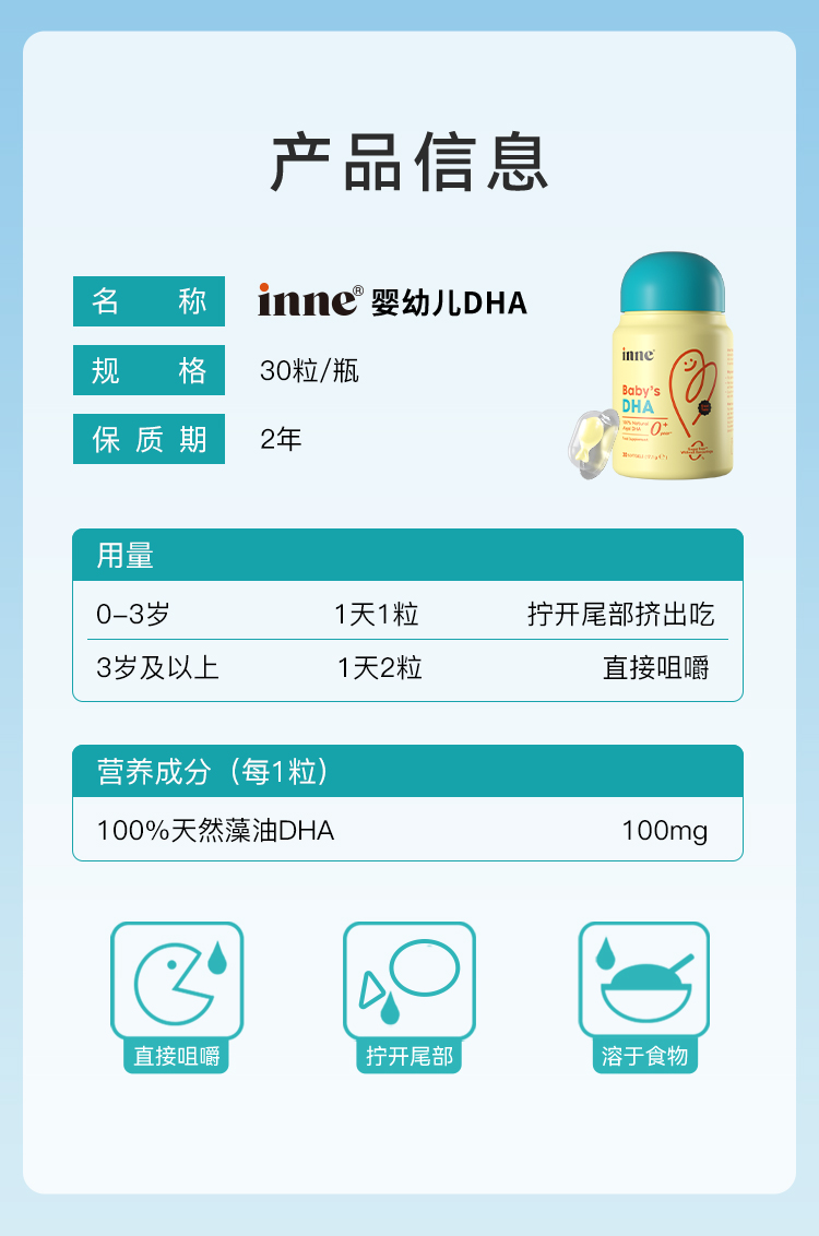 【🎁实付满699送蓝光盾】inne婴幼儿DHA宝宝儿童DHA海藻油
