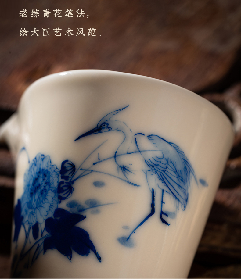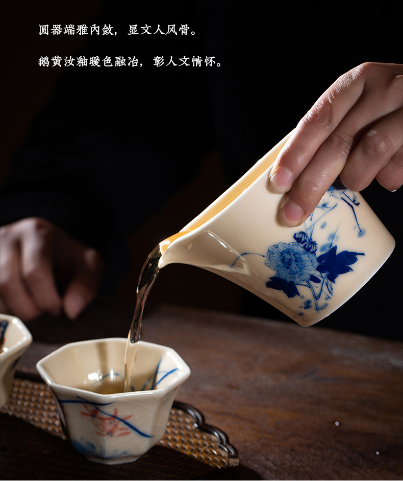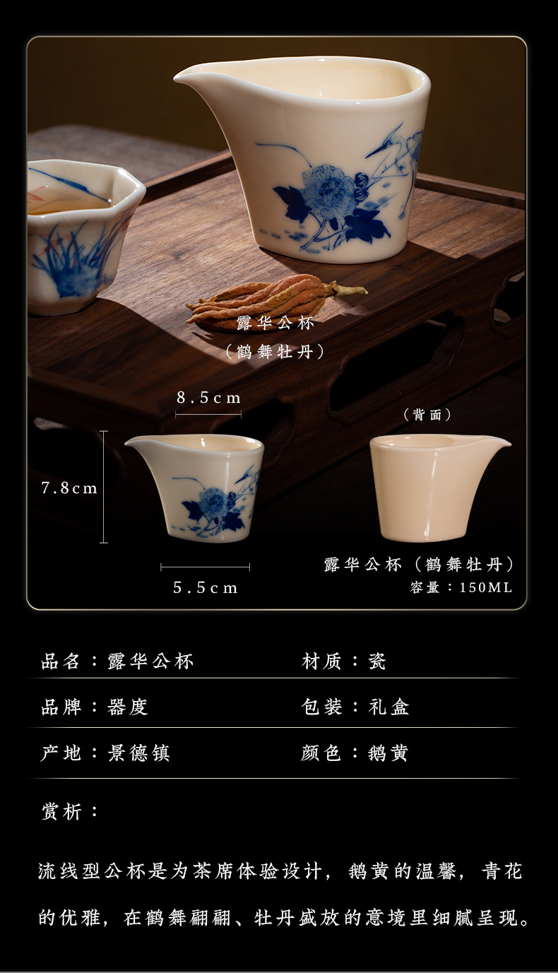 问鼎器度汝窑鹅黄青花露华公杯(鹤舞牡丹)(缺货)