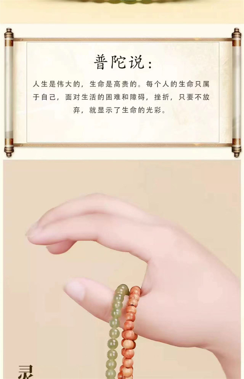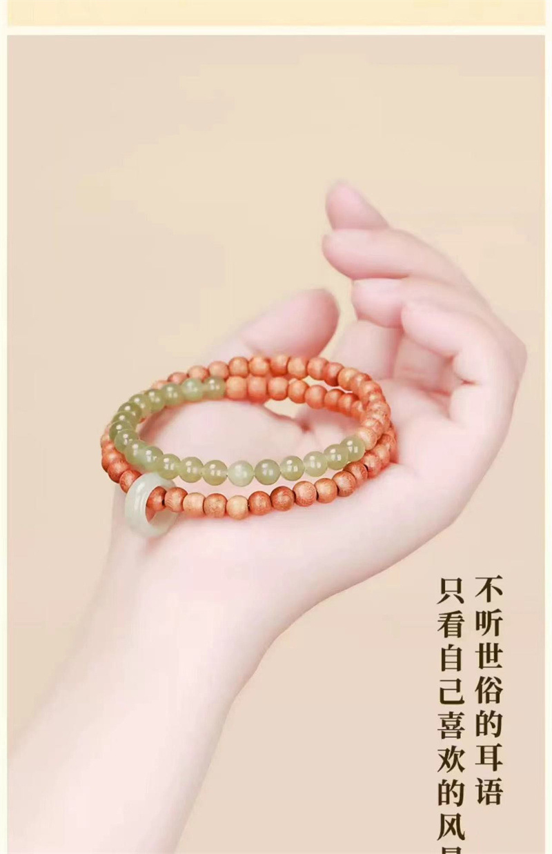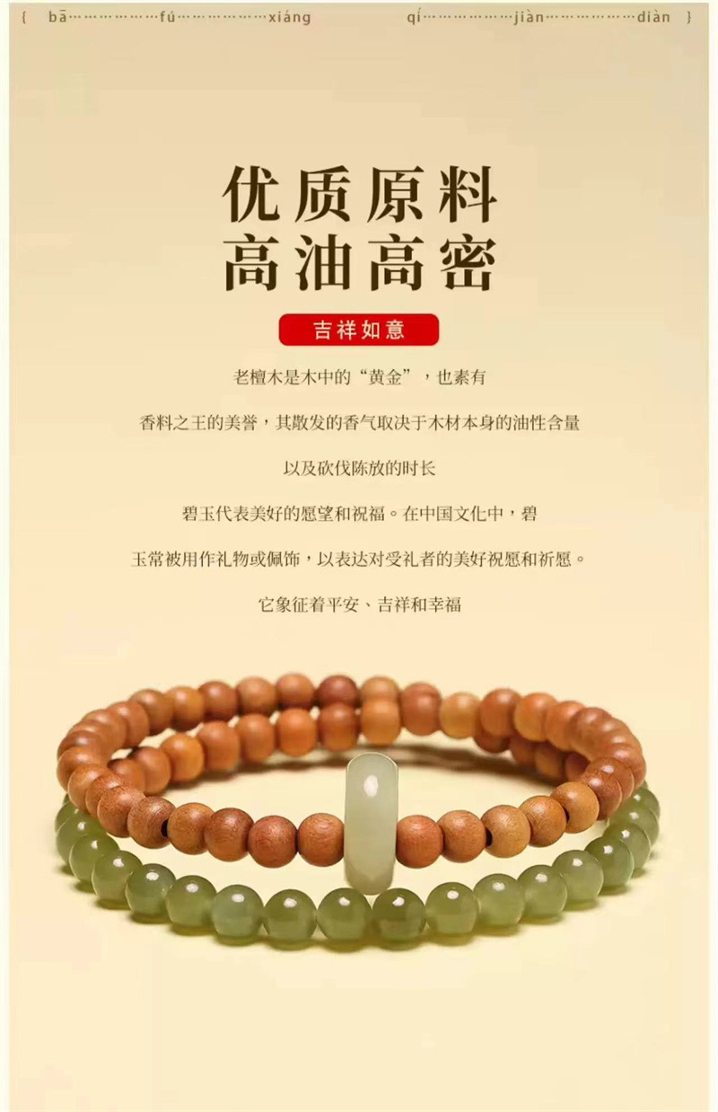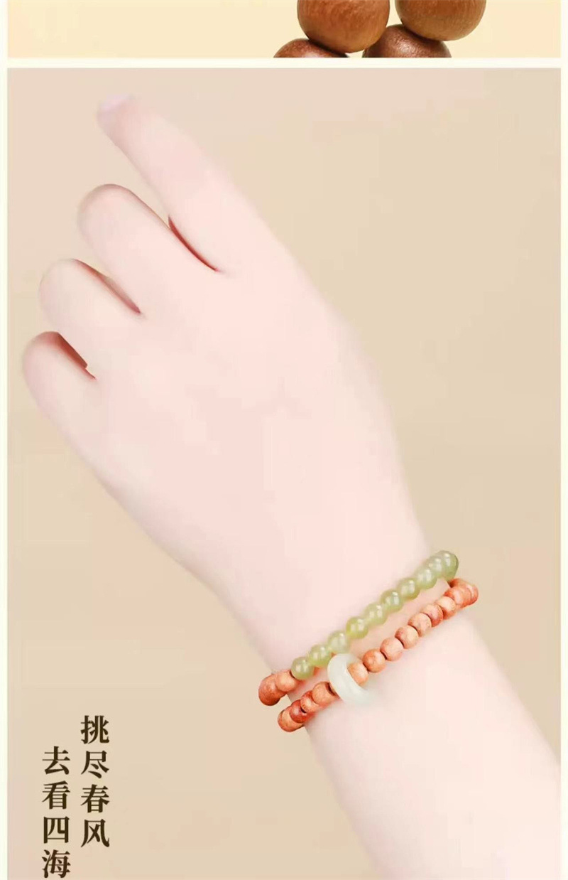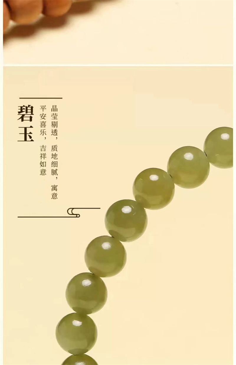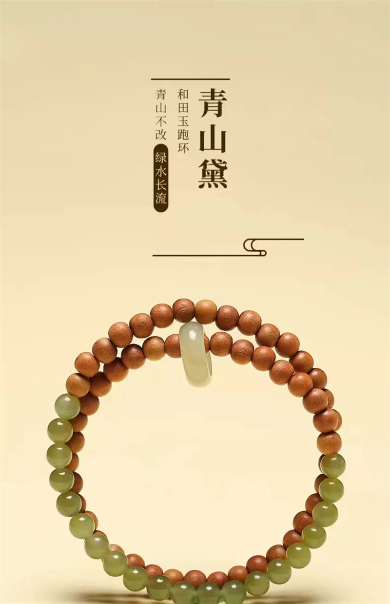 六鑫珠宝 青山黛檀香木和田链玉跑环双圈手串