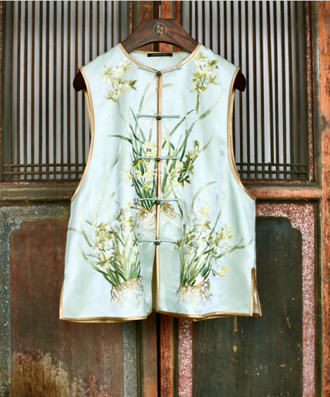 盛唐牡丹盛奢系列 | 重缎真丝手绣兰花马甲