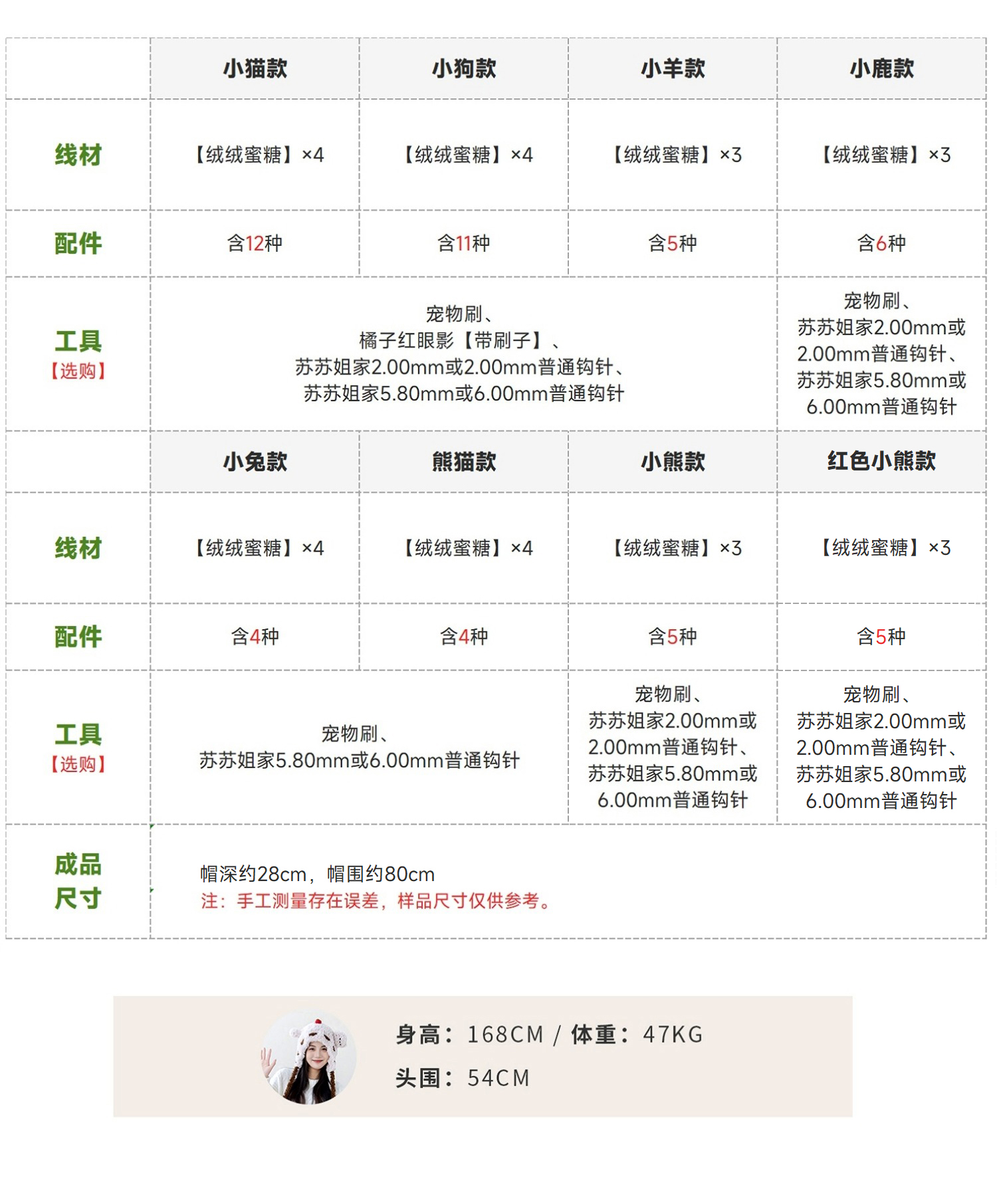 苏苏姐家绒绒动物帽手工DIY编织钩针毛线团自制帽子材料包冬