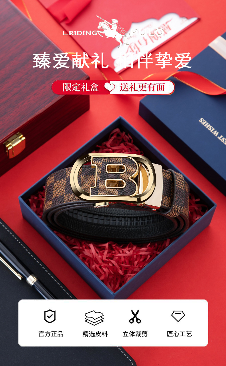 【送精美礼盒❗保罗正品轻奢皮带】精选皮料,立体裁剪,匠心工艺,自动扣设计,百搭又时尚,字母裤带送男友老公爸爸父亲节礼物QQ
