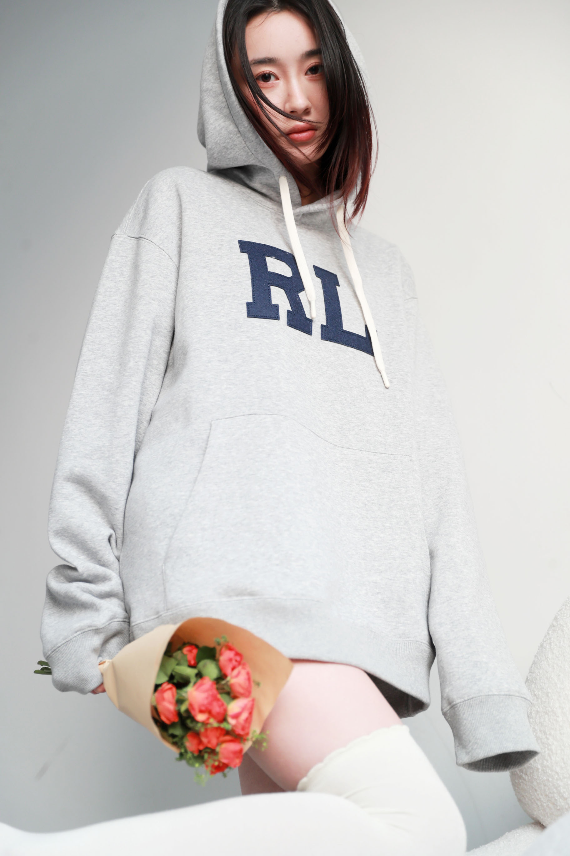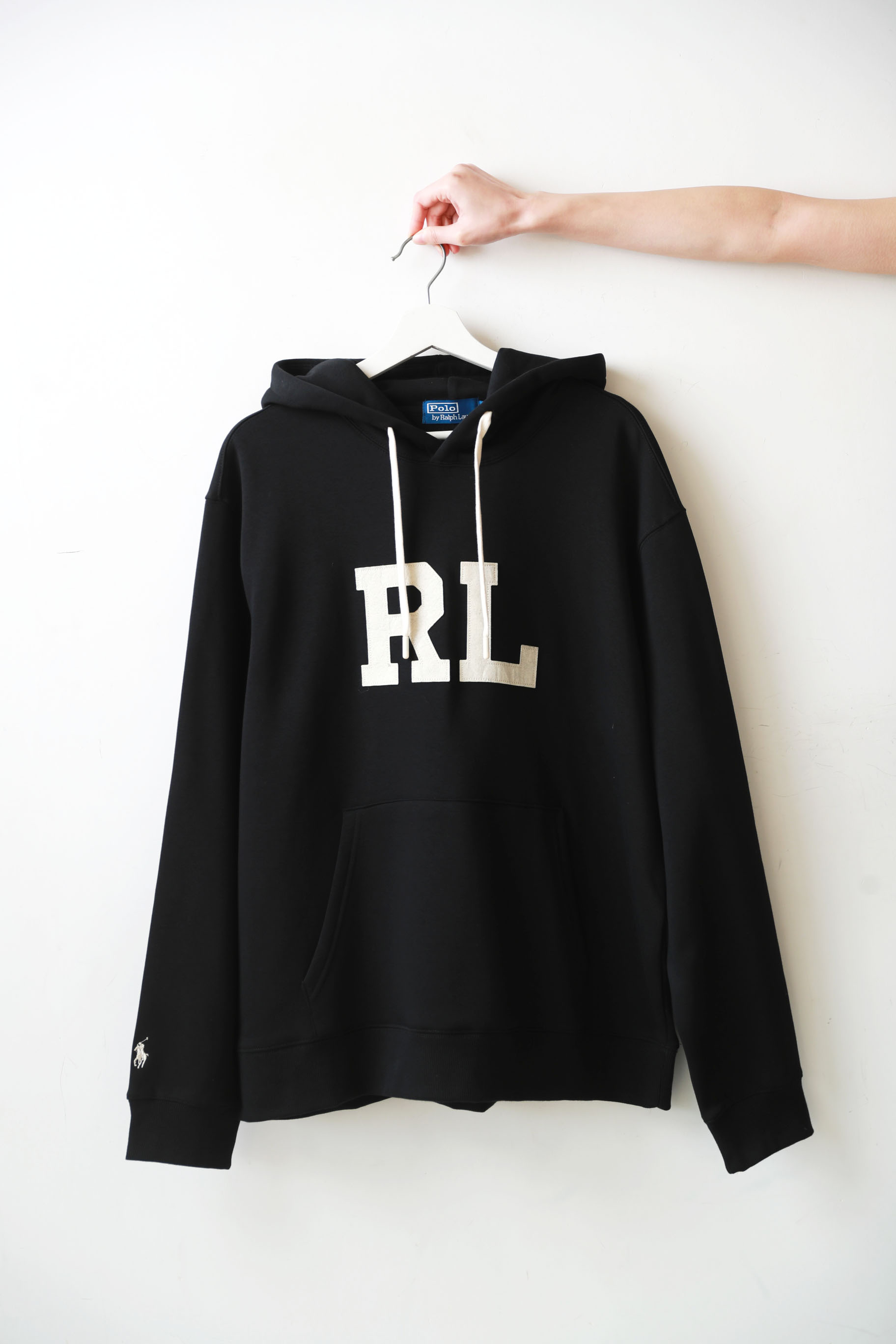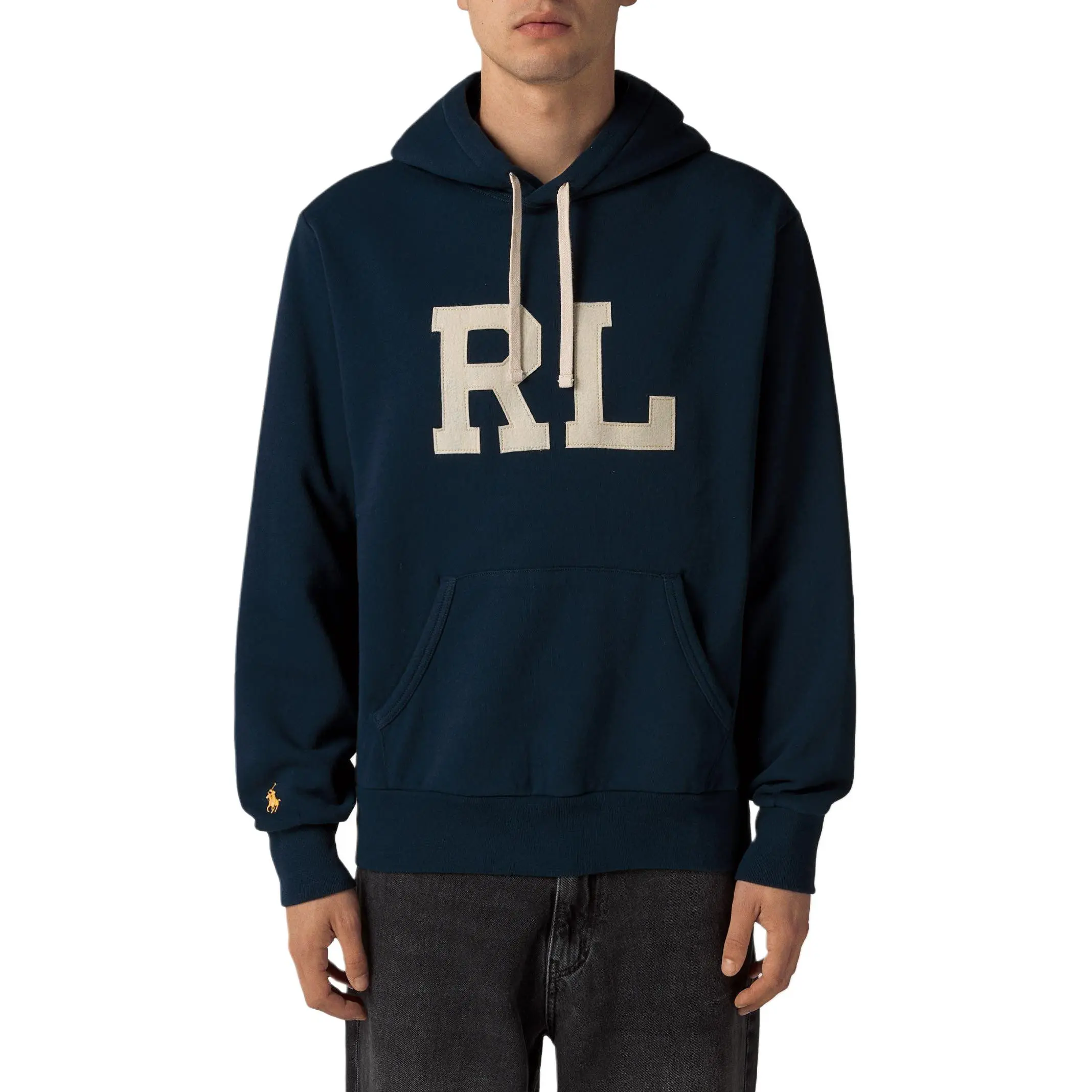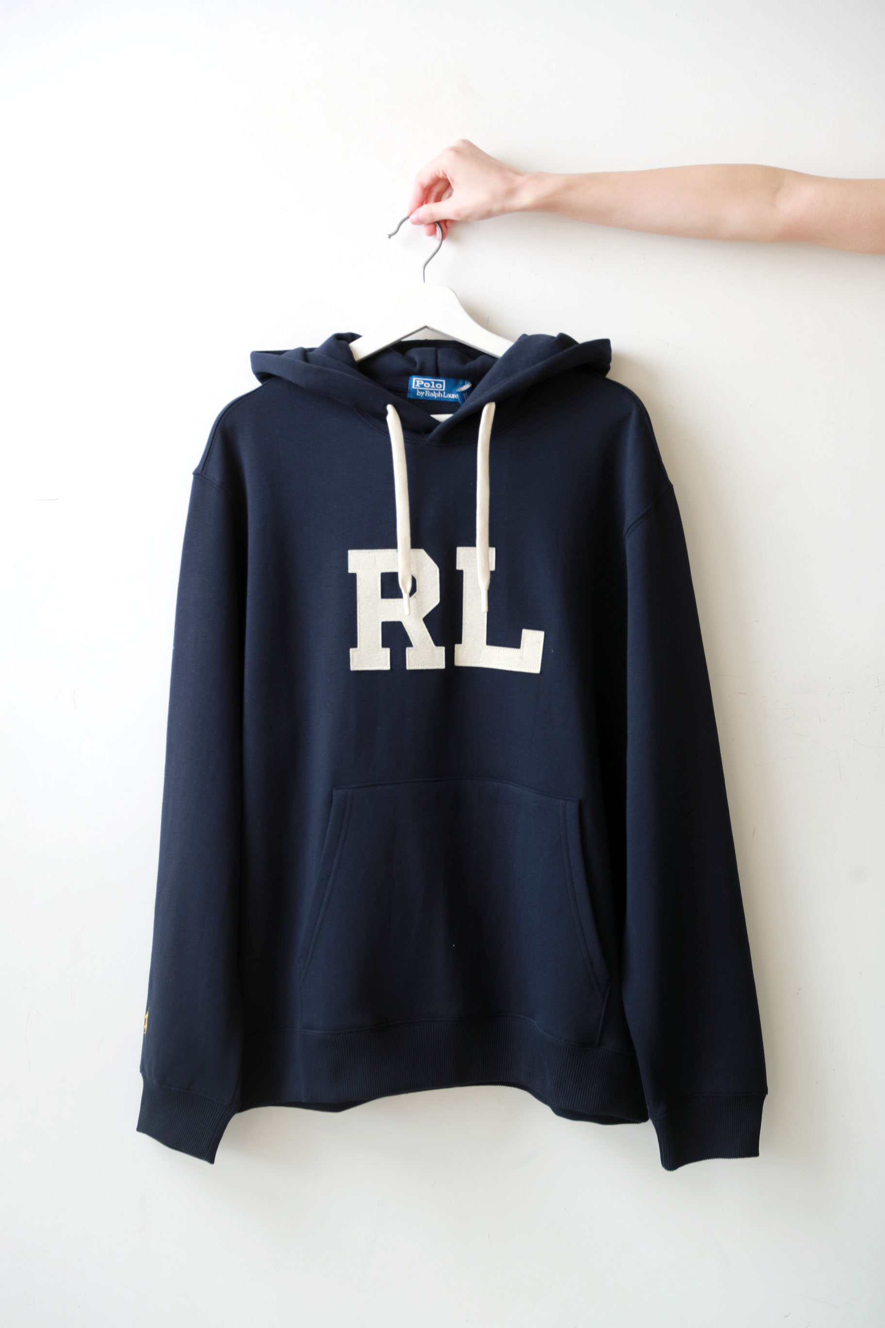 美式复古加绒卫衣,胸前贴布绣花。连帽设计袖口小标帽衫C121966