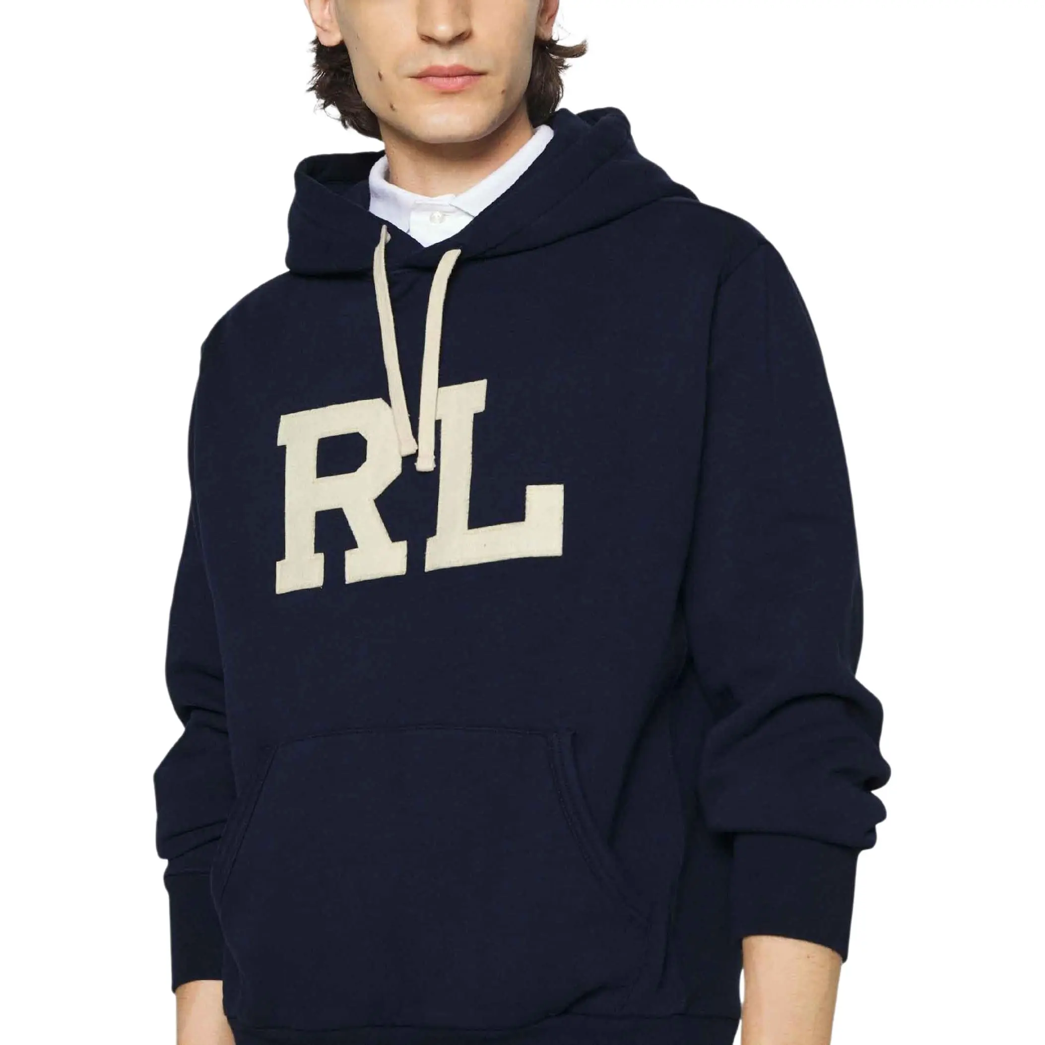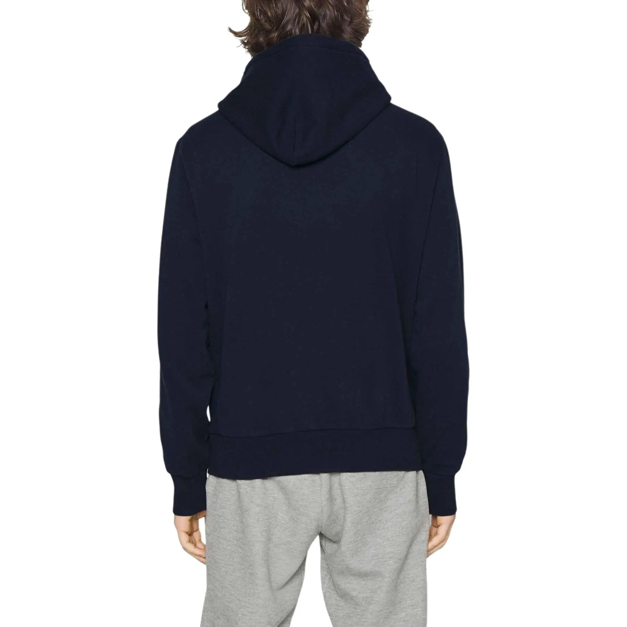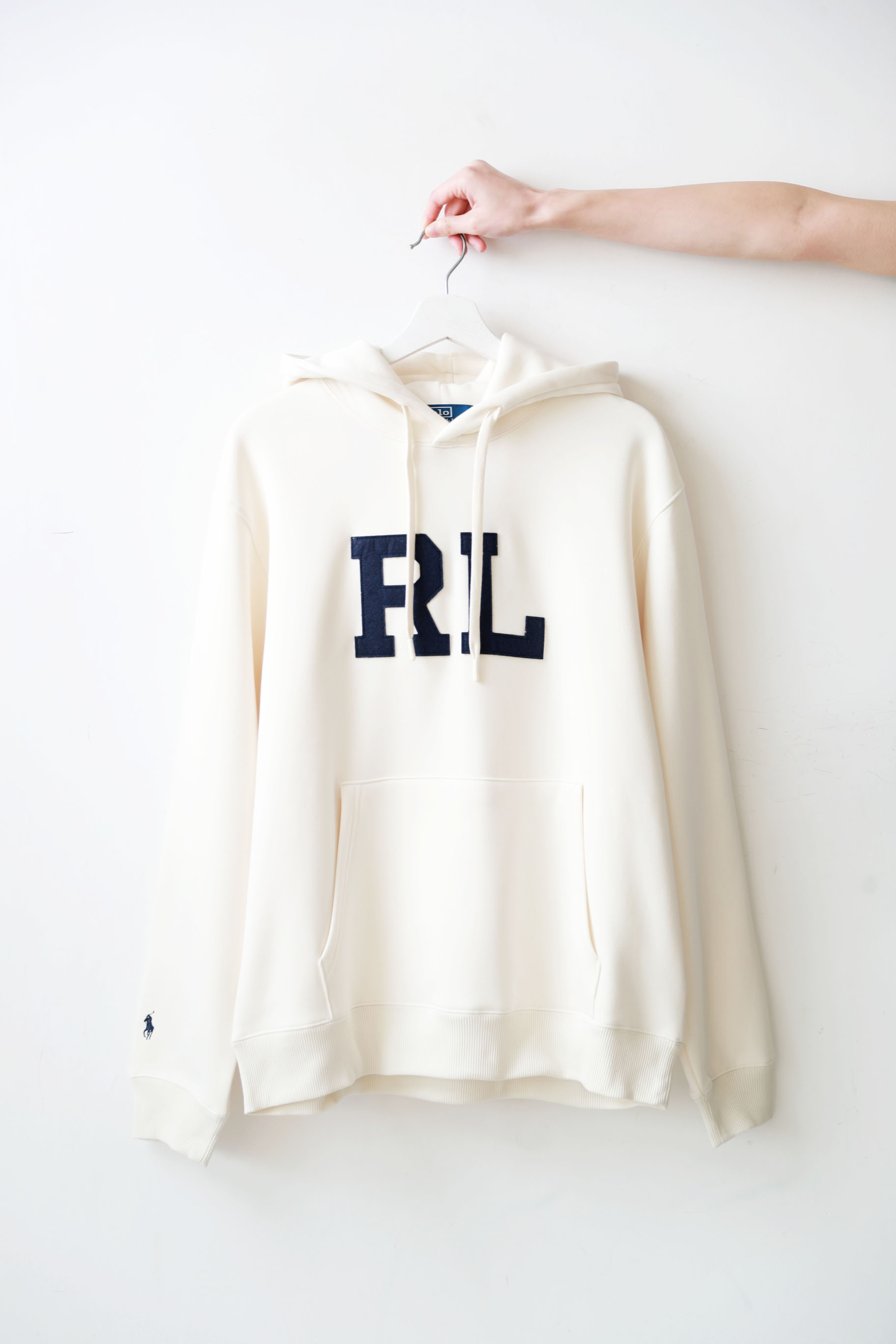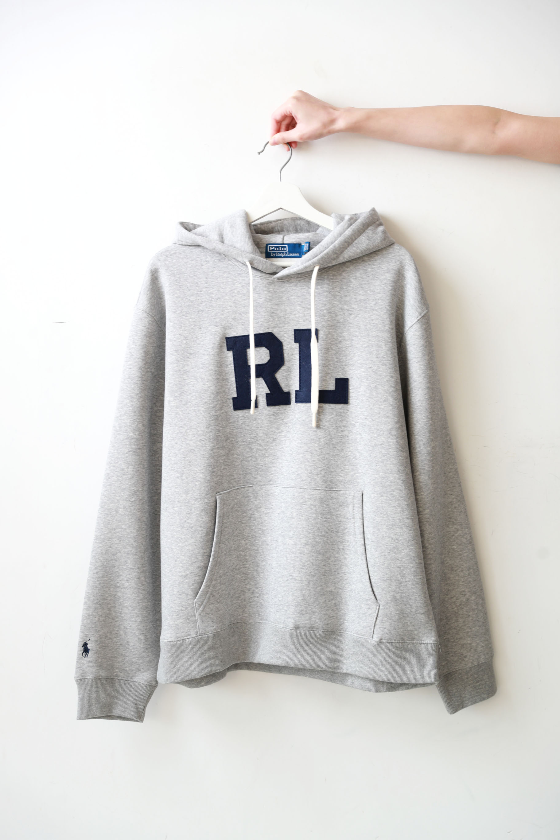 美式复古加绒卫衣,胸前贴布绣花。连帽设计袖口小标帽衫C121966