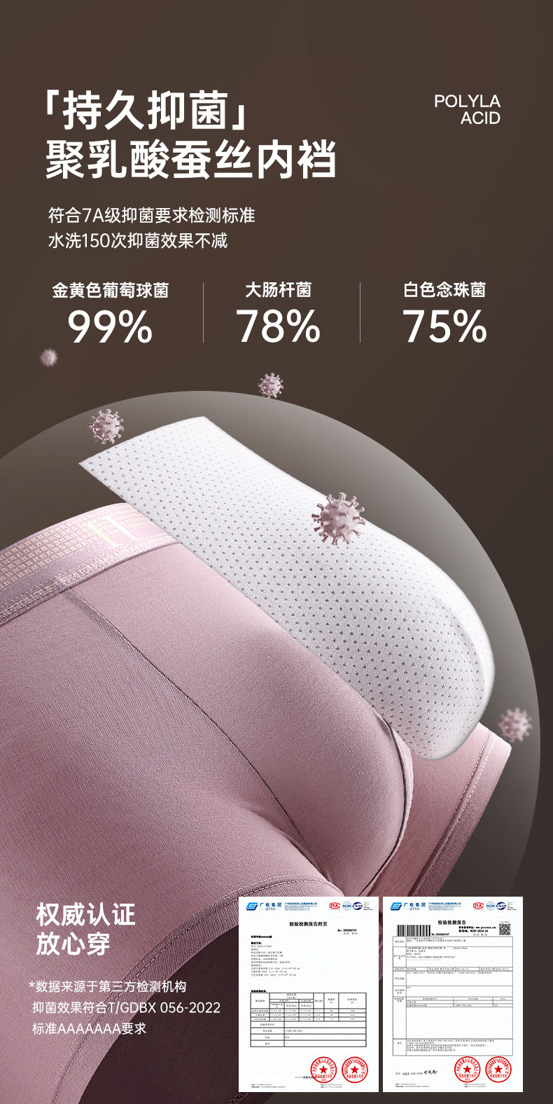 【舒适不束缚】韵梦兰男士聚乳酸桑蚕丝内裤 透气清爽 超薄裸感 吸湿透气 滋润养肤